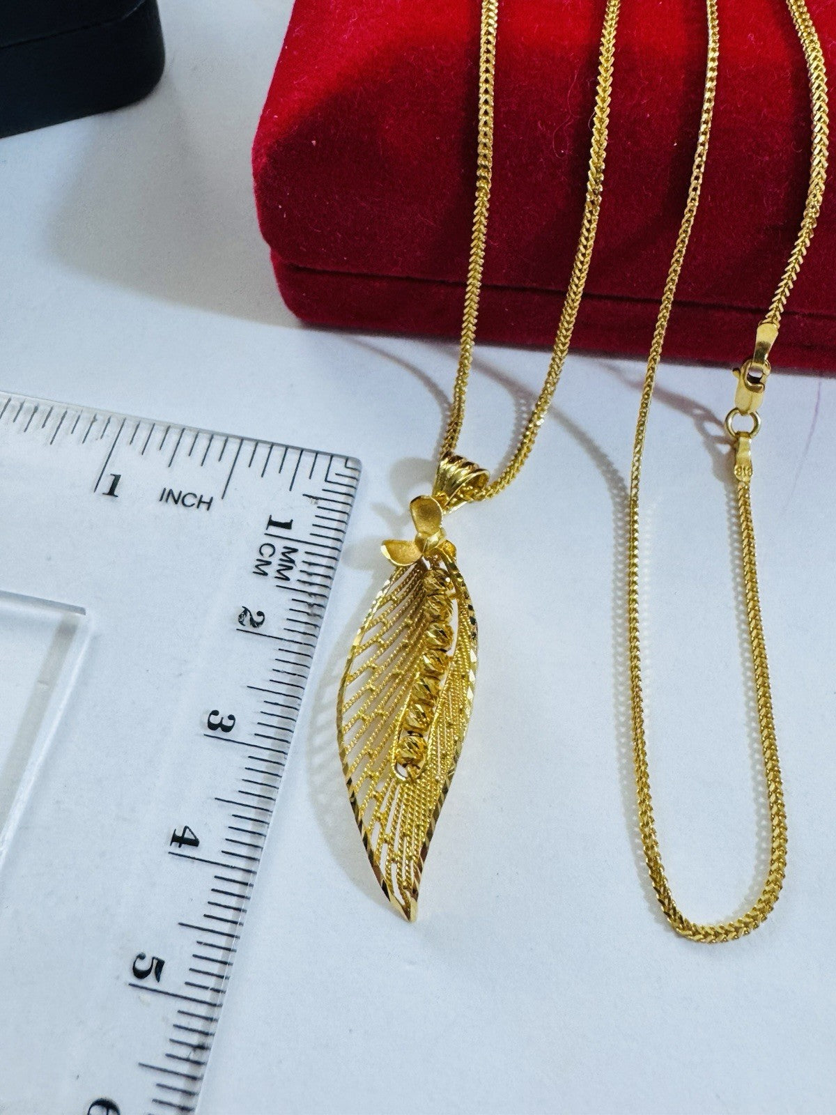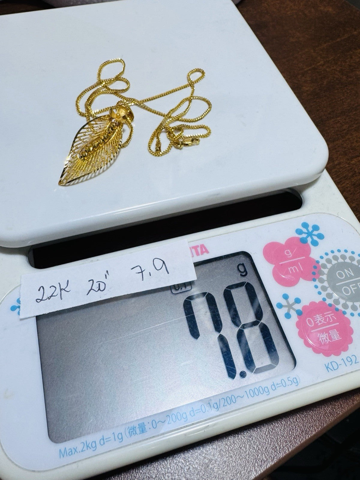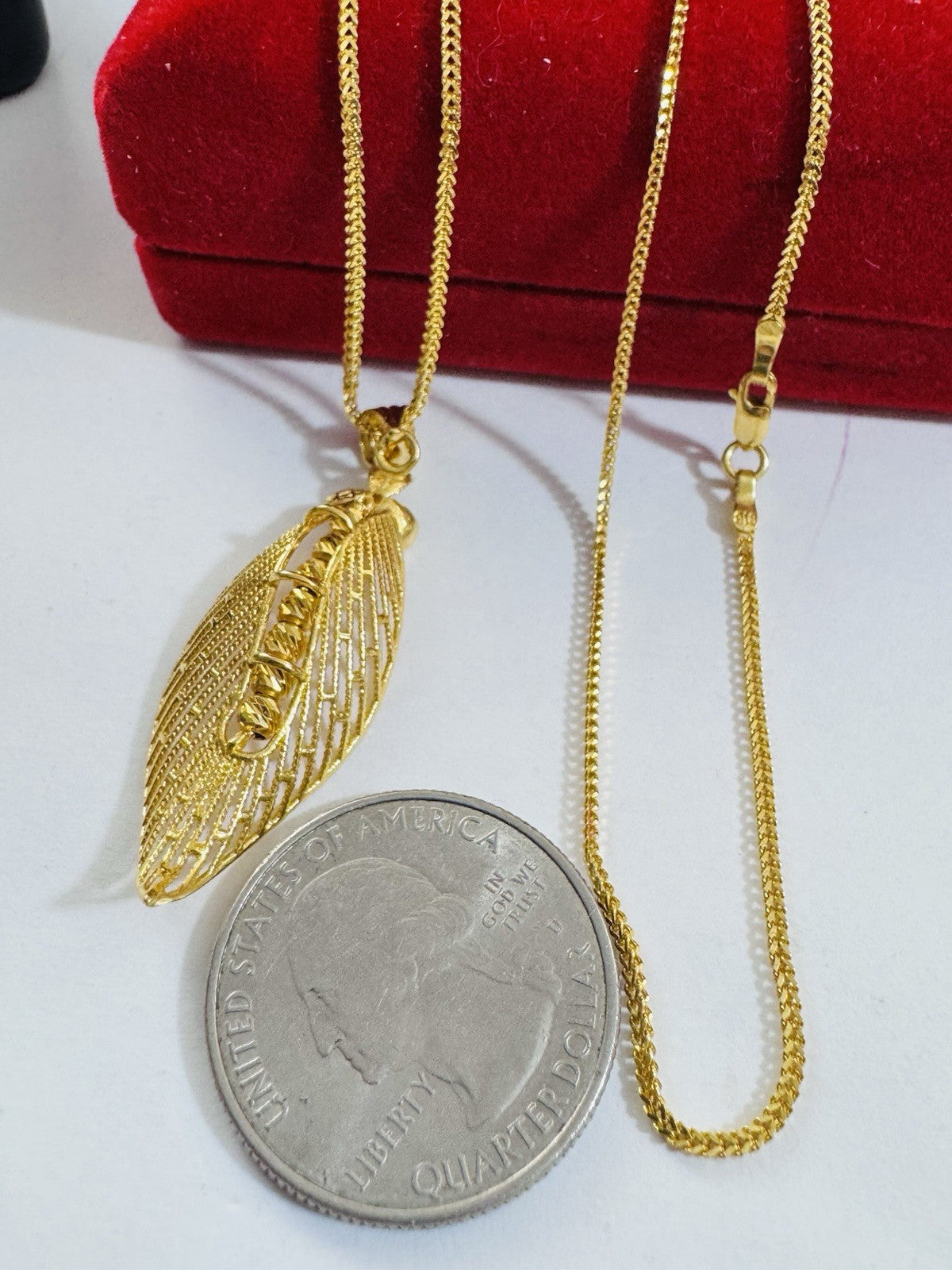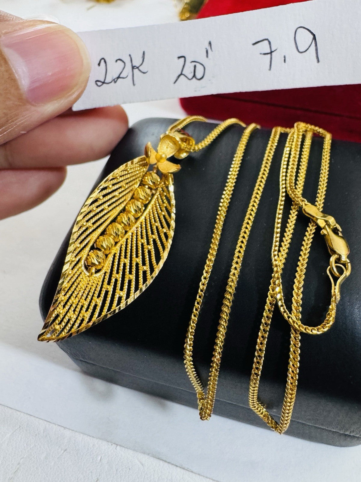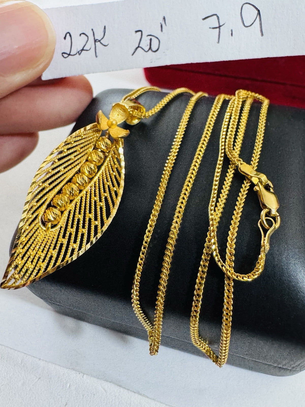 New Pure 22K 22C 916 Fine Real Gold 20” long Leaf Flower Necklace 7.9g 1.6mm