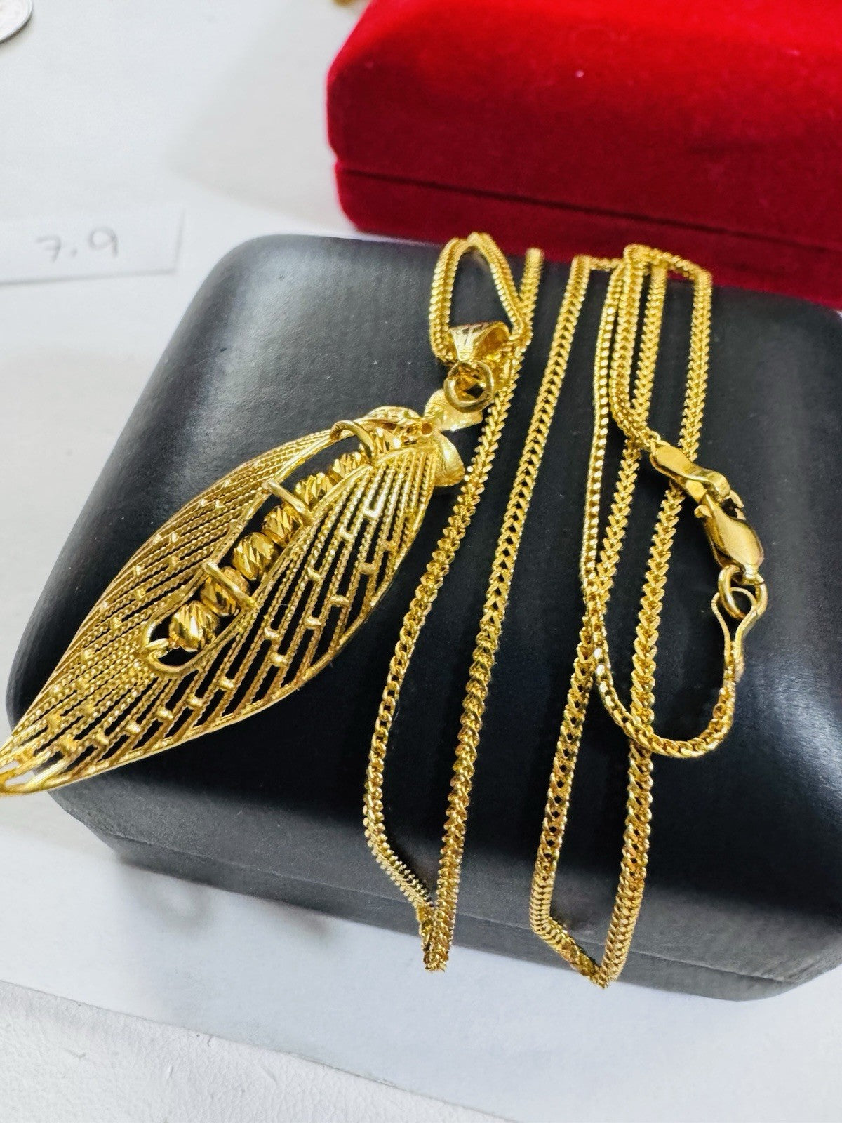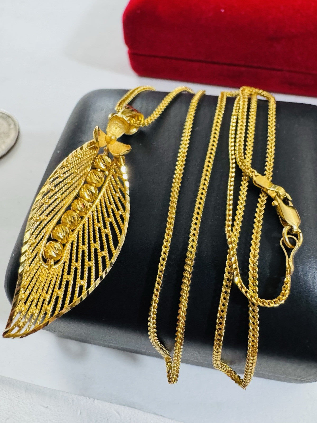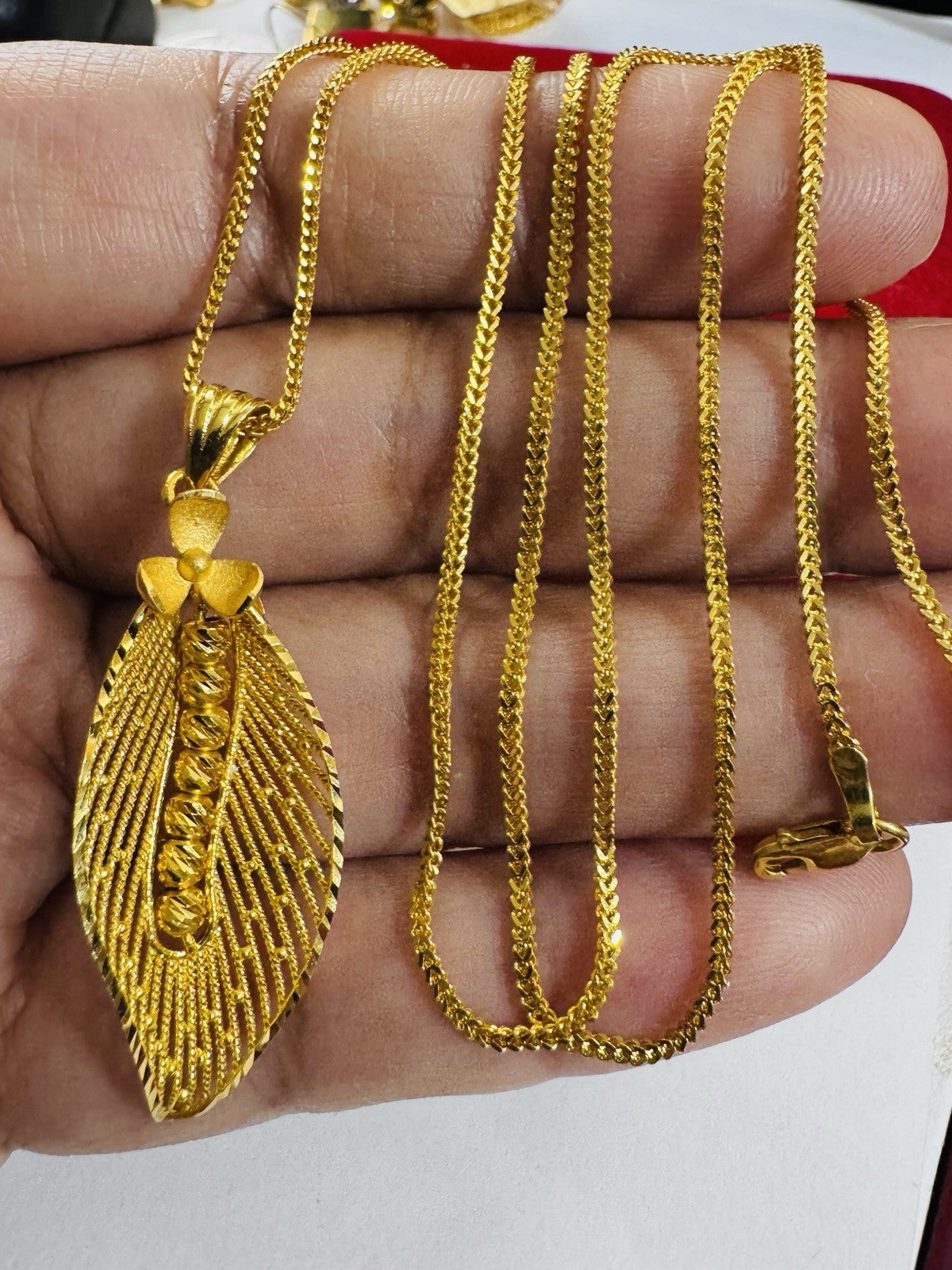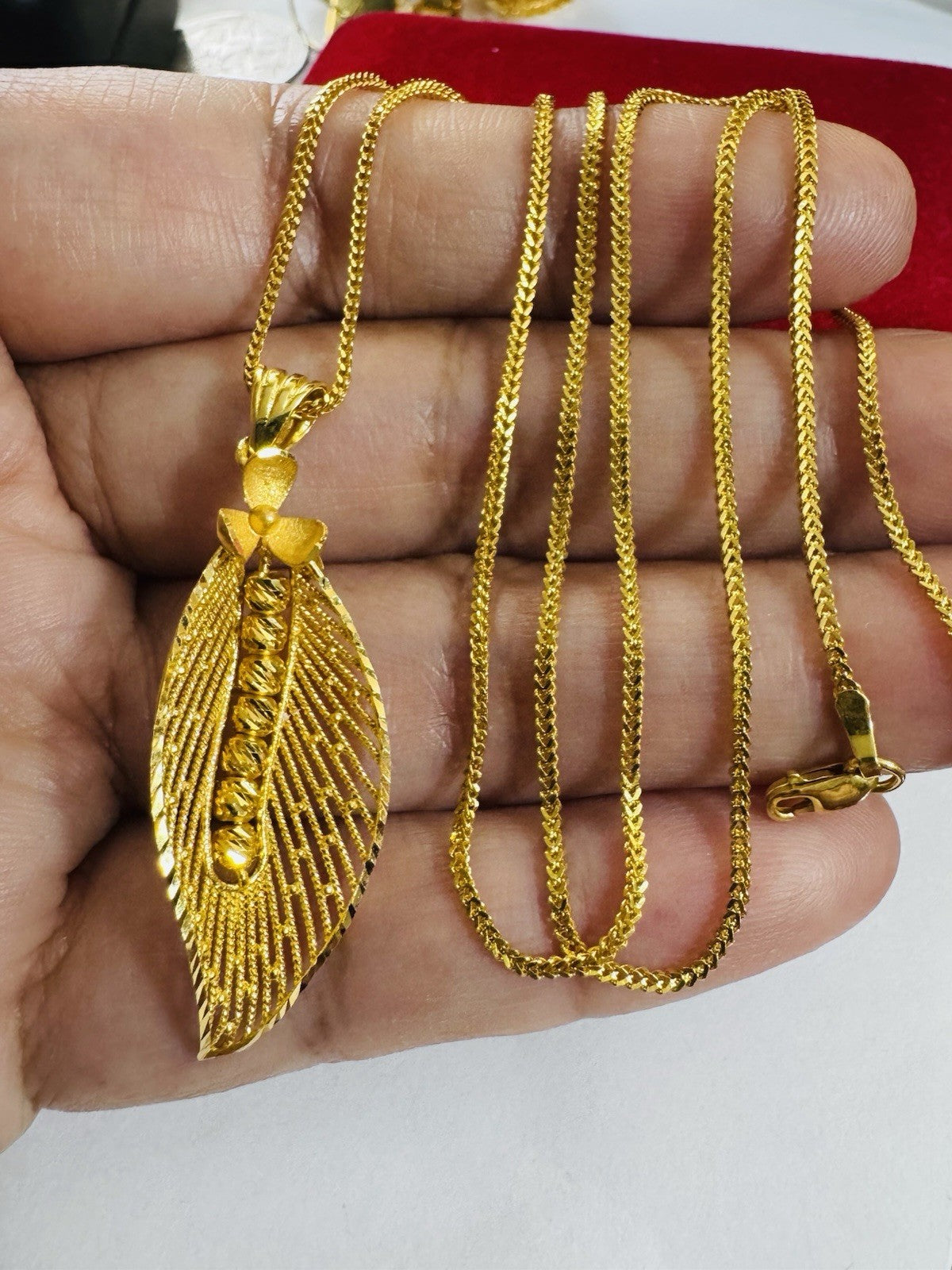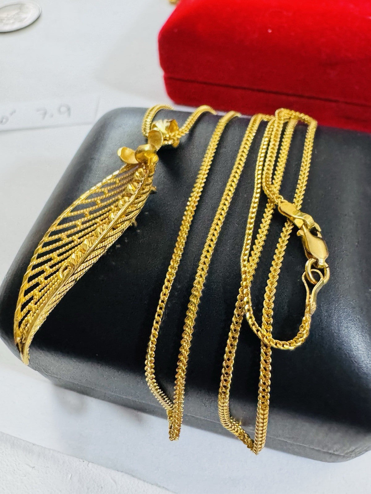 New Pure 22K 22C 916 Fine Real Gold 20” long Leaf Flower Necklace 7.9g 1.6mm
