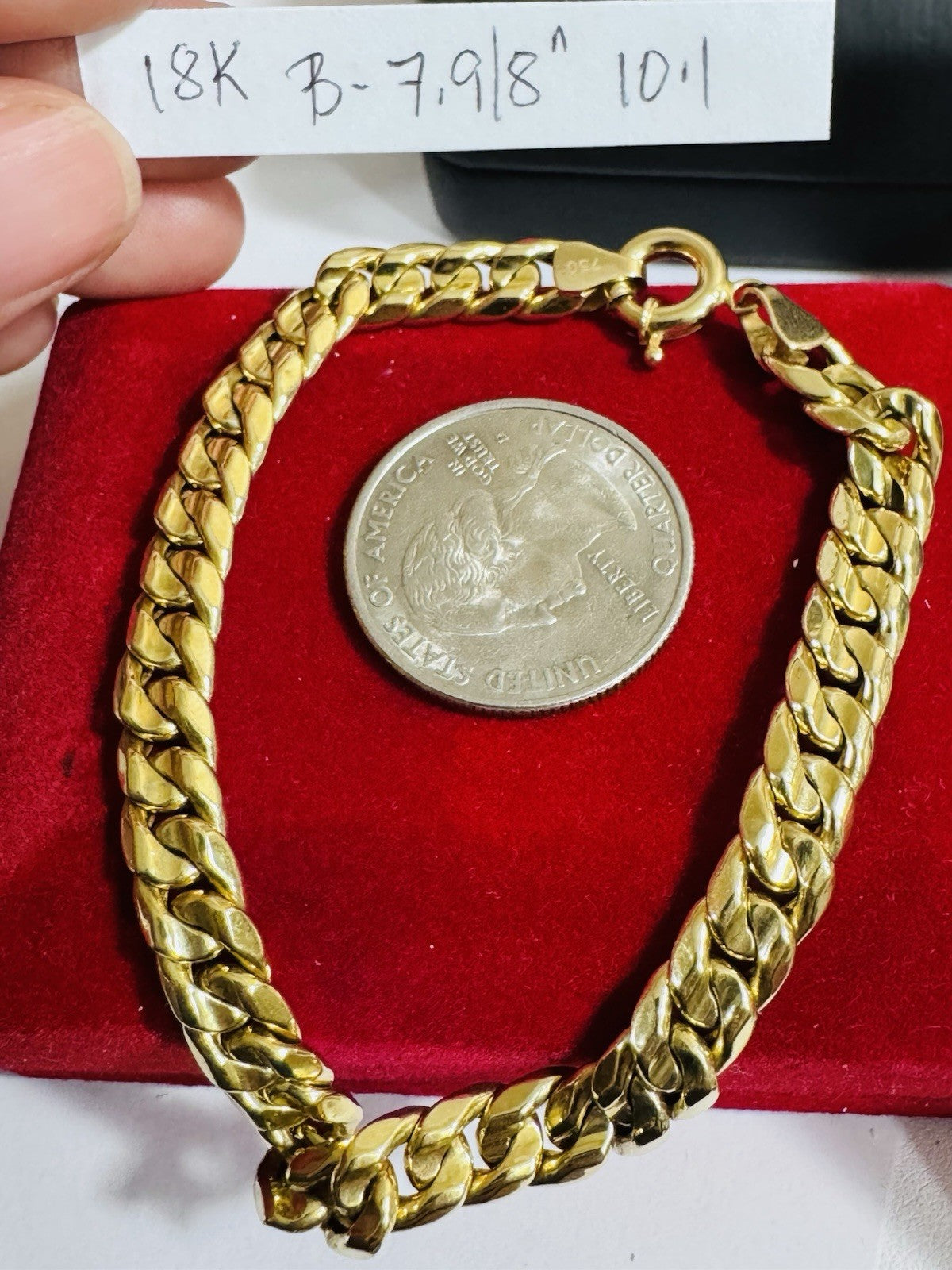 Pure 18K 750 Yellow Real Gold Cuban Curb Bracelet 7.9”/8” Long 7mm 10.1g Unisex