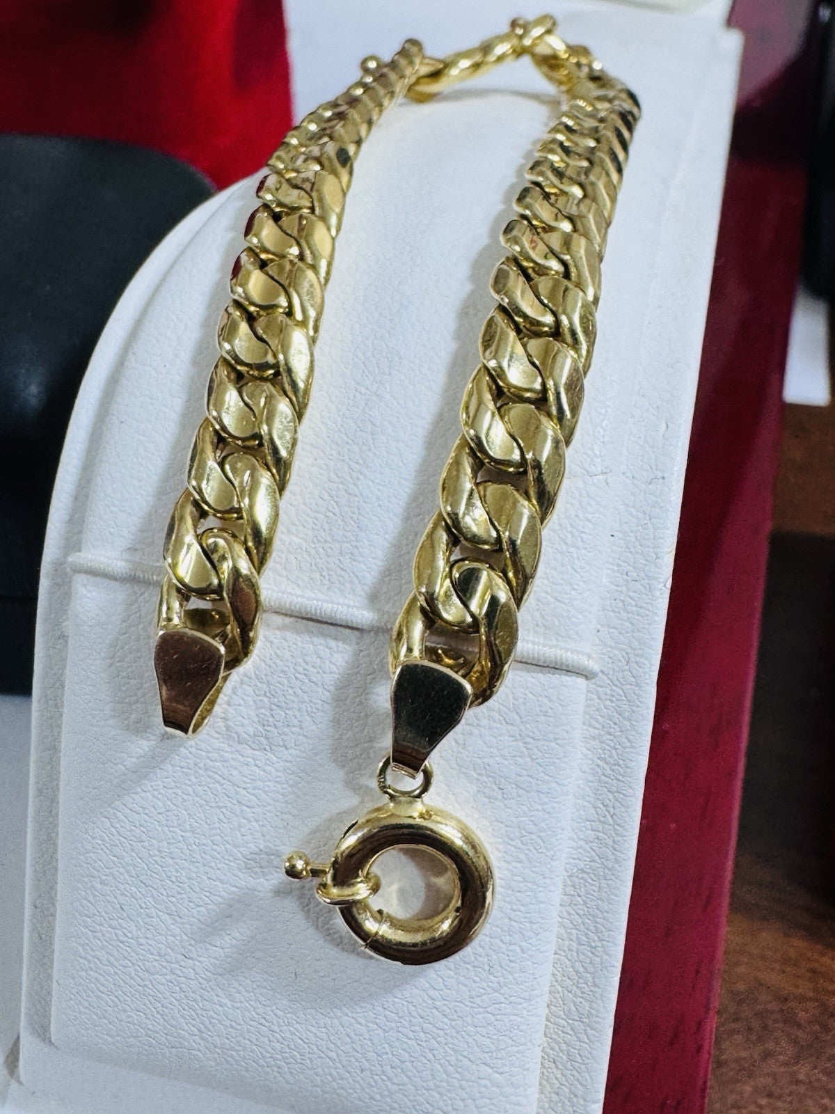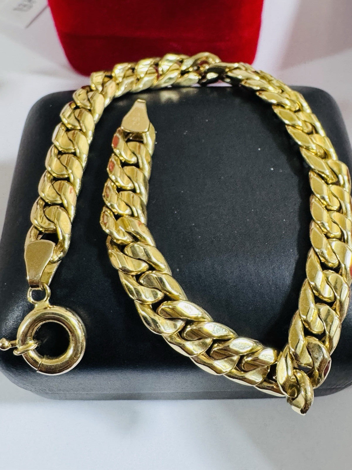 Elevate your style with this stunning 18K Saudi Gold Men’s Bracelet 10.1 grams 7mm 7.9” long Crafted with yellow gold and featuring a lobster clasp closure, this 7.9” inch long bracelet is the perfect addition to any jewelry collection.