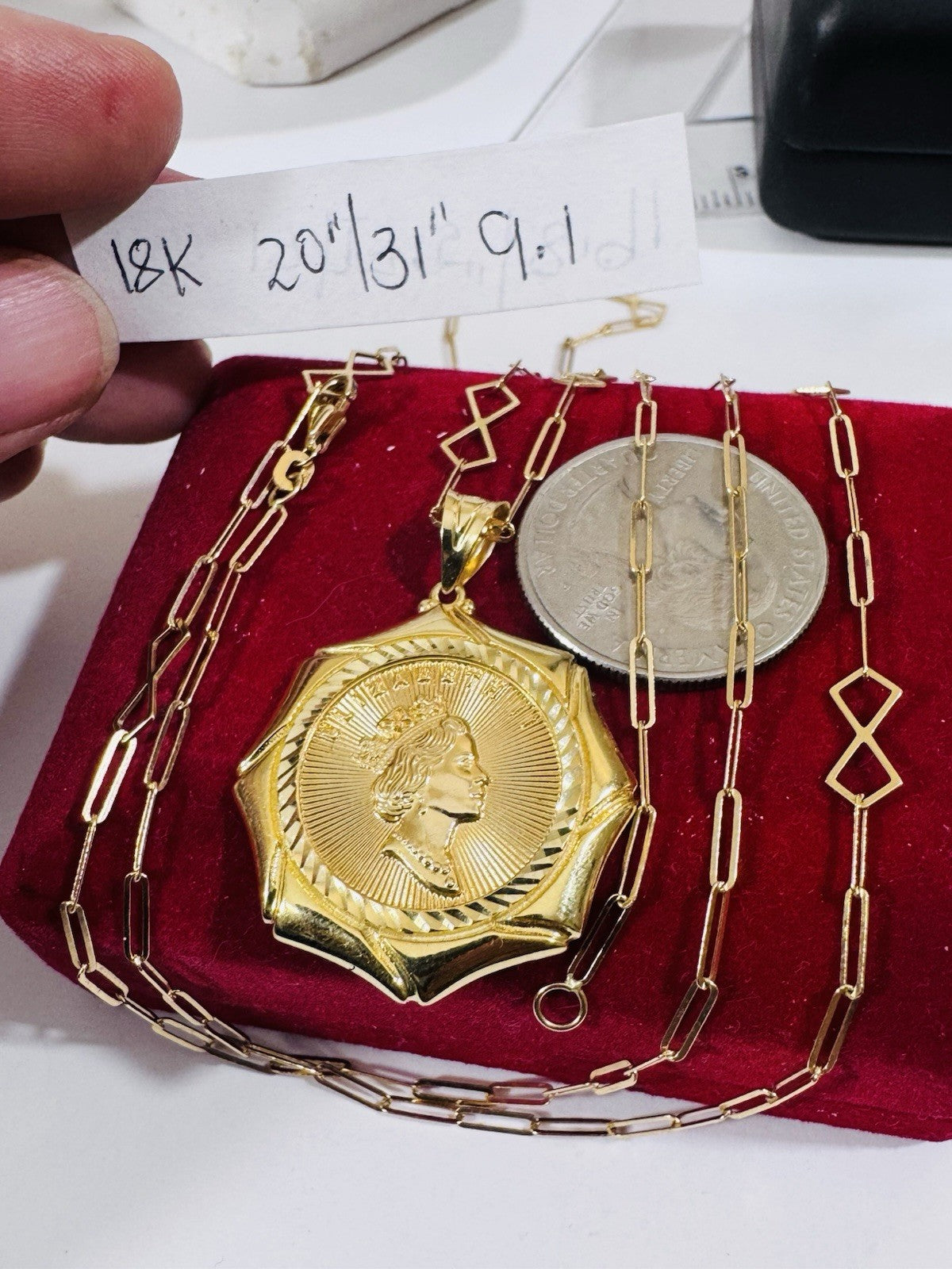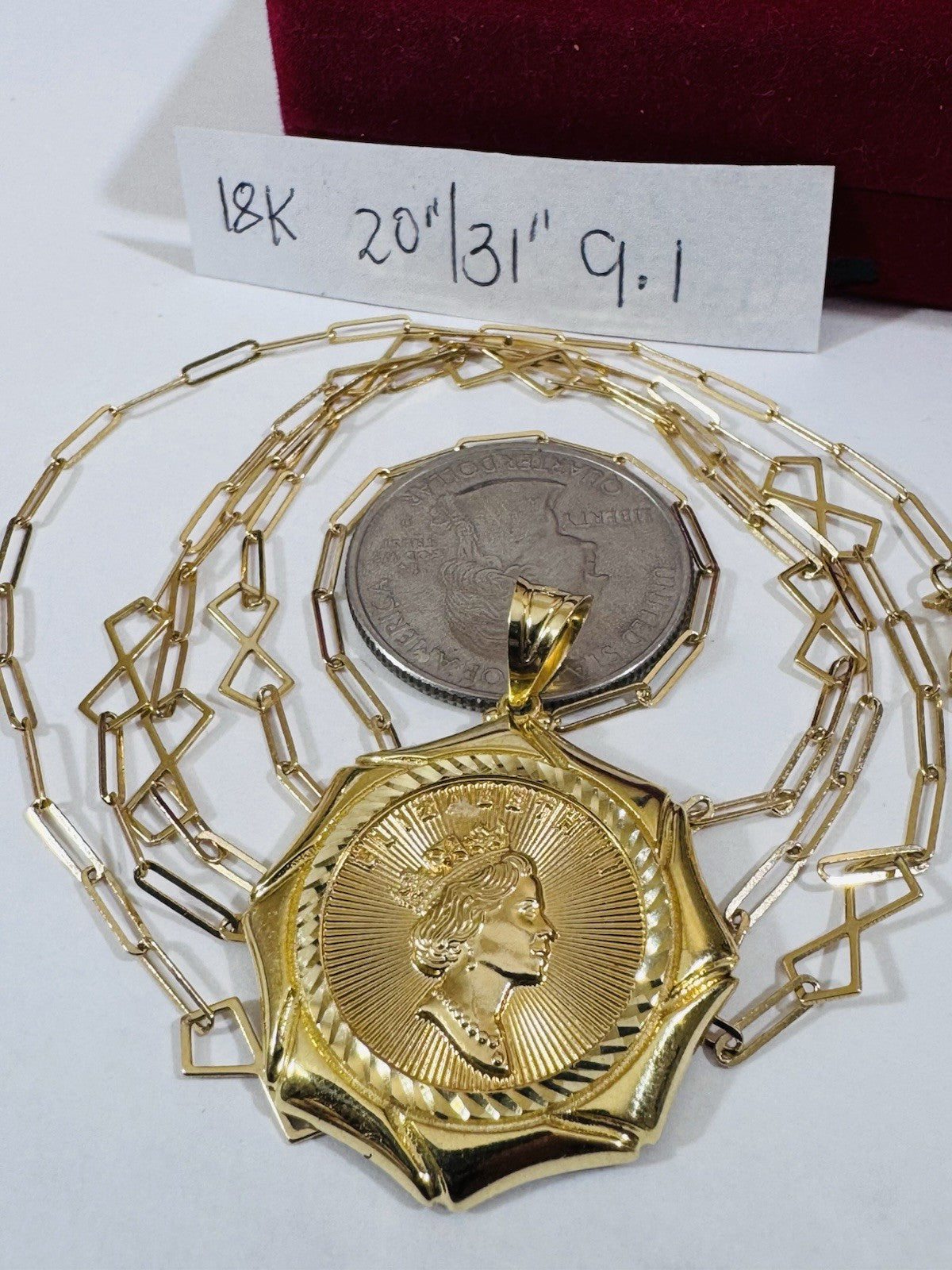 Real 18K 750 Genuine Saudi Gold Queen ll Necklace 20”/31” Inch Long Adj, 9.1g