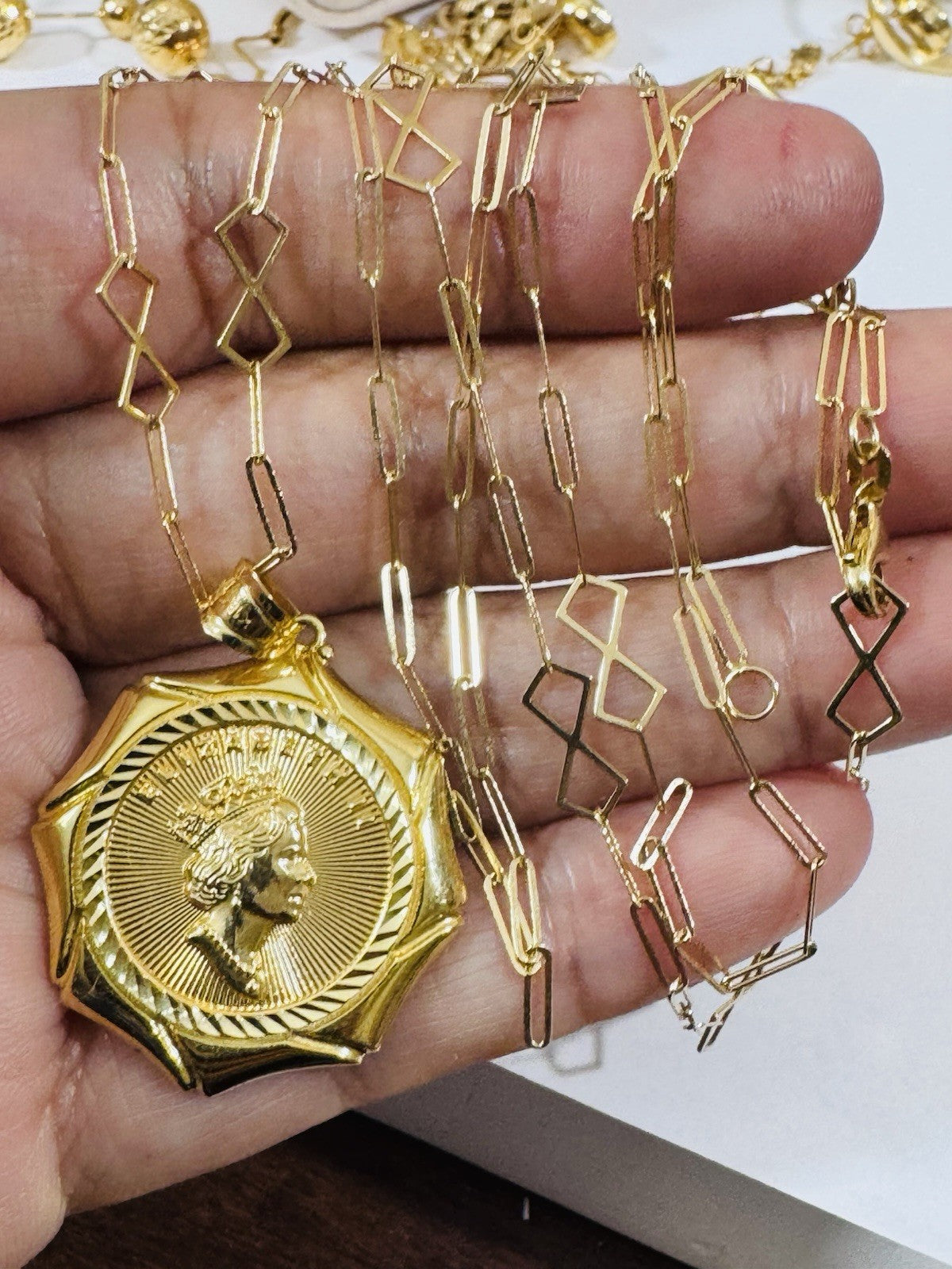 Enhanced Appearance: 18K jewelry complements the wearer's features, drawing attention to their best attributes and elevating their outfit to a more sophisticated level. For instance, a pendant necklace can highlight the collarbone