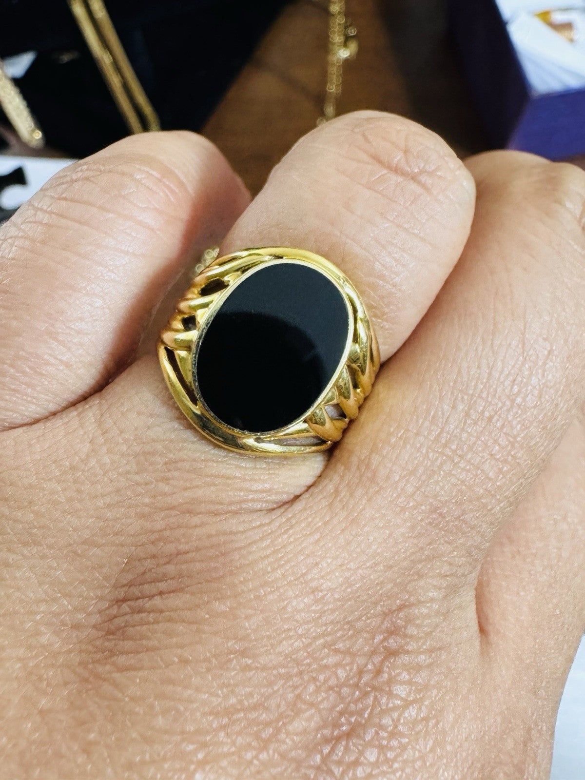 • You are buying K18 Japan real Gold Mens Black stone Women’s Ring Fits Size 7/7.5.” 5.4g fast-ship