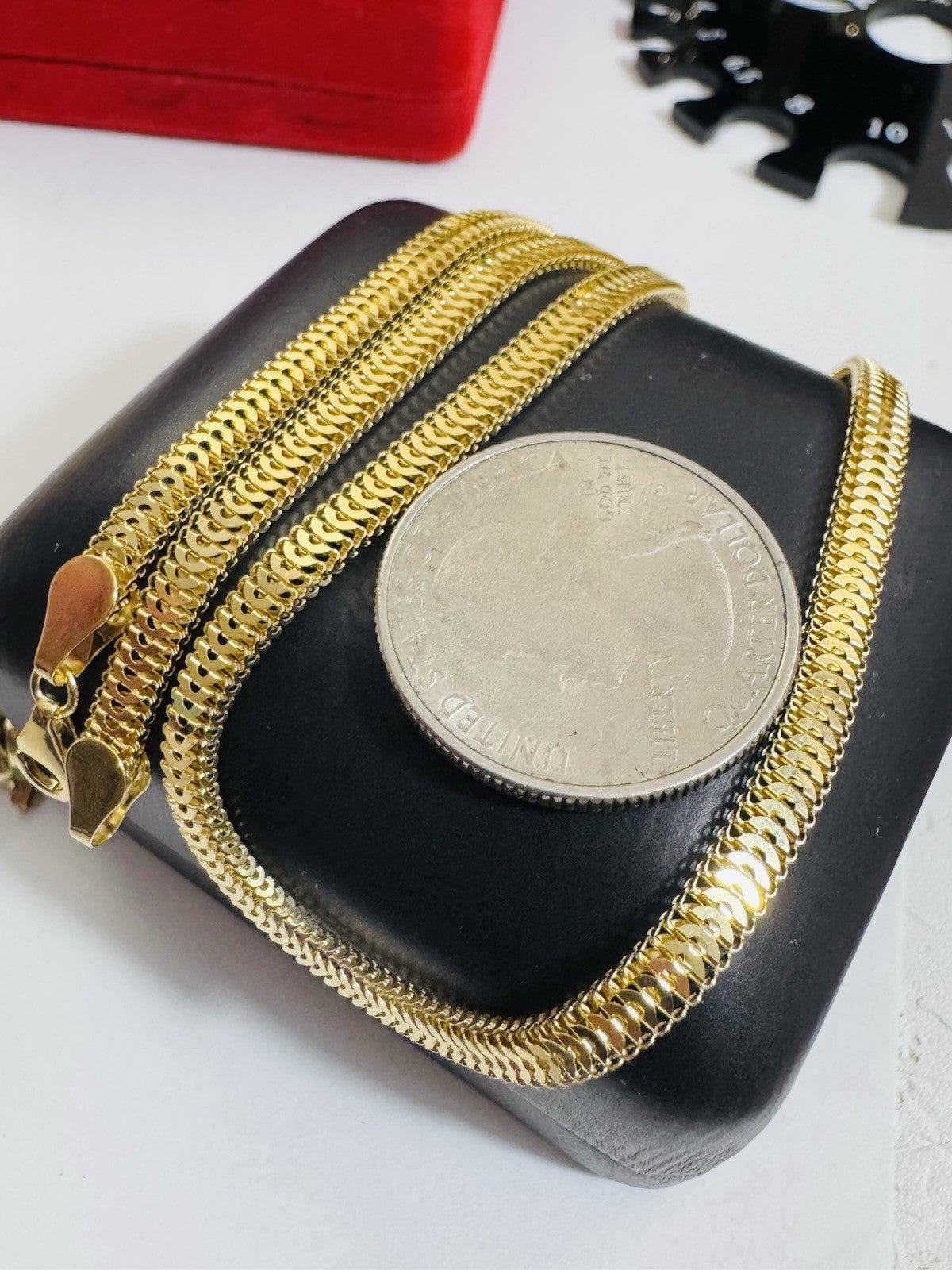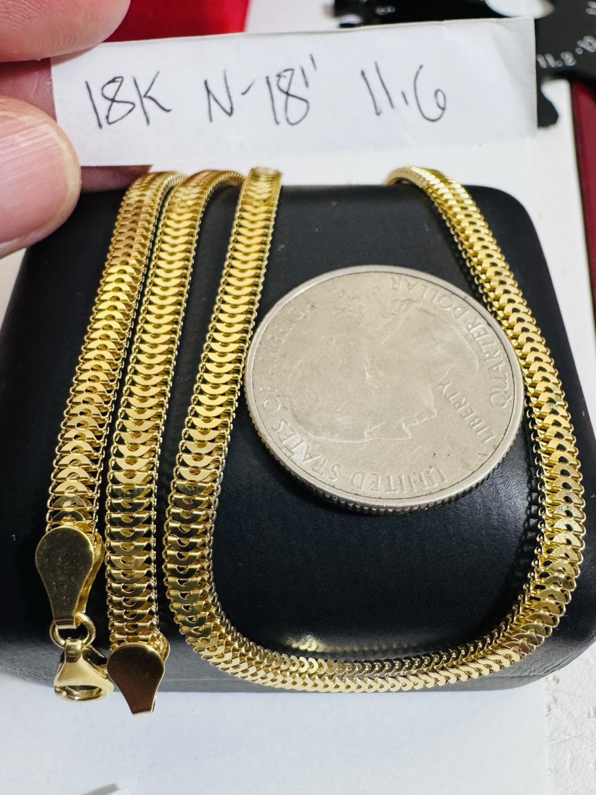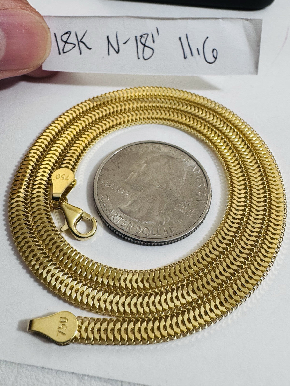 Solid 18K 750 Dubai Fine Genuine Gold Snake Chain Necklace 18” Long 11.6g 4mm