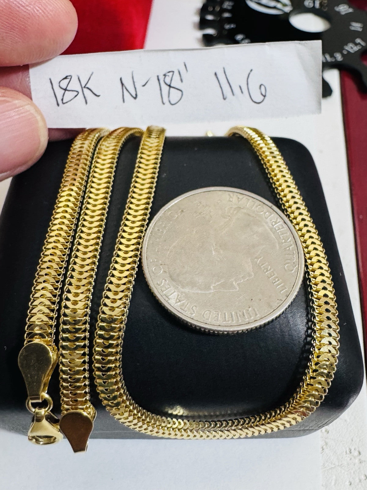 Solid 18K 750 Dubai Fine Genuine Gold Snake Chain Necklace 18” Long 11.6g 4mm
