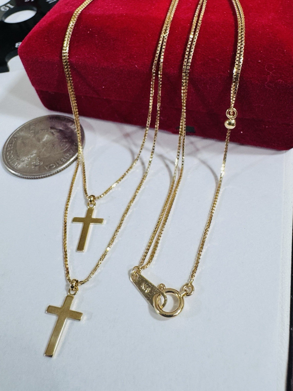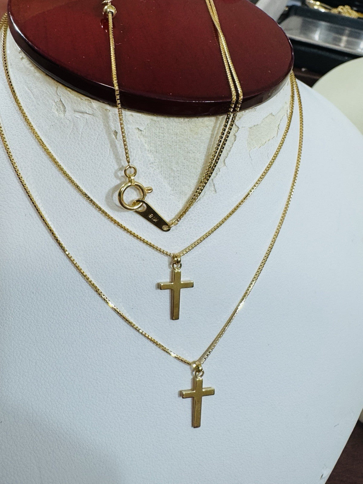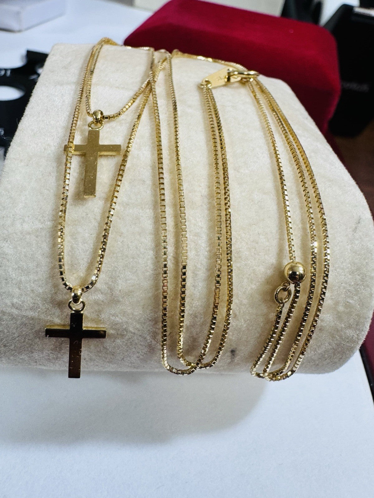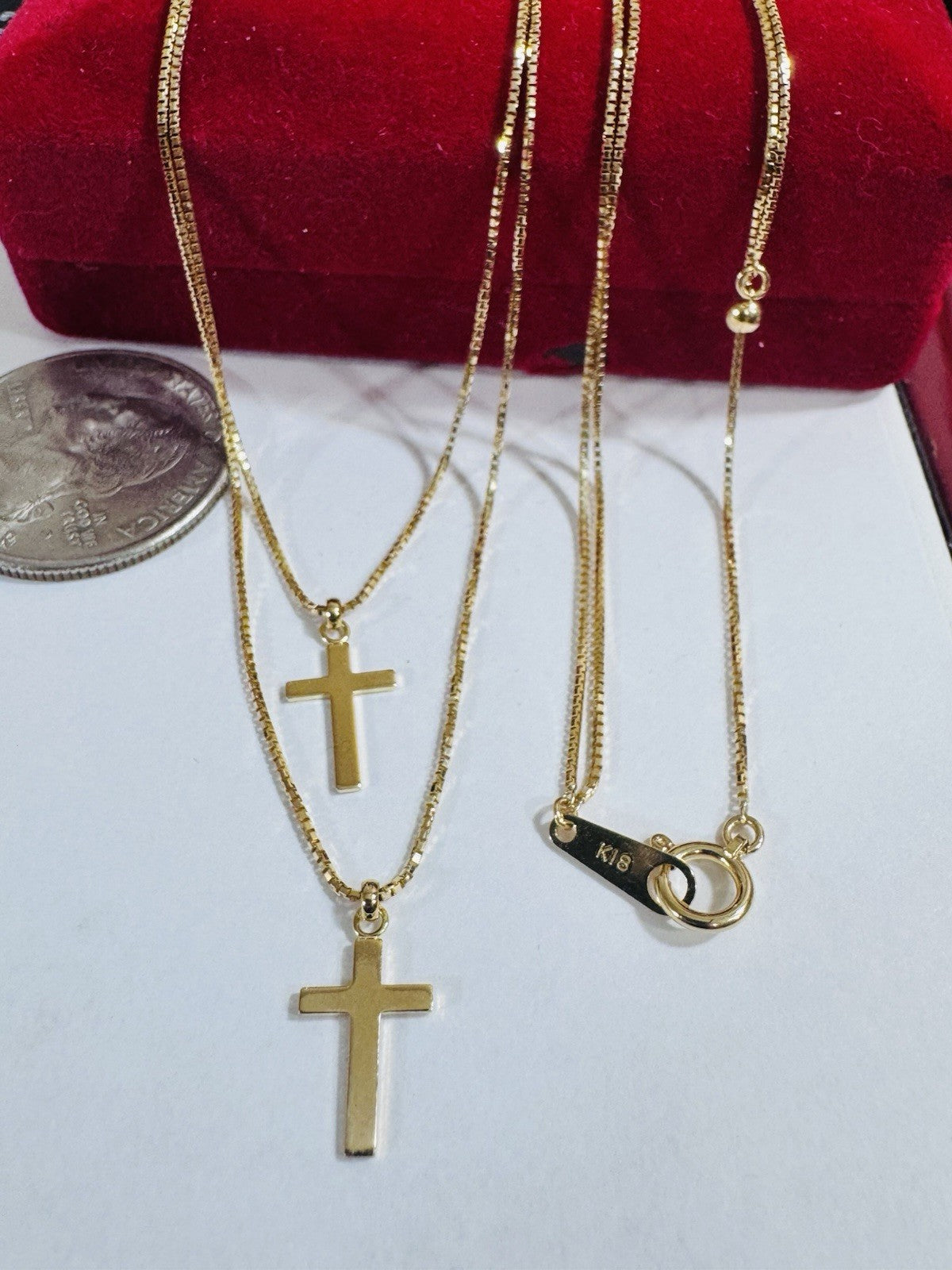 This beautiful Layer Cross necklace is expertly crafted in 18K K18 real yellow gold and features a stunning 16 inch chain with 1mm wide. 3.6g choker size