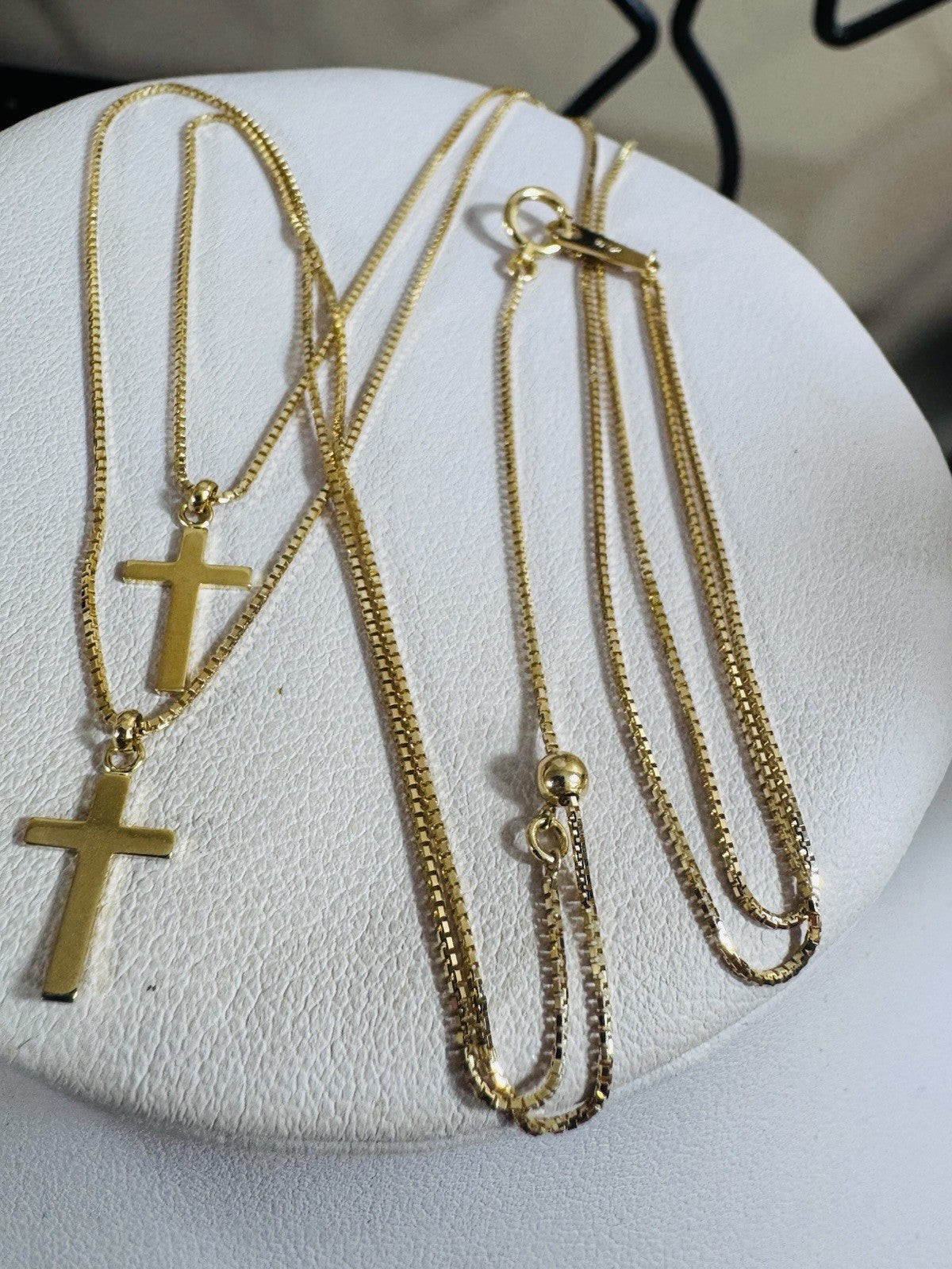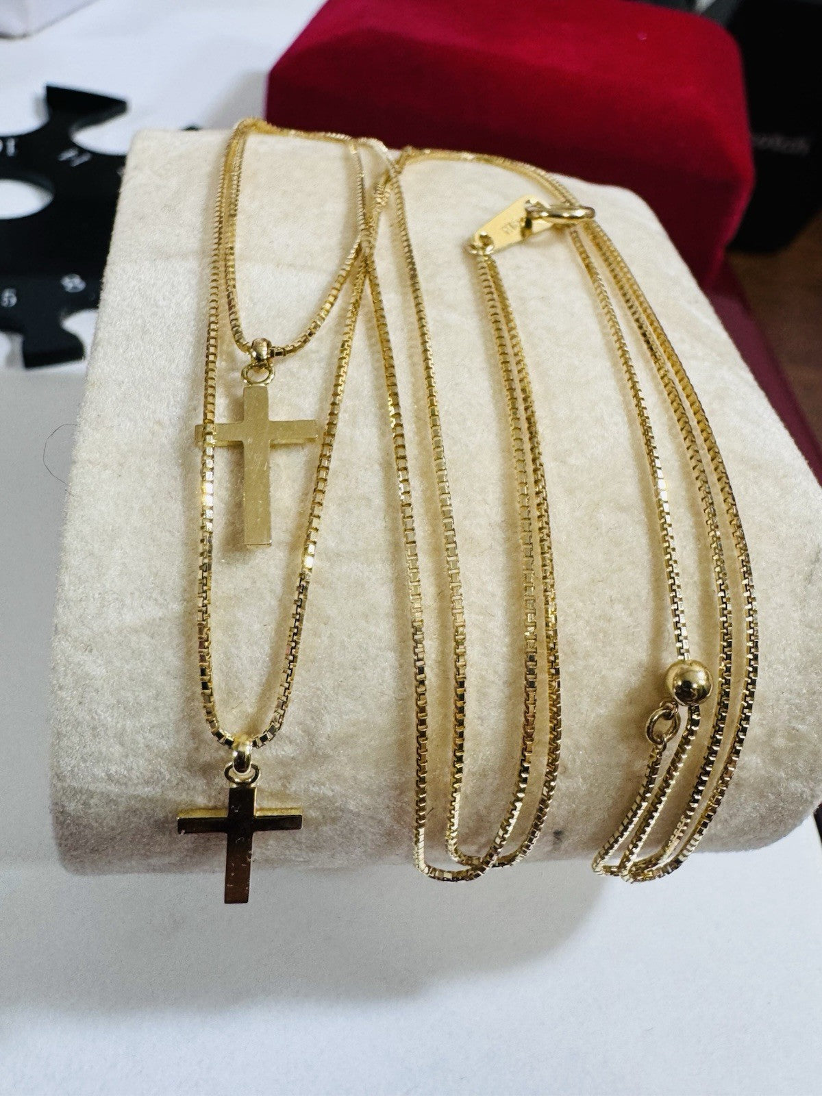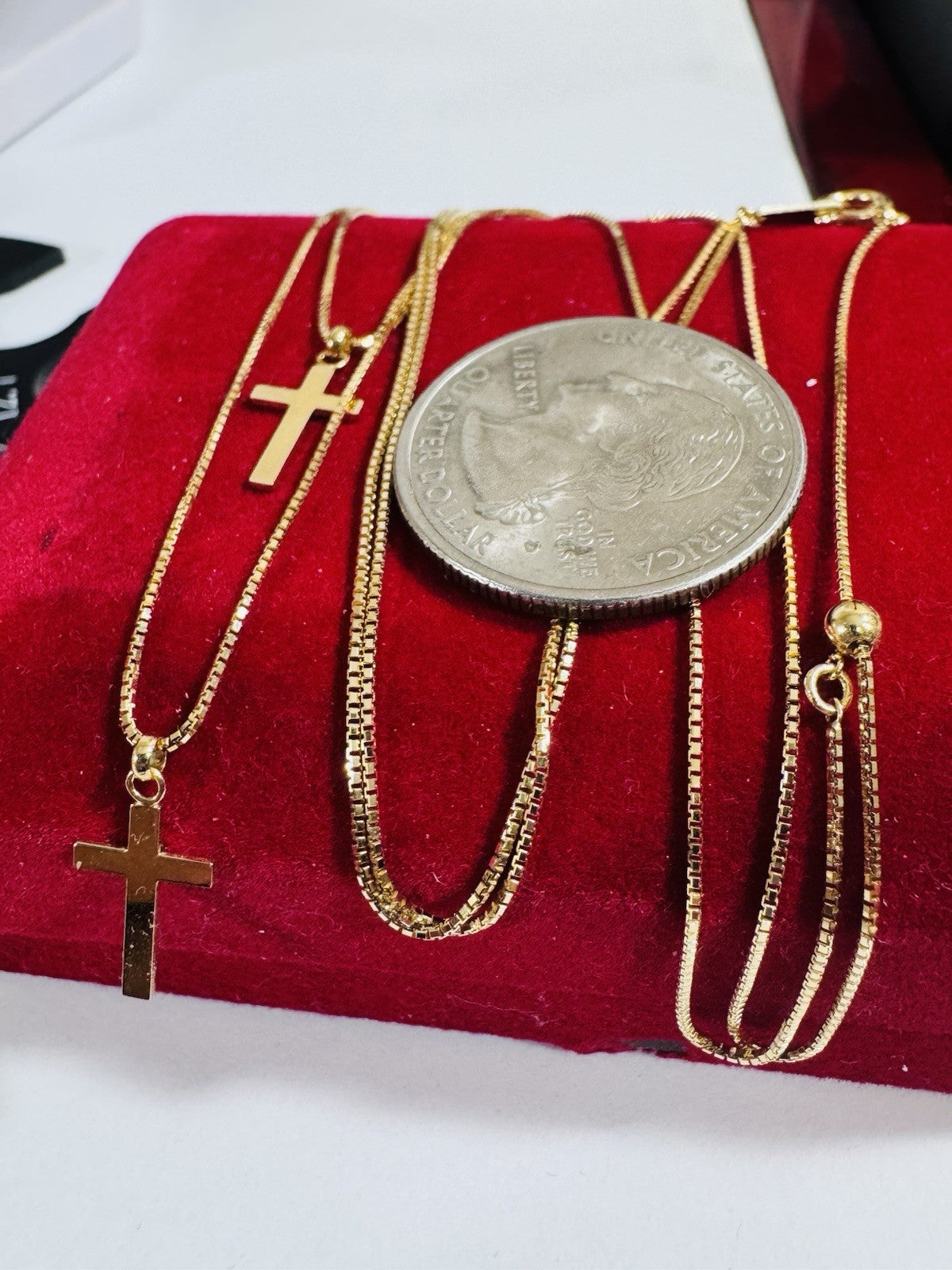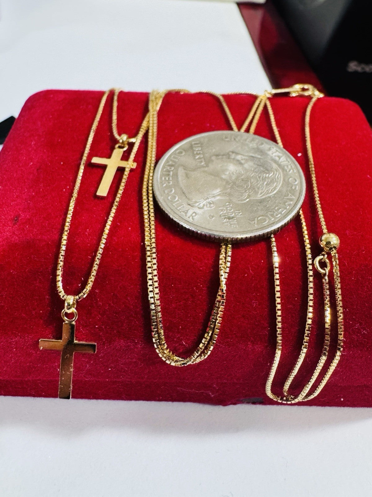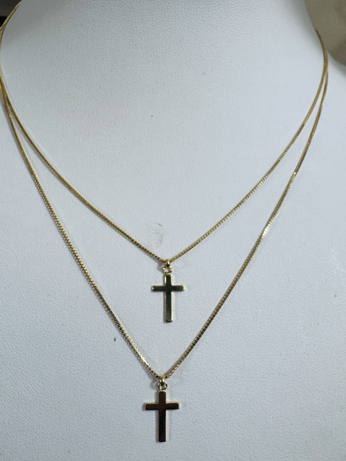 This beautiful Layer Cross necklace is expertly crafted in 18K K18 real yellow gold and features a stunning 16 inch chain with 1mm wide. 3.6g choker size
