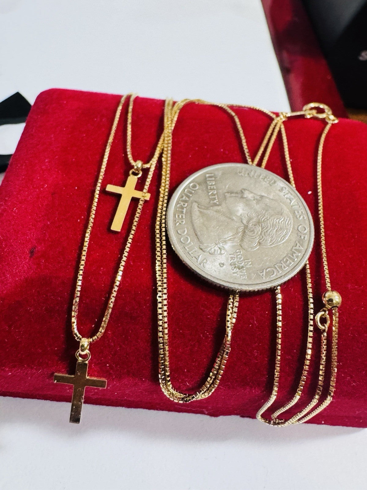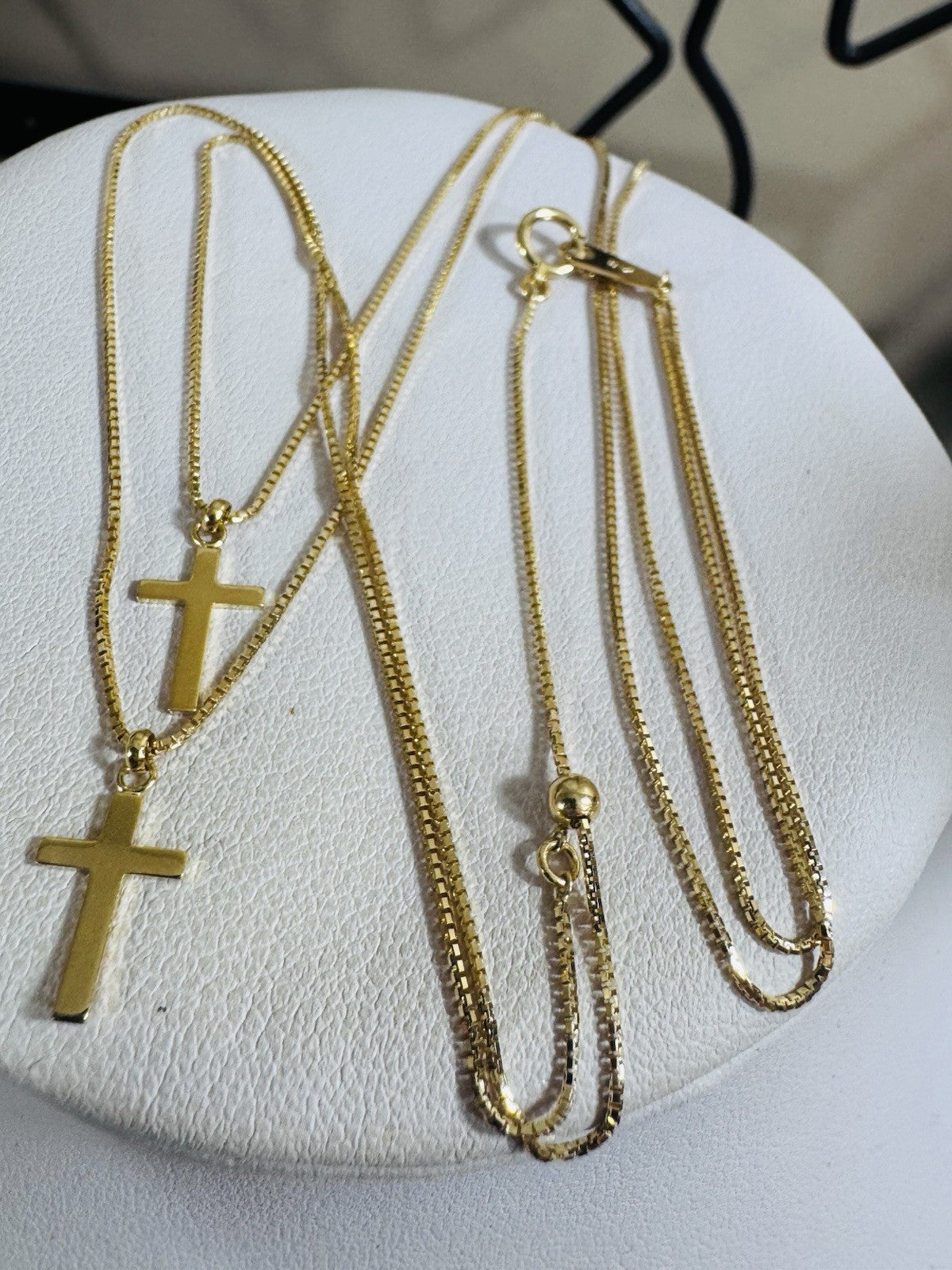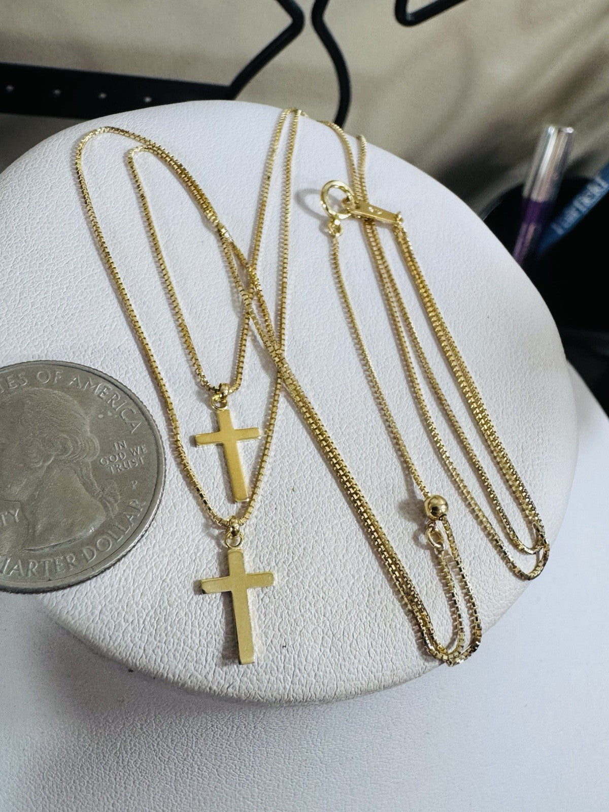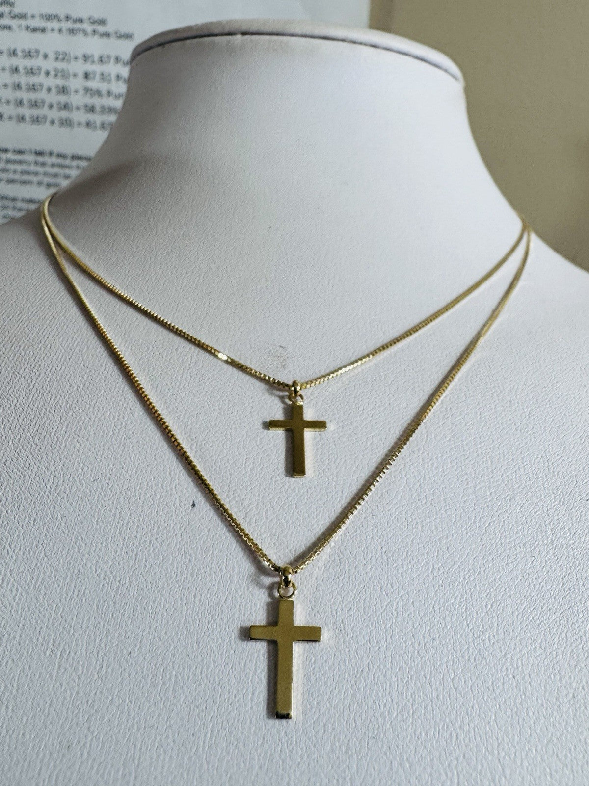 This beautiful Layer Cross necklace is expertly crafted in 18K K18 real yellow gold and features a stunning 16 inch chain with 1mm wide. 3.6g choker size