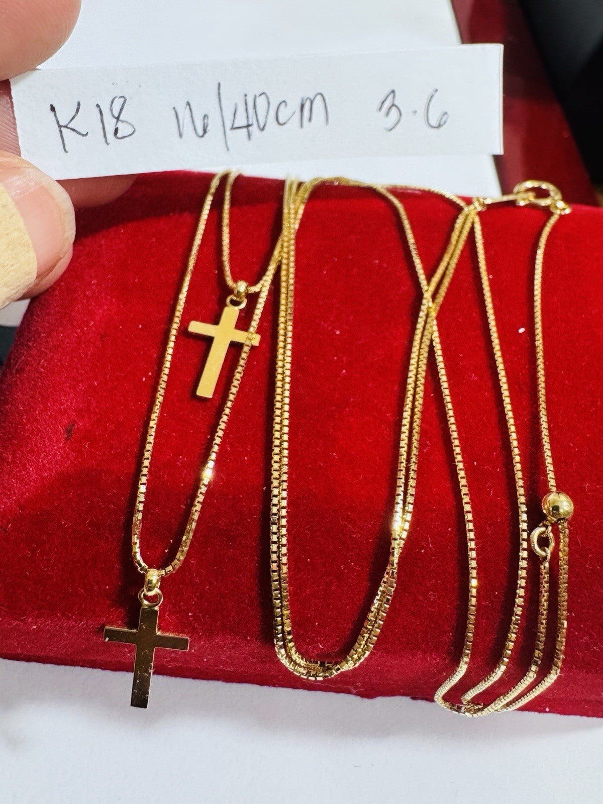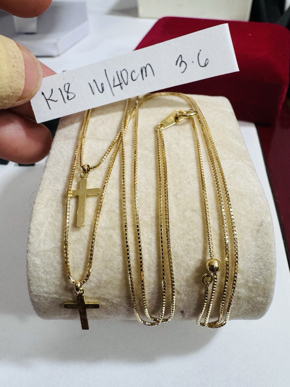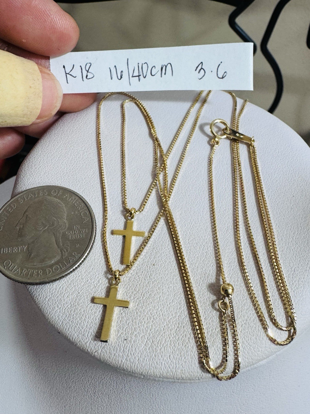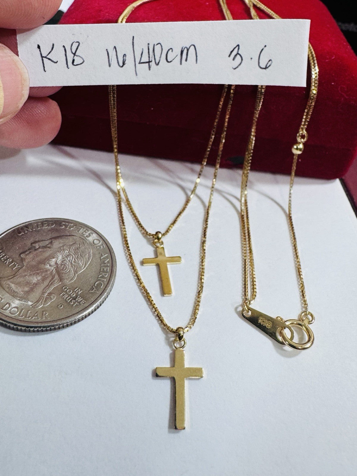 Solid 18K K18 Fine Genuine Japan Real Gold Layer Cross Necklace 16” Long 3.6g