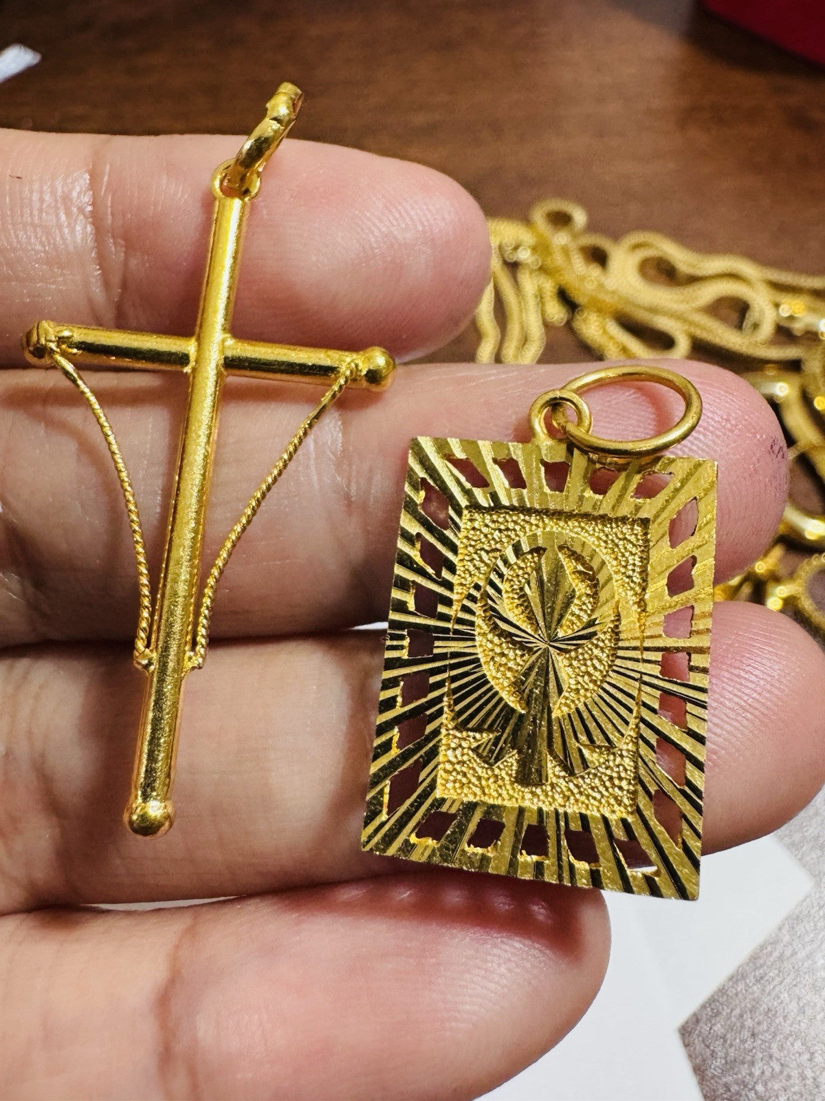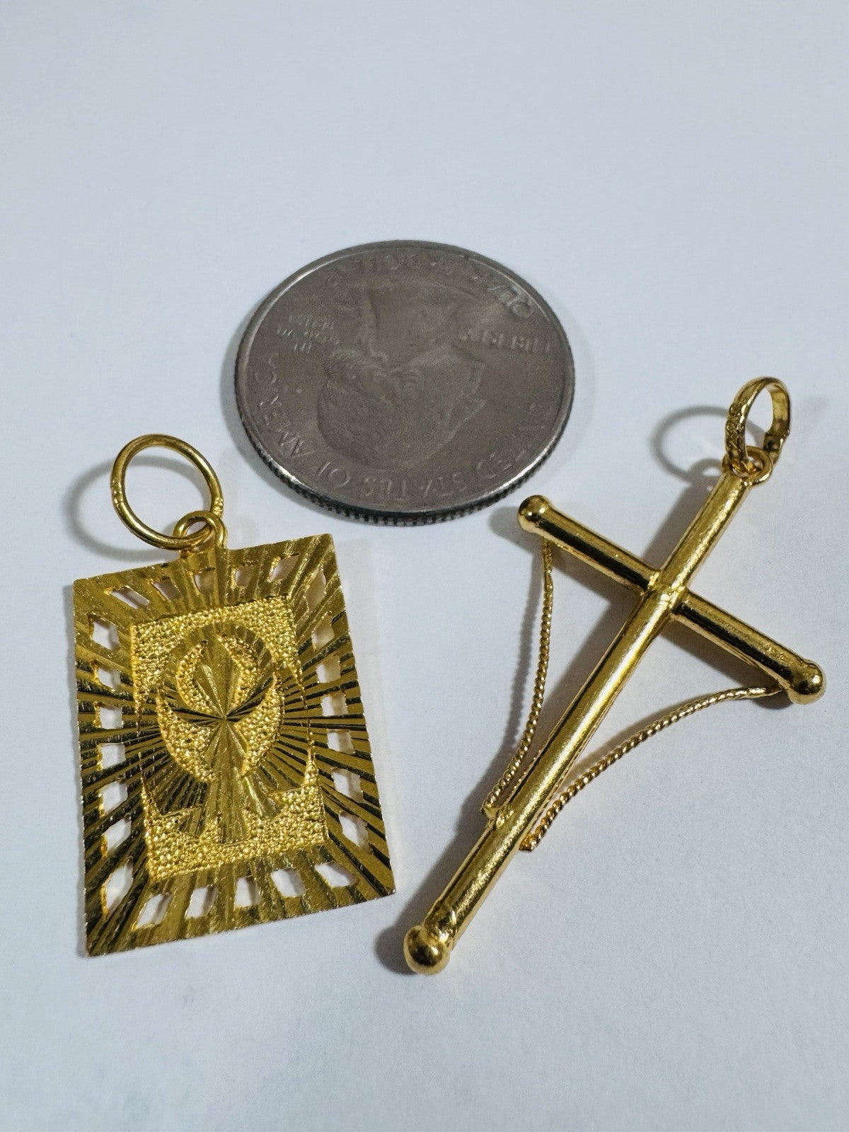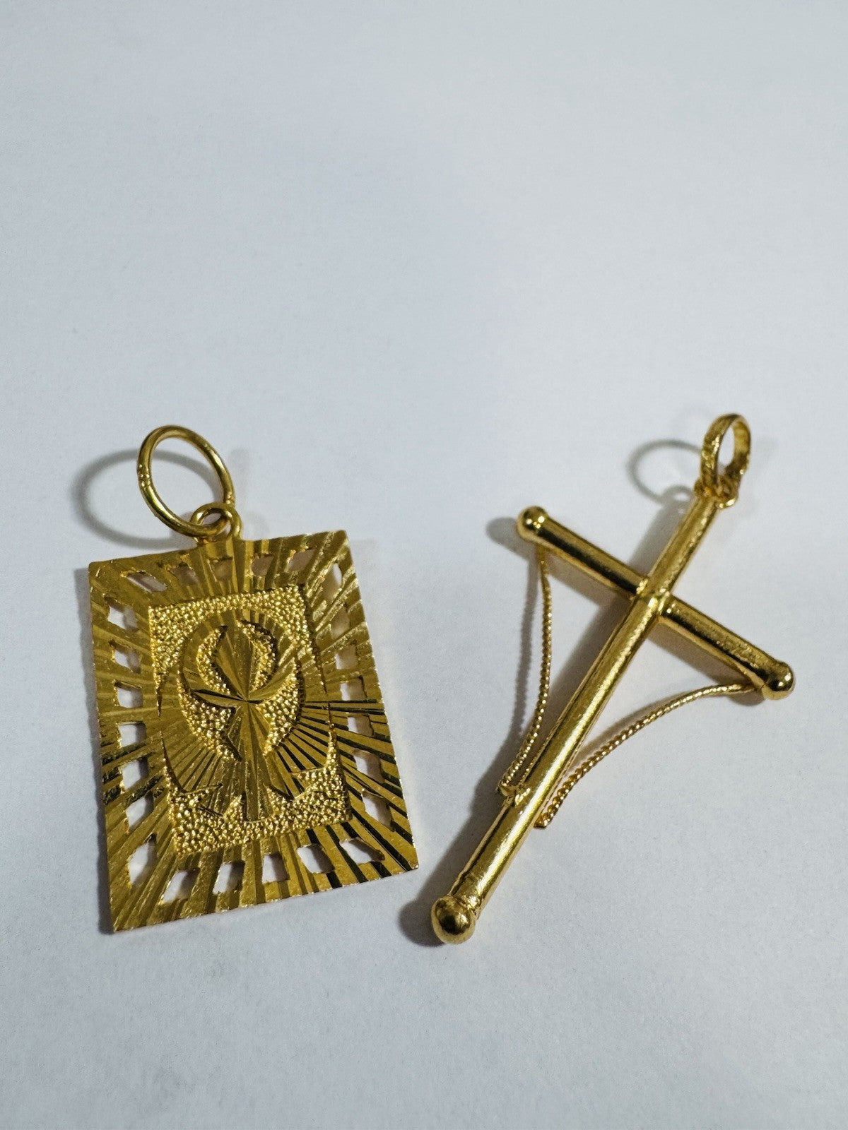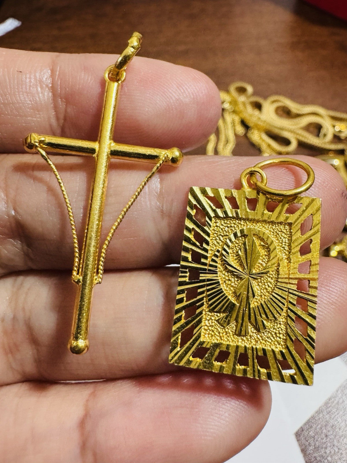 Solid 22K 916 Fine Real Gold Two (2) Set Pendant Sikh Allah Devine & Cross 5.4g