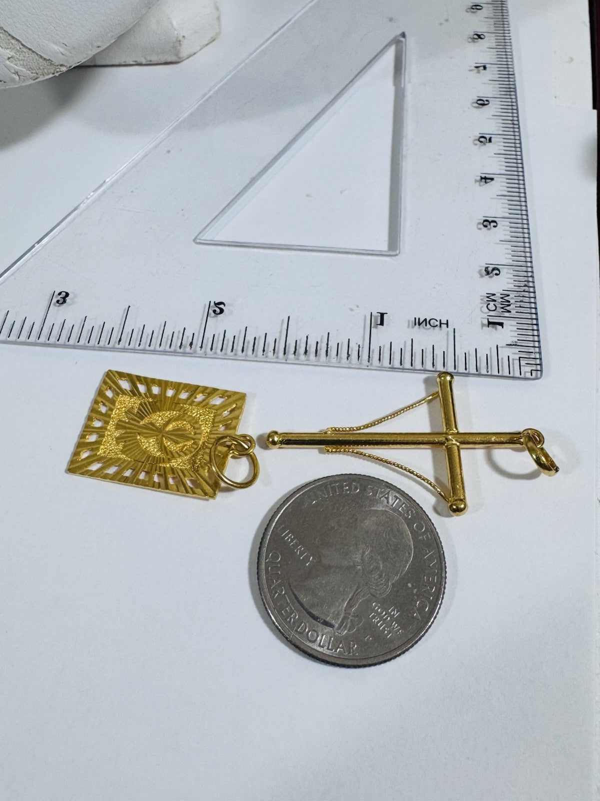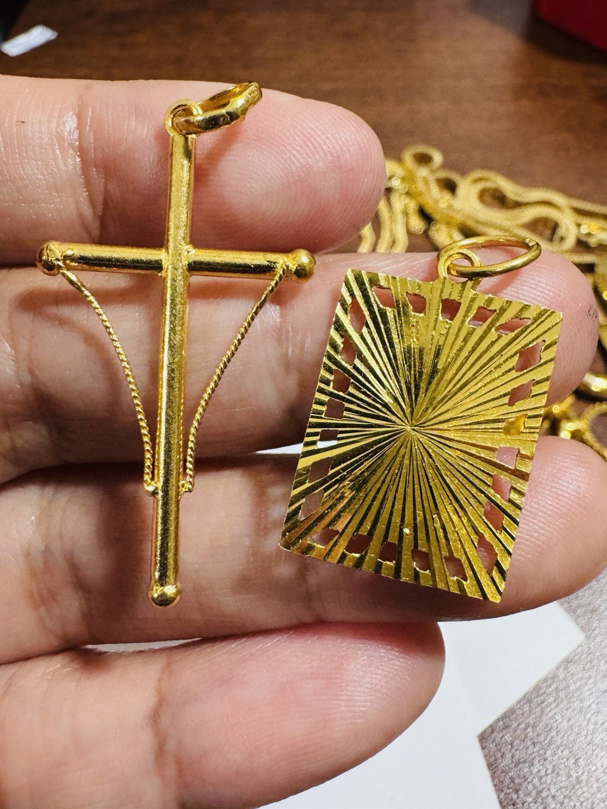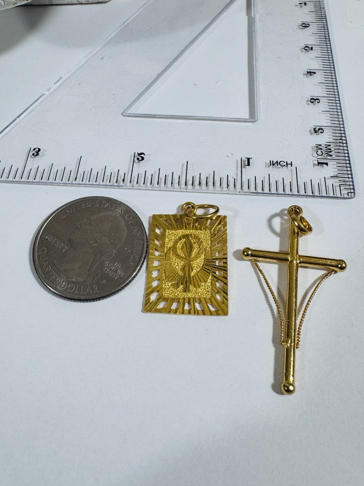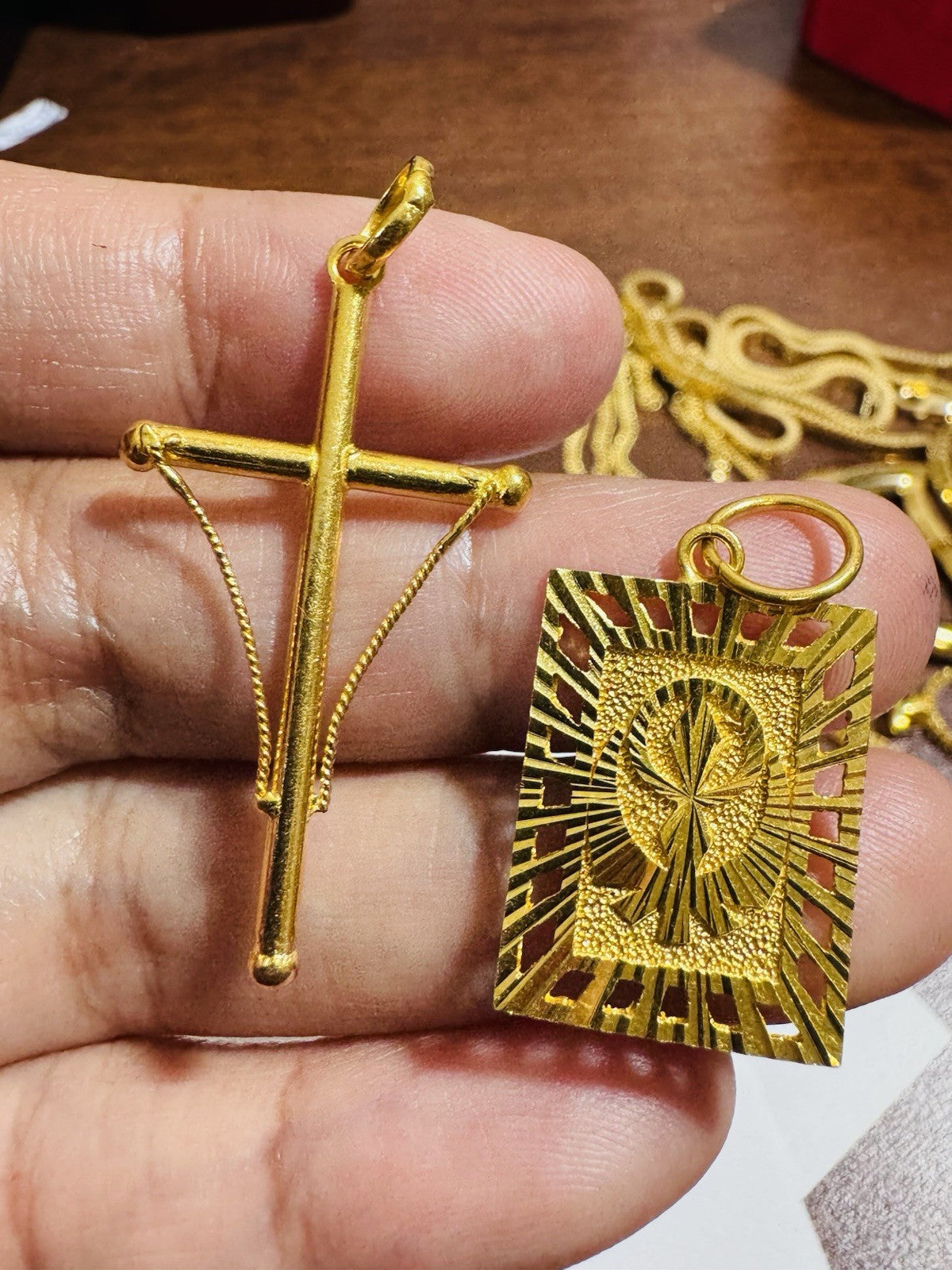 Solid 22K 916 Fine Real Gold Two (2) Set Pendant Sikh Allah Devine & Cross 5.4g