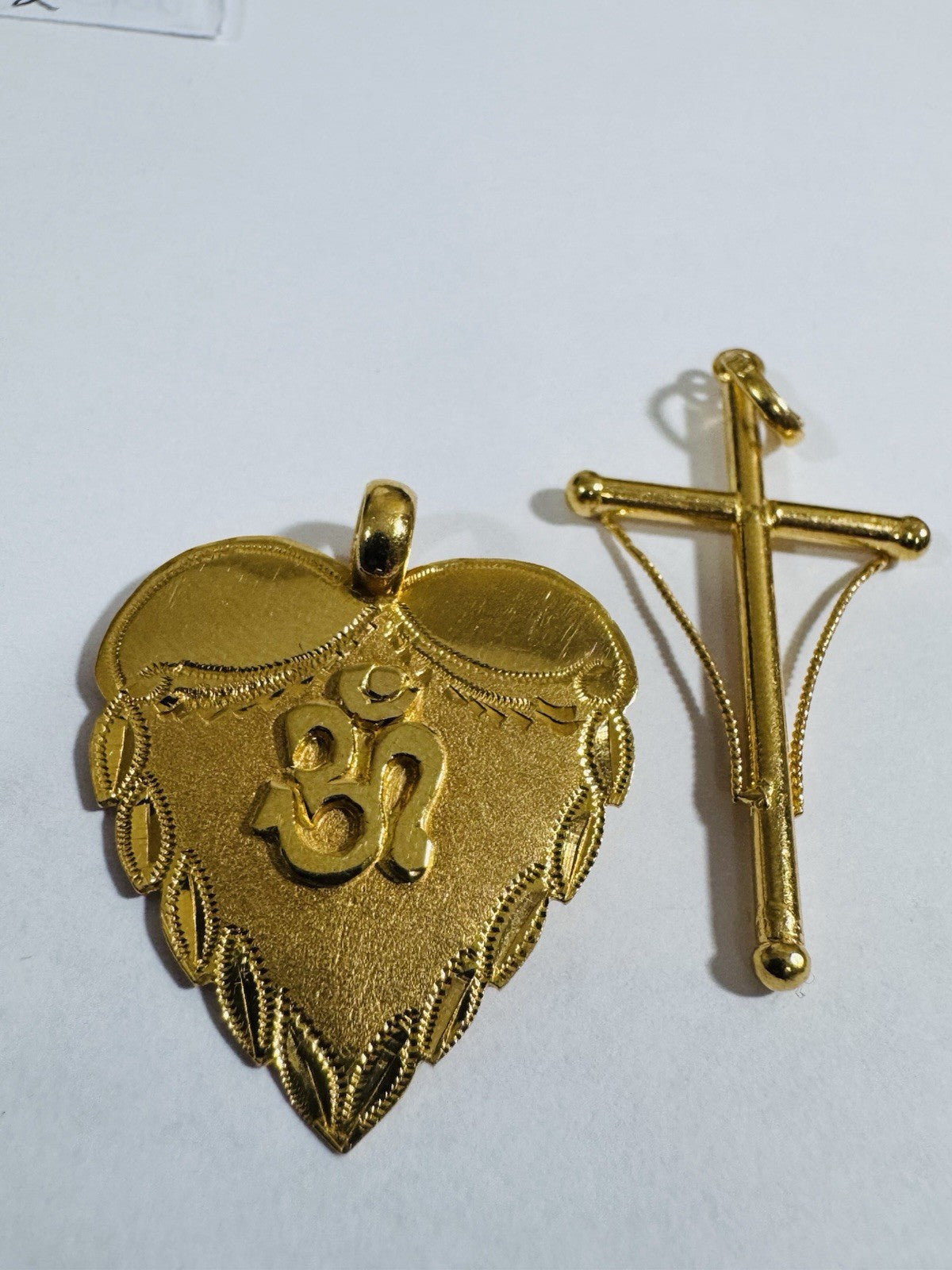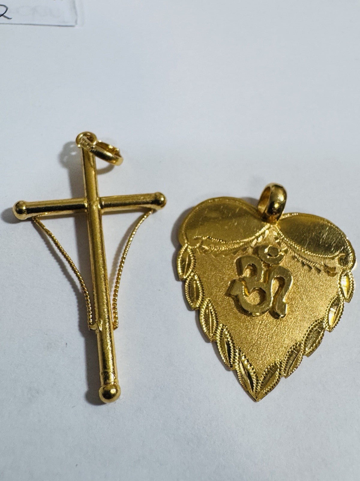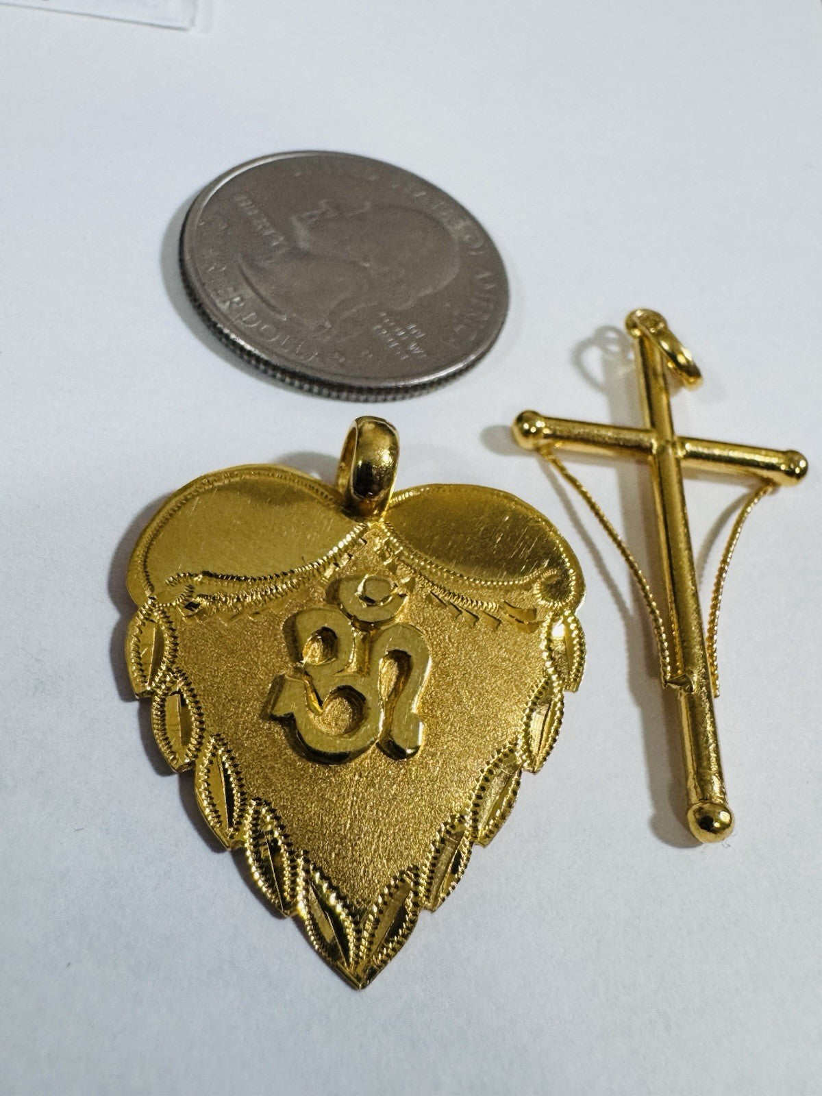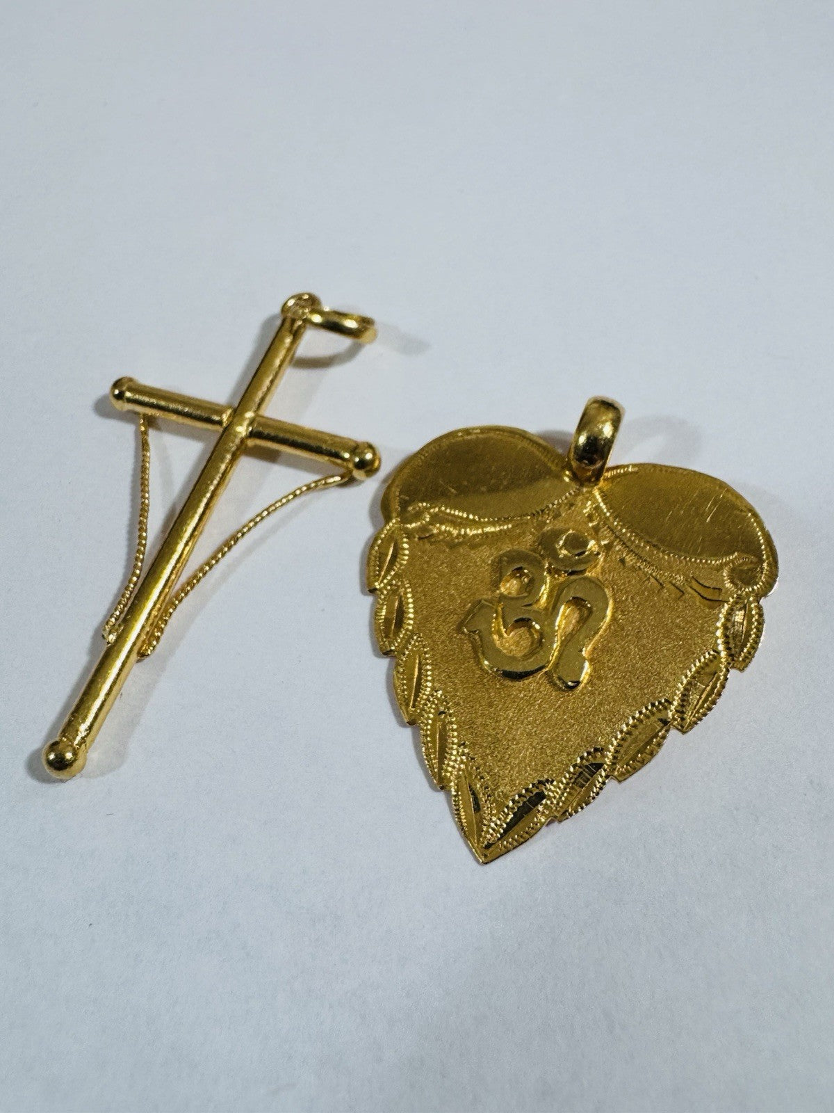 Solid 22K 916 Fine Real Gold Two (2) Set Pendant Sikh Allah Devine/Cross 6.2g