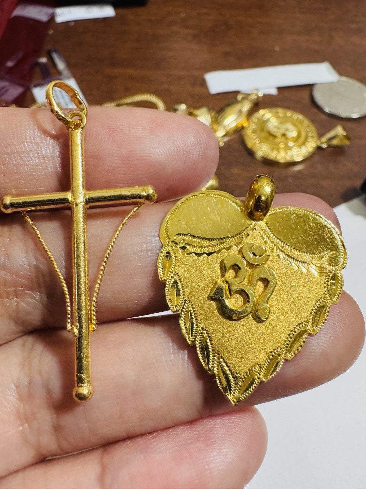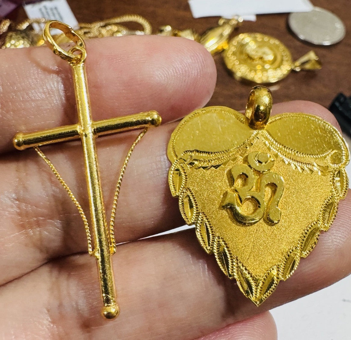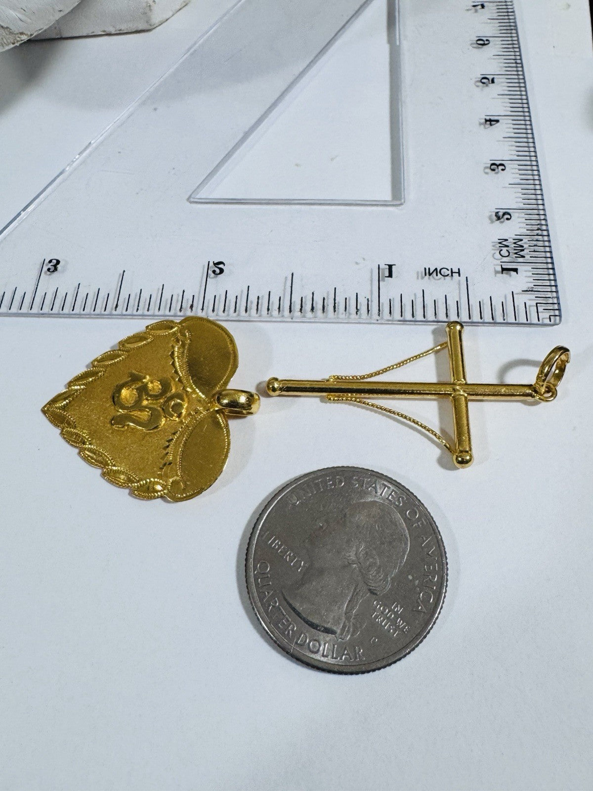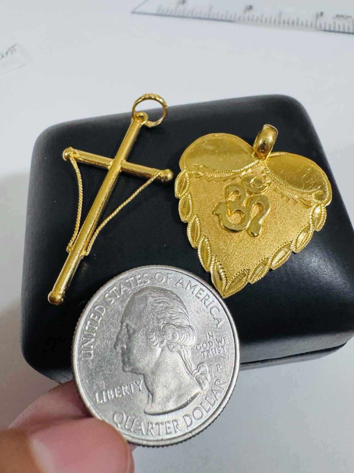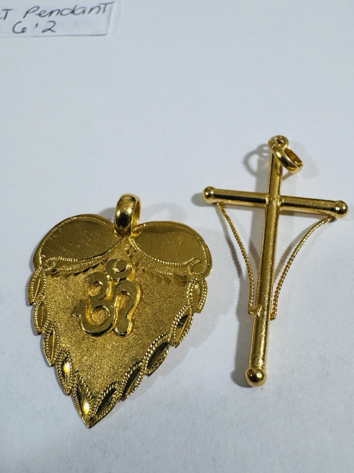 Solid 22K 916 Fine Real Gold Two (2) Set Pendant Sikh Allah Devine/Cross 6.2g