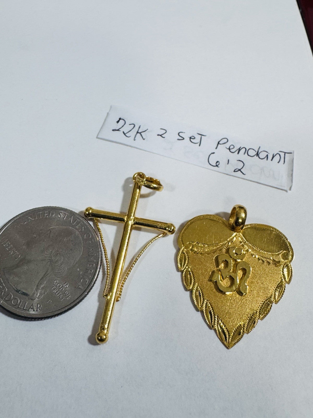 Solid 22K 916 Fine Real Gold Two Set Pendant 6.2 grams, not sold separately