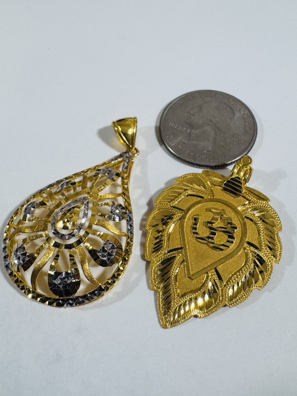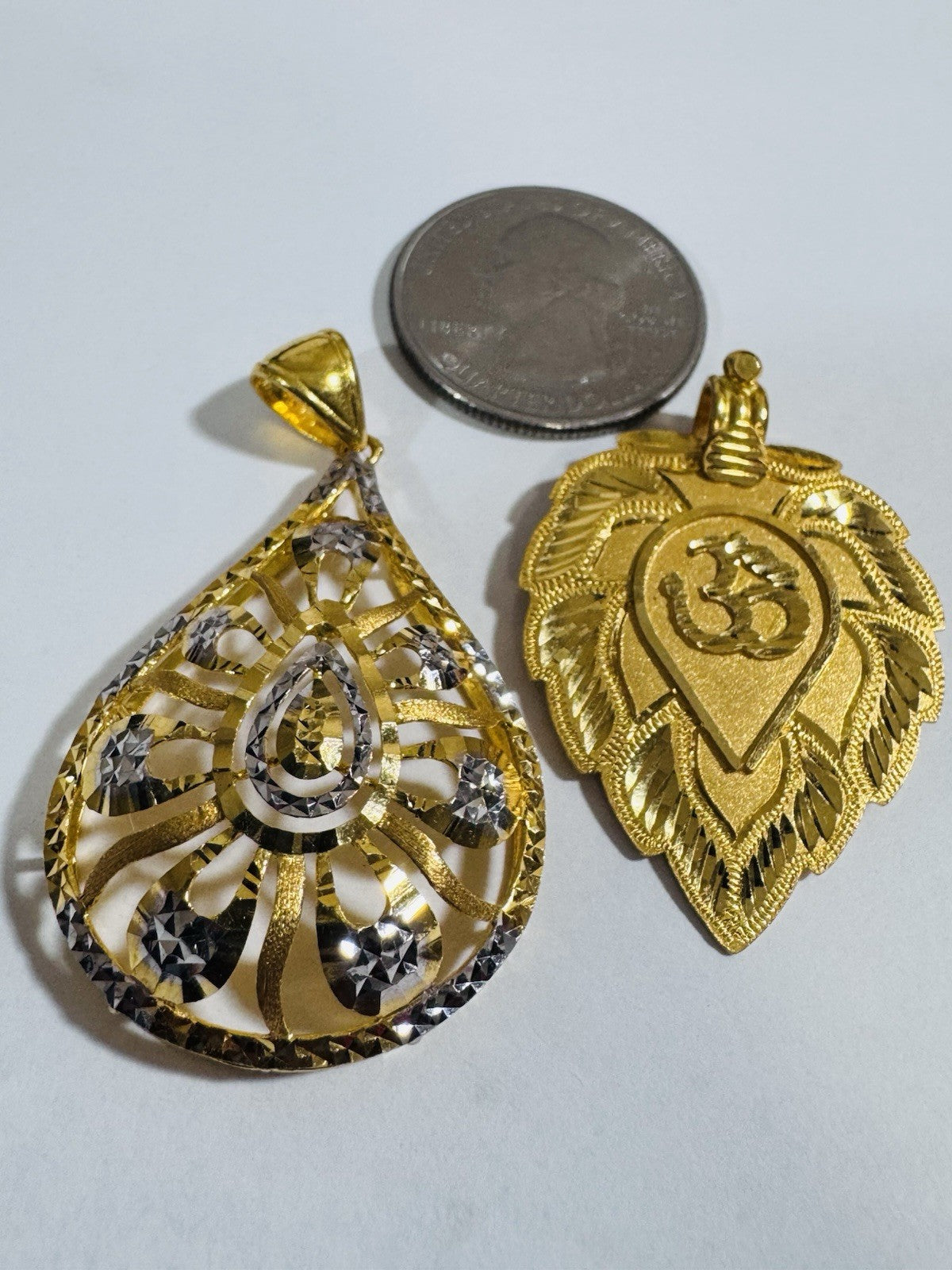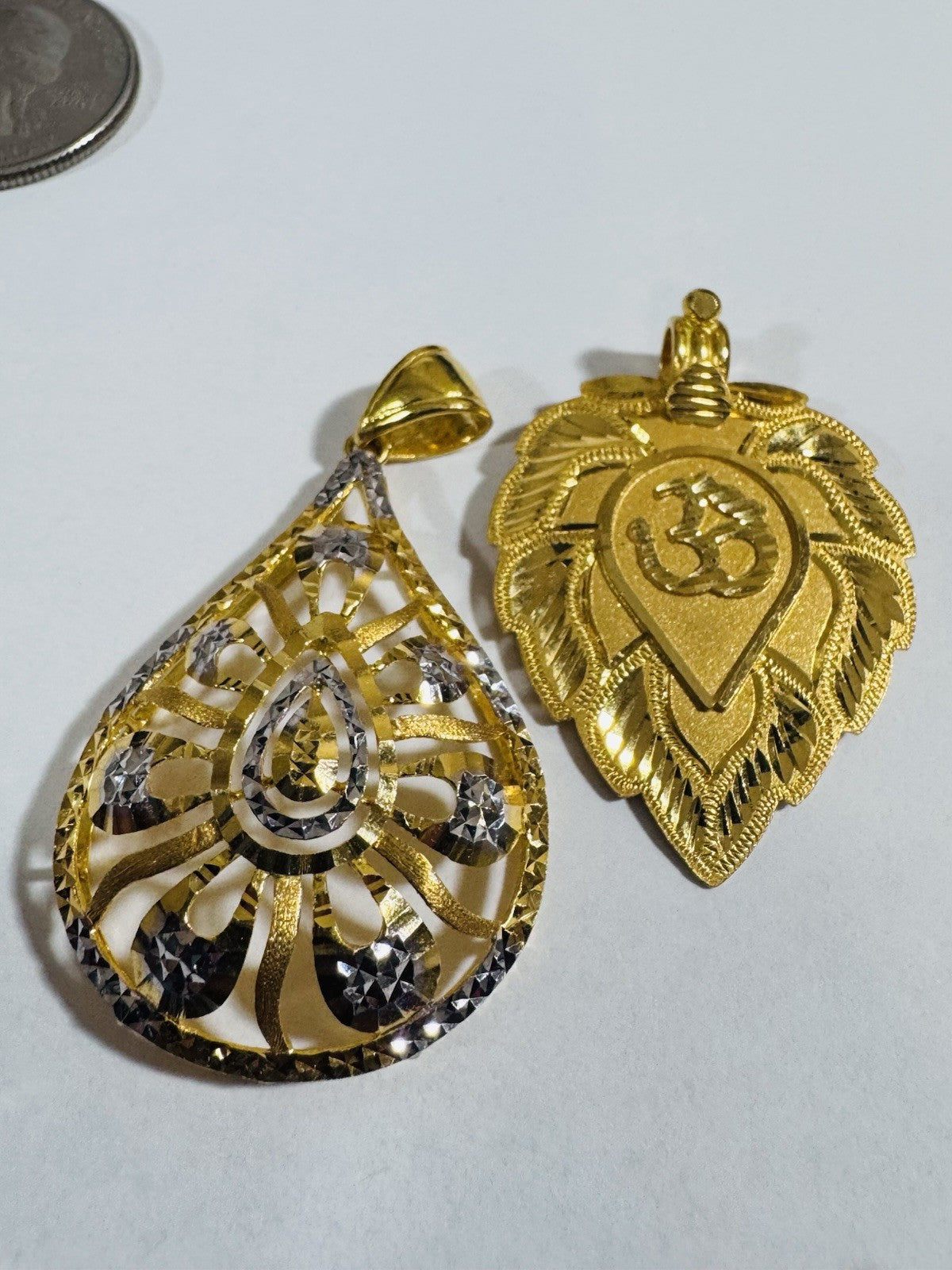 Solid 22K 916 Fine Real Gold Two (2) Set Pendant Sikh Allah/ Teardrop 12.55g