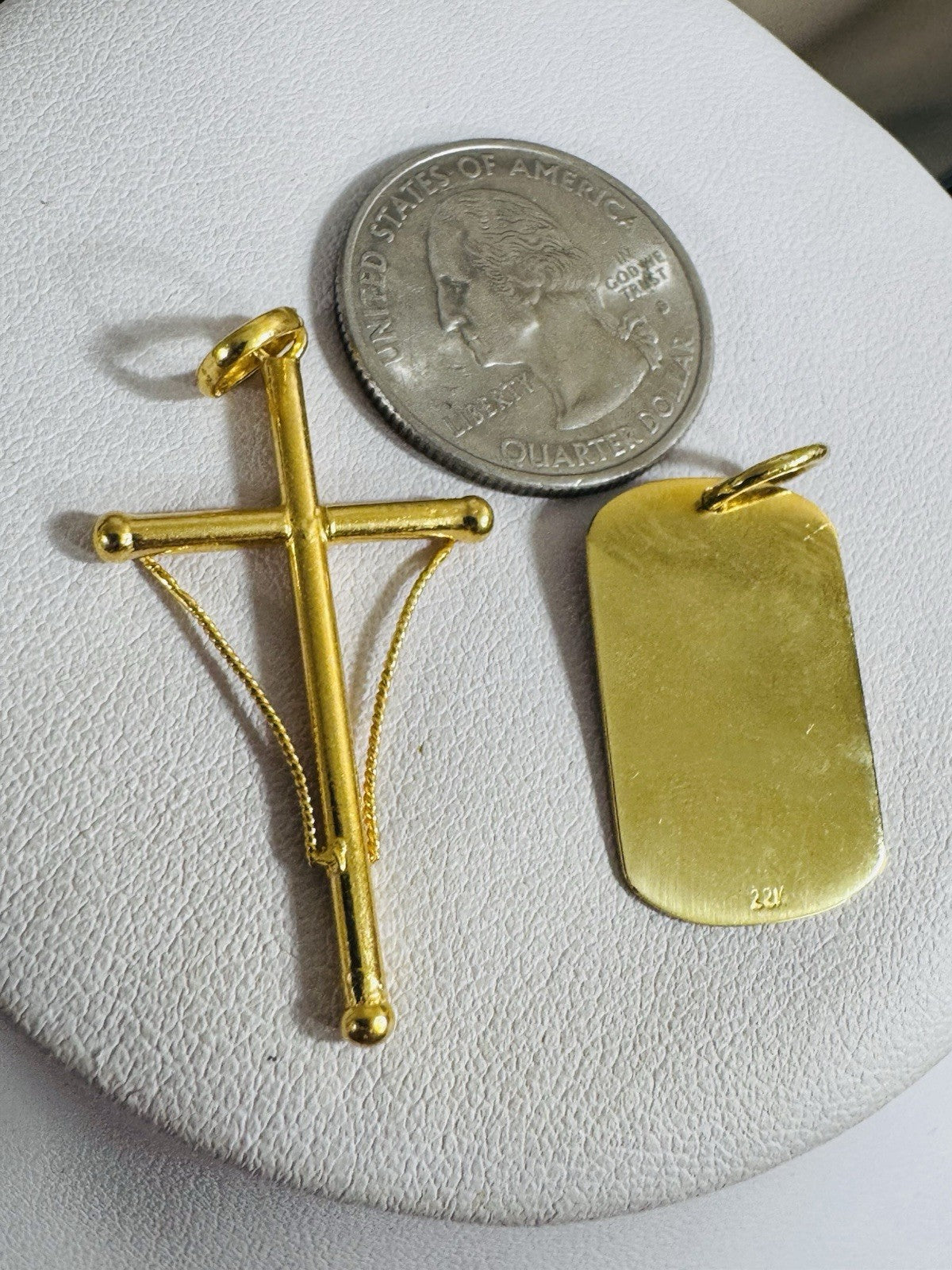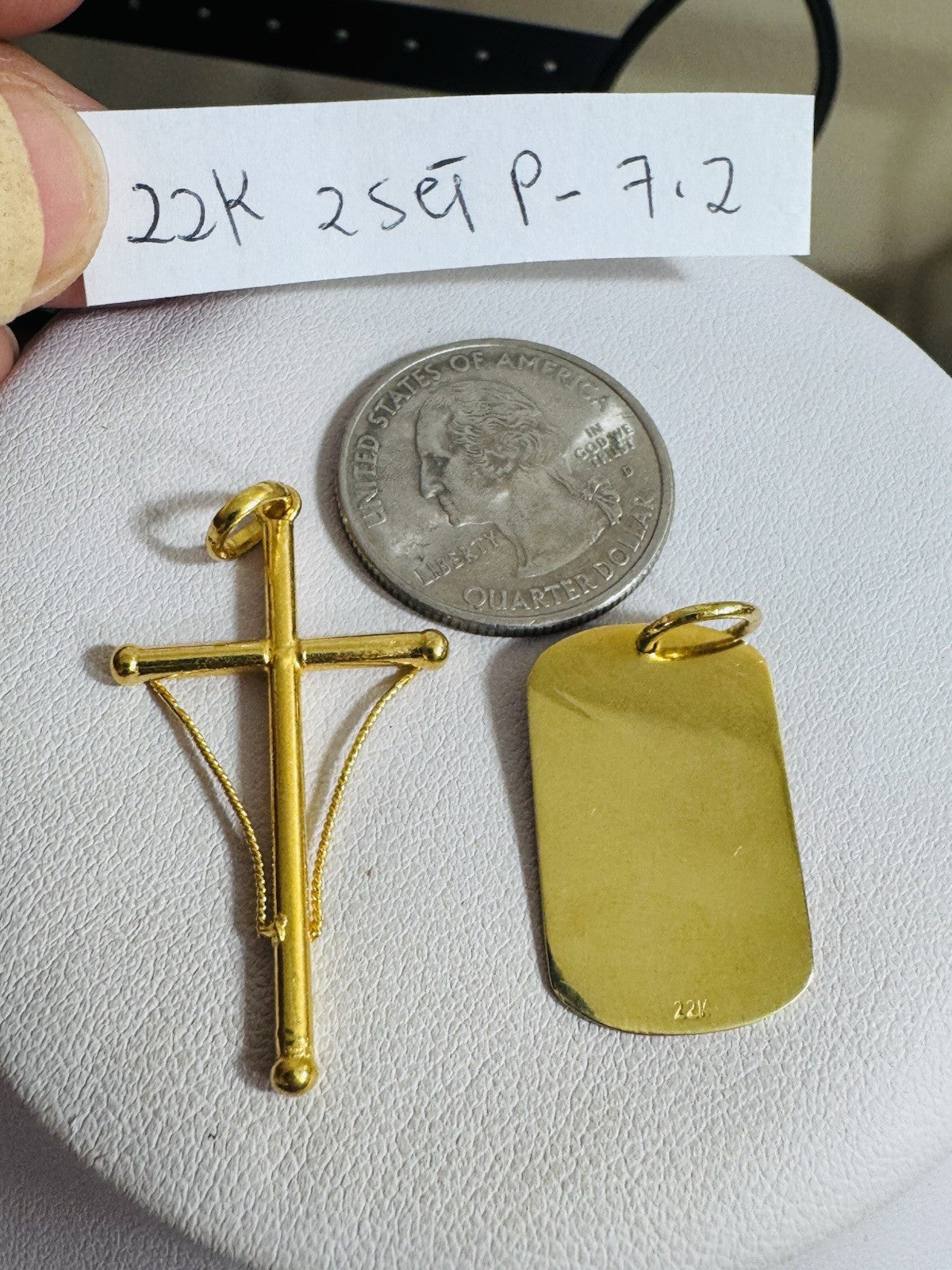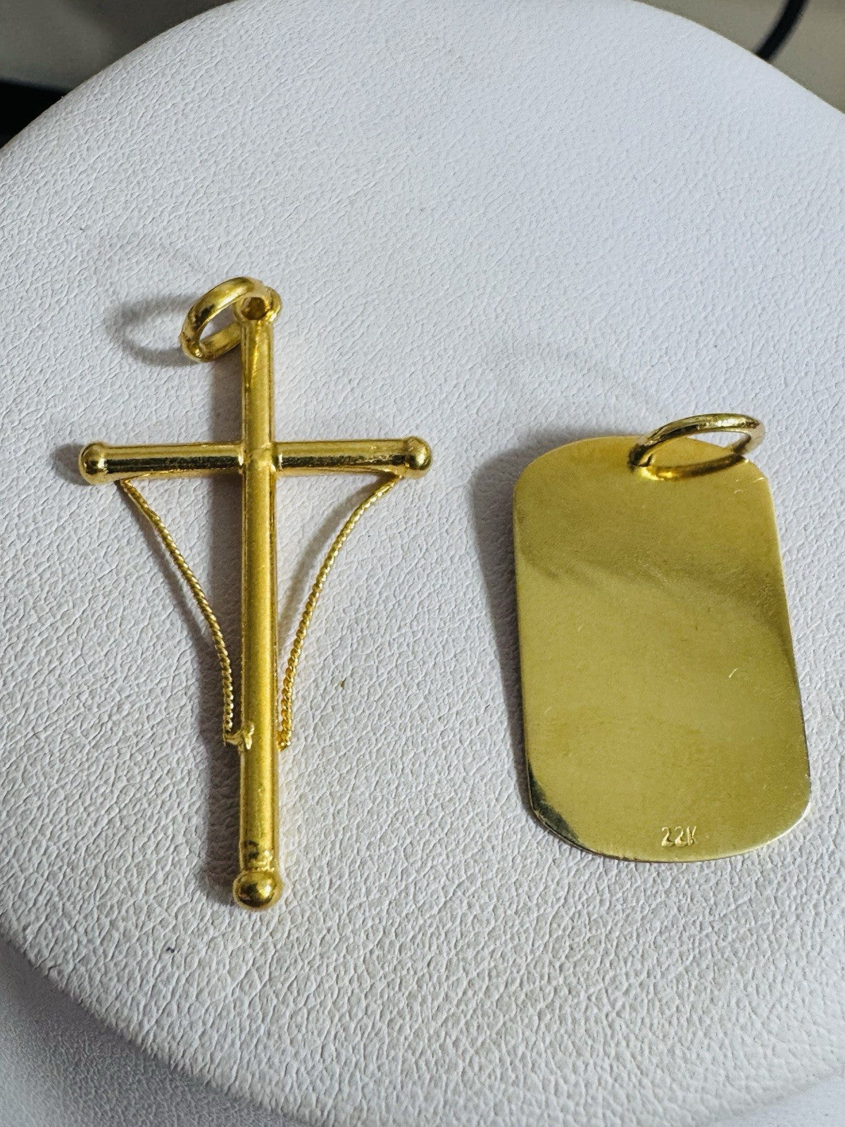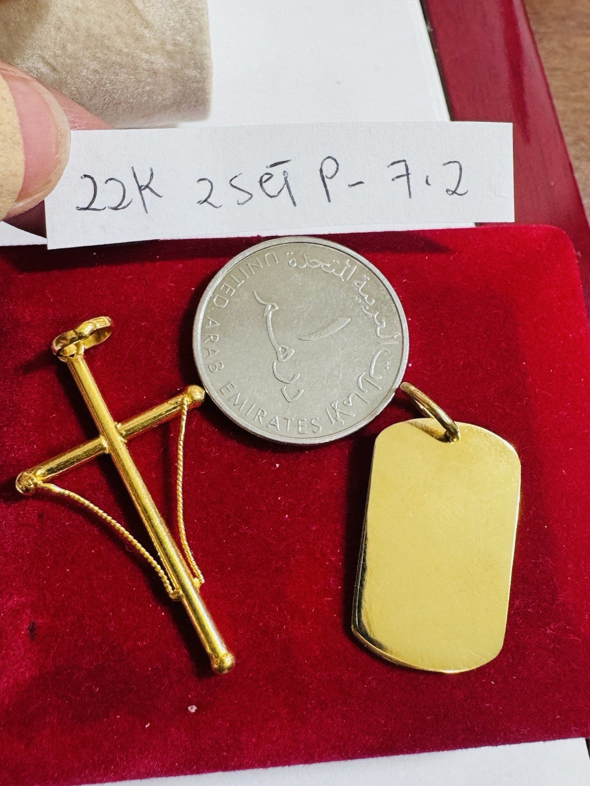 Solid 22K 916 Fine Yellow Real Gold (2) Set of Pendant Cross & Rectangle 7.2g
