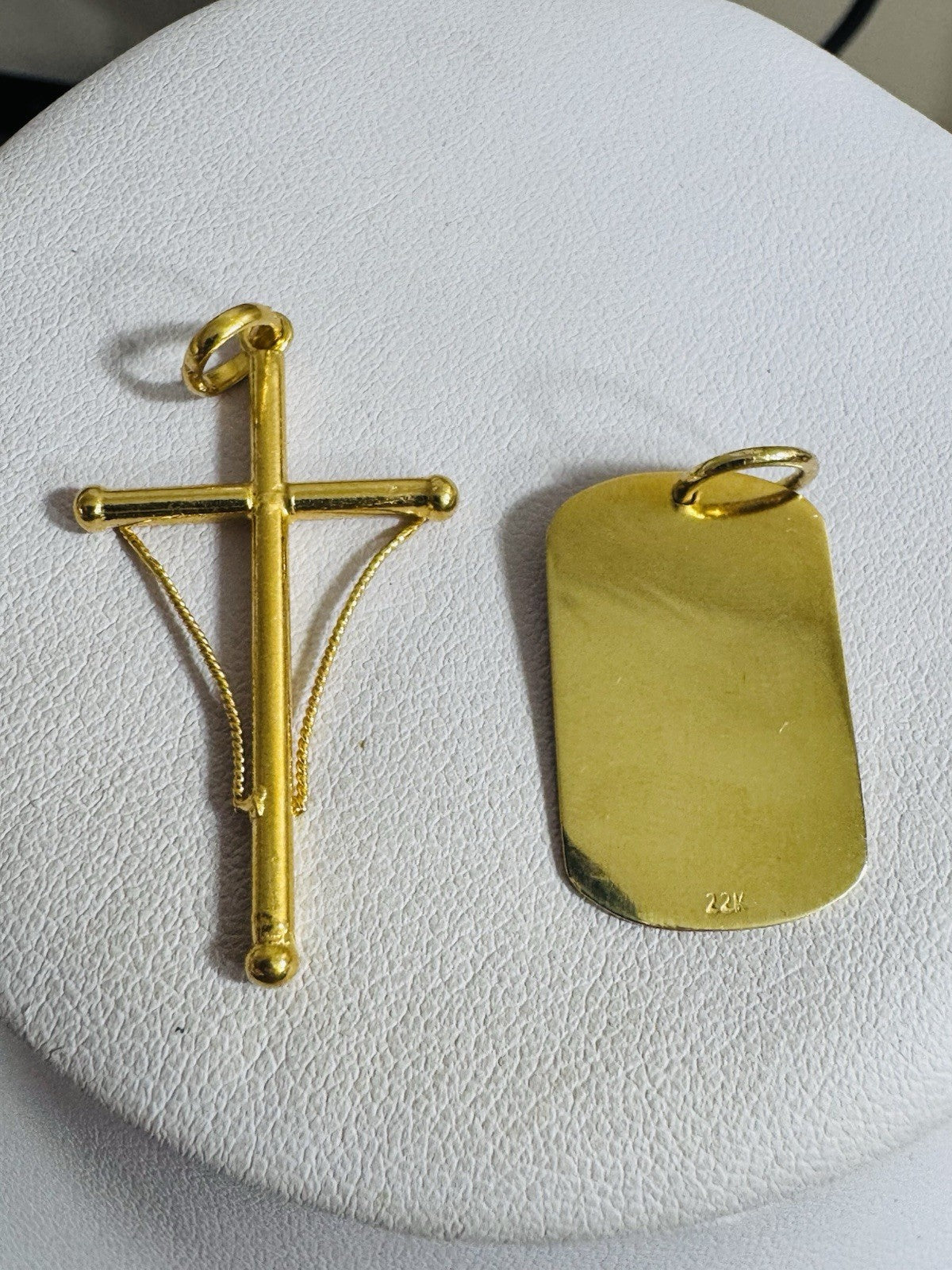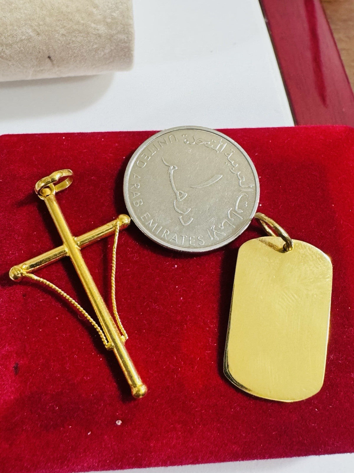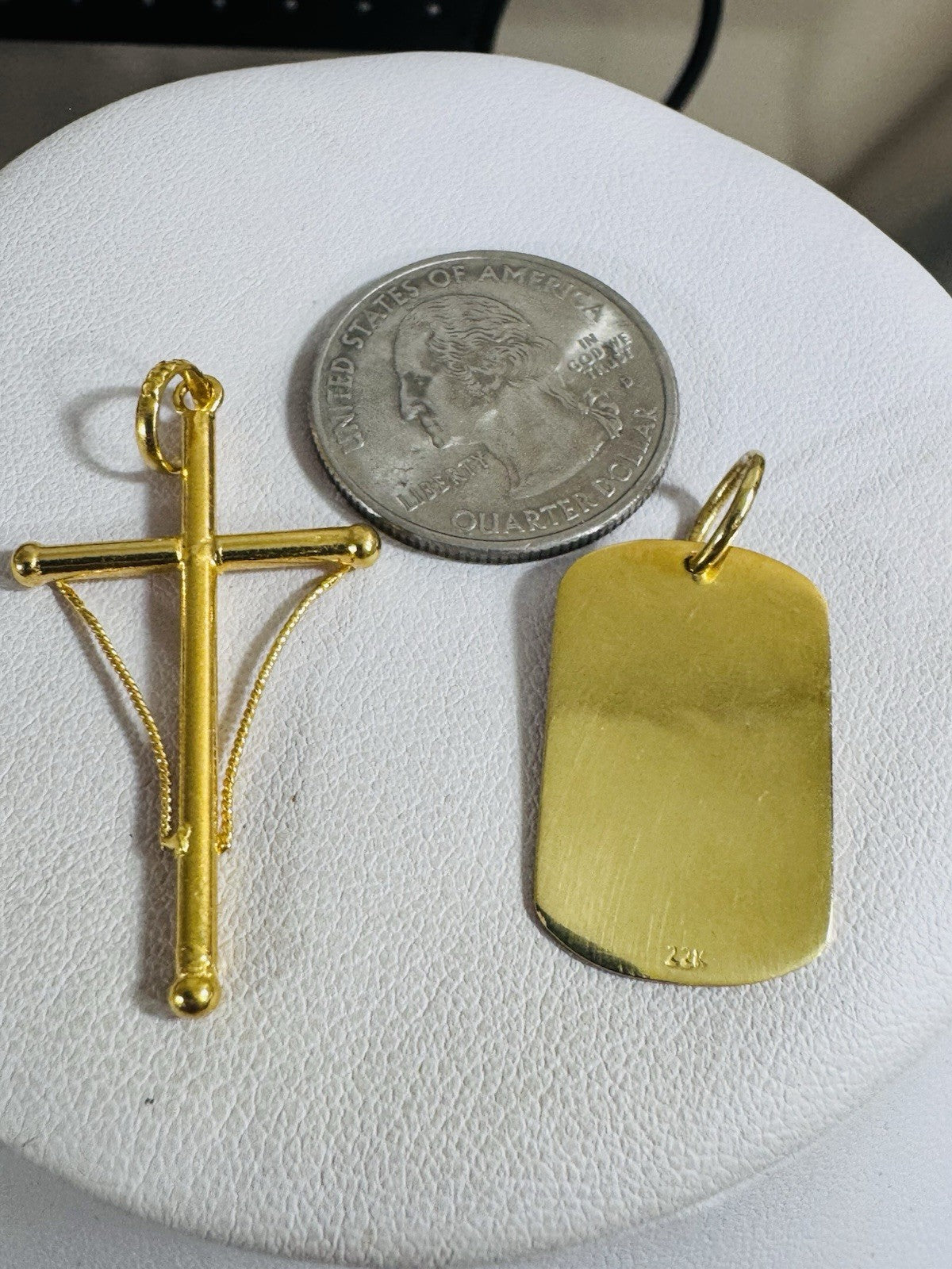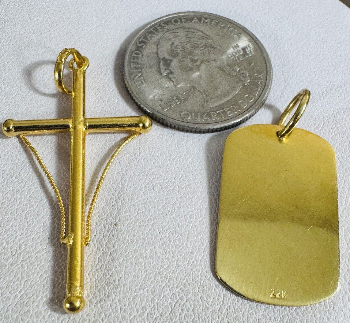 Solid 22K 916 Fine Yellow Real Gold (2) Set of Pendant Cross & Rectangle 7.2g