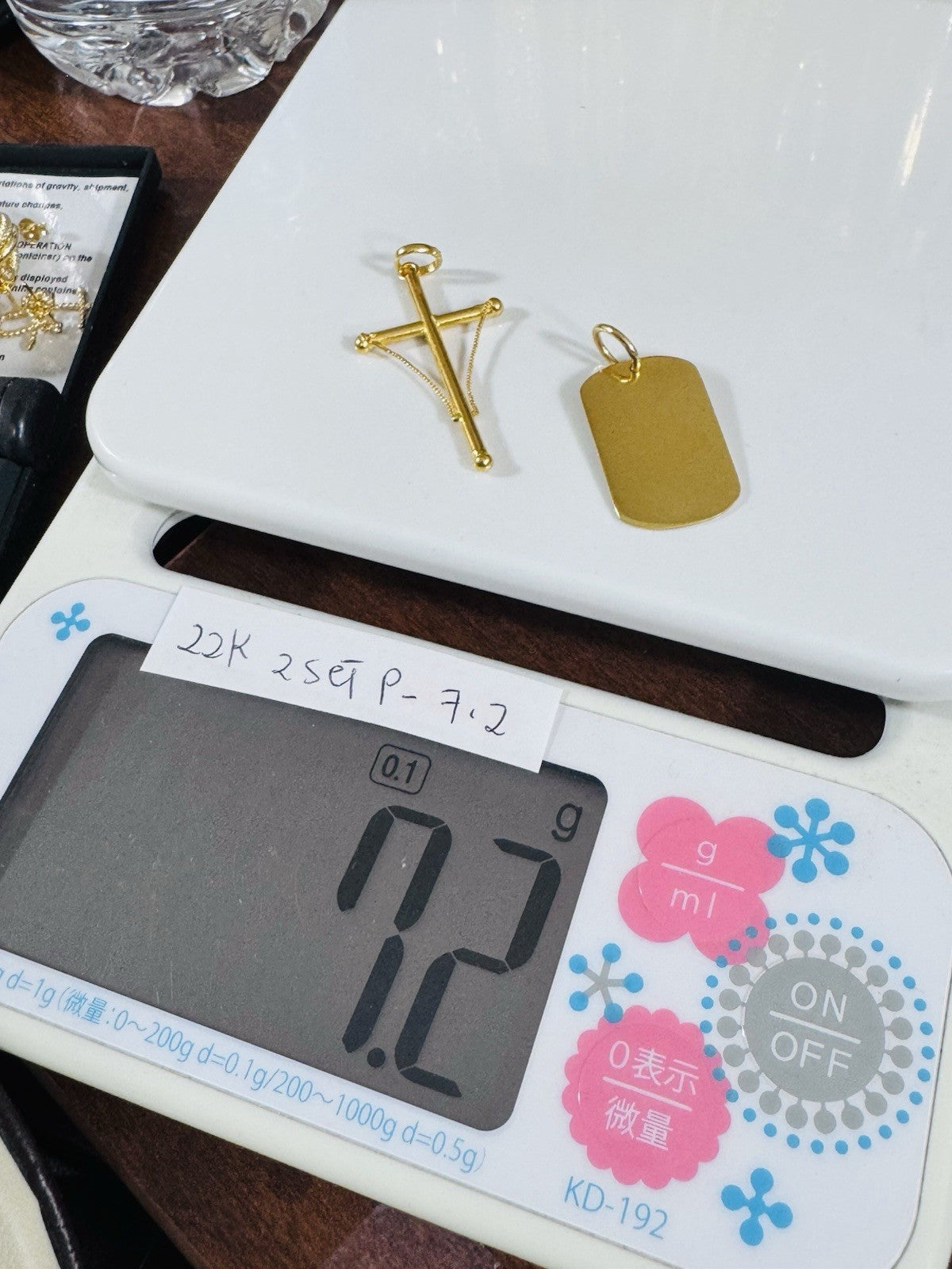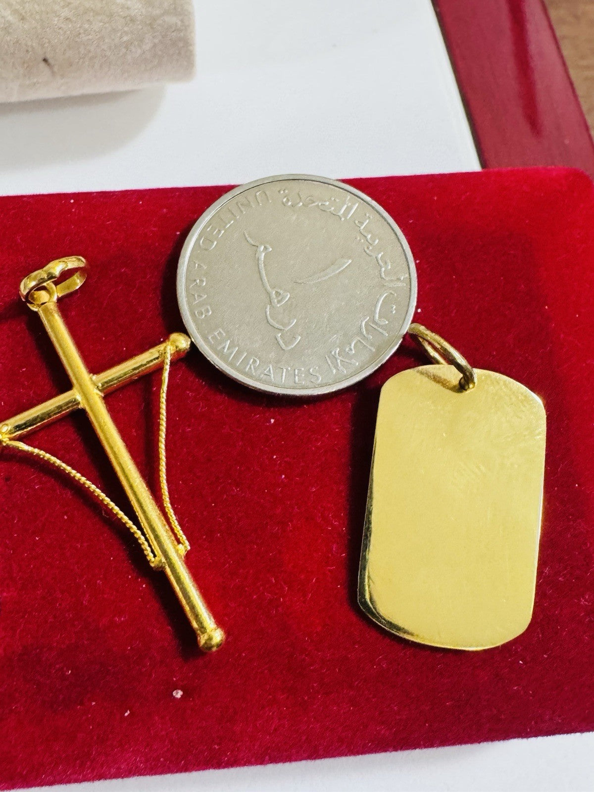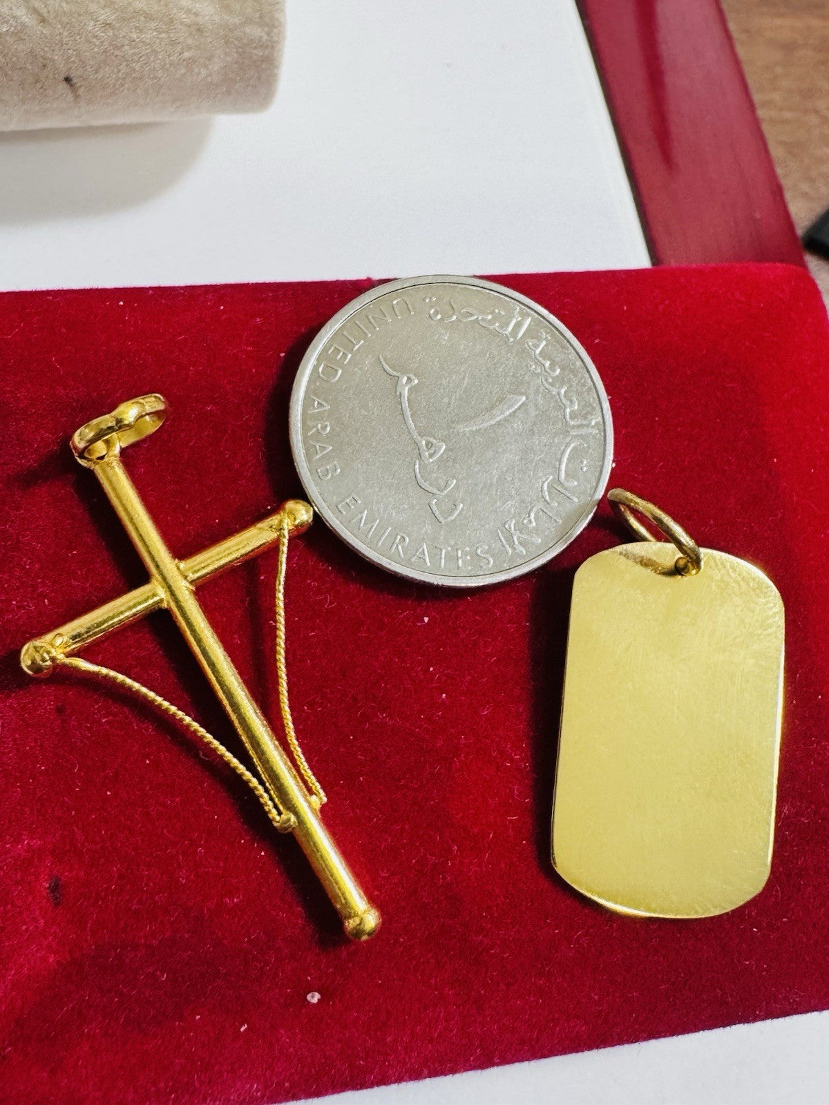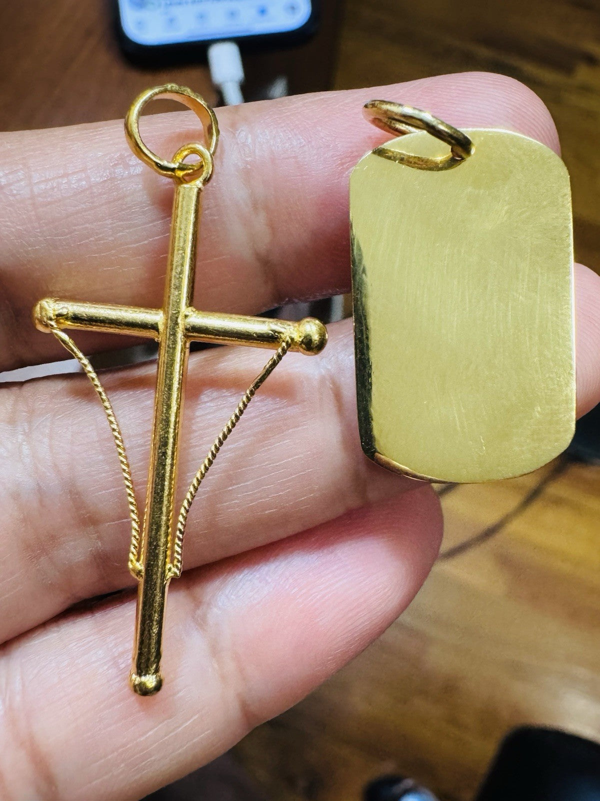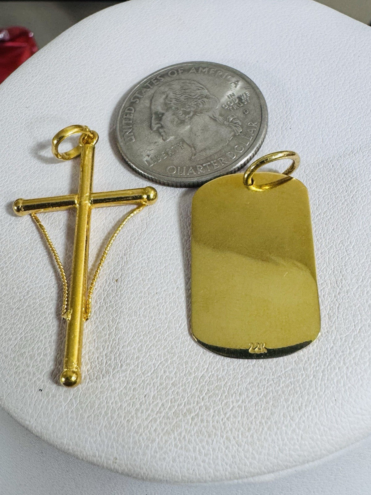 Solid 22K 916 Fine Yellow Real Gold (2) Set of Pendant Cross & Rectangle 7.2g