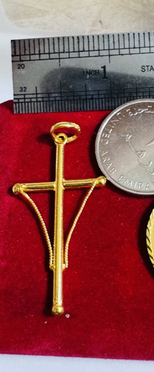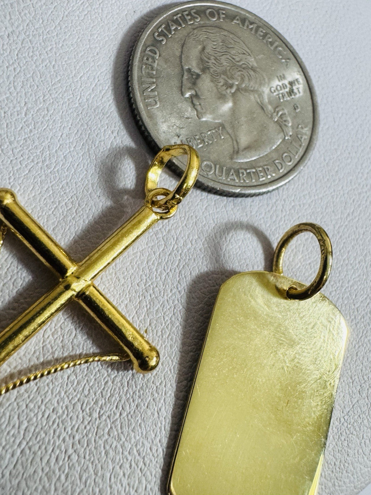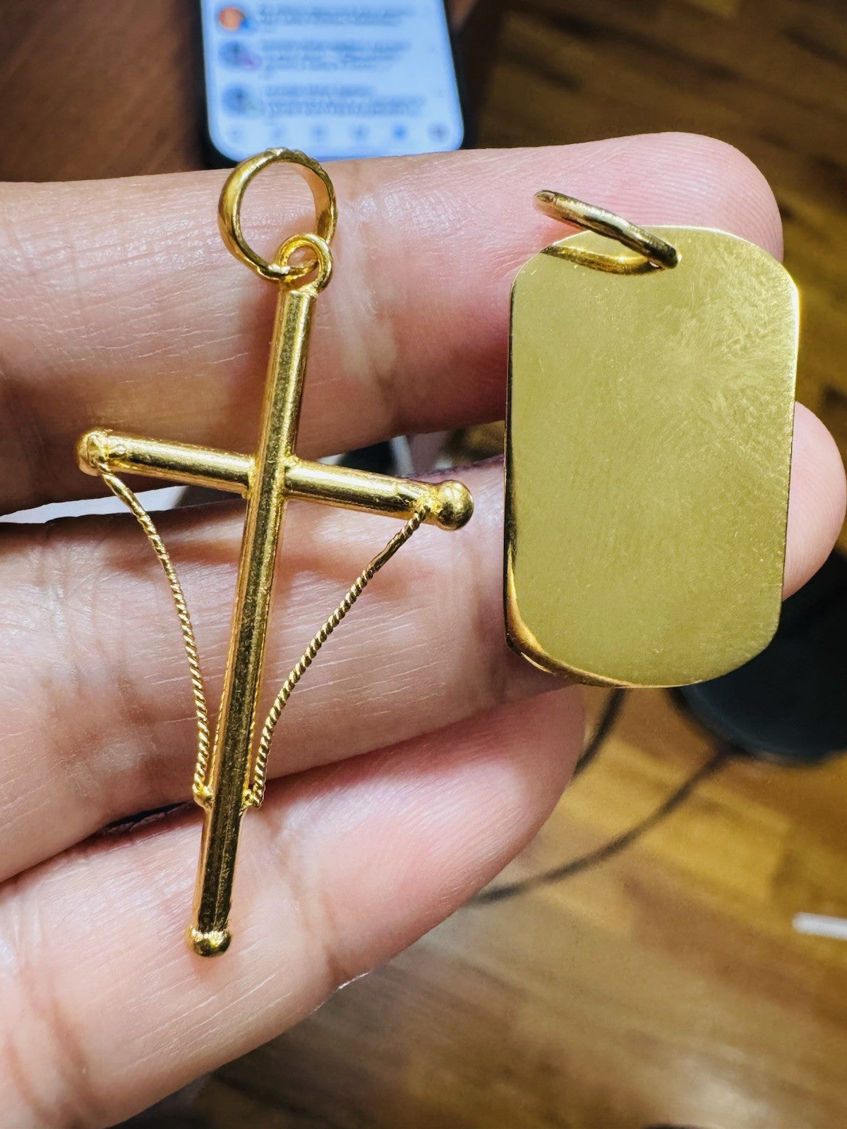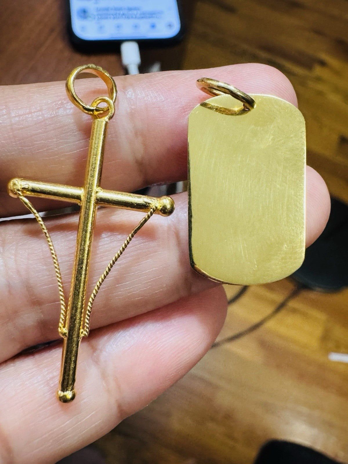 Solid 22K 916 Fine Yellow Real Gold (2) Set of Pendant Cross & Rectangle 7.2g