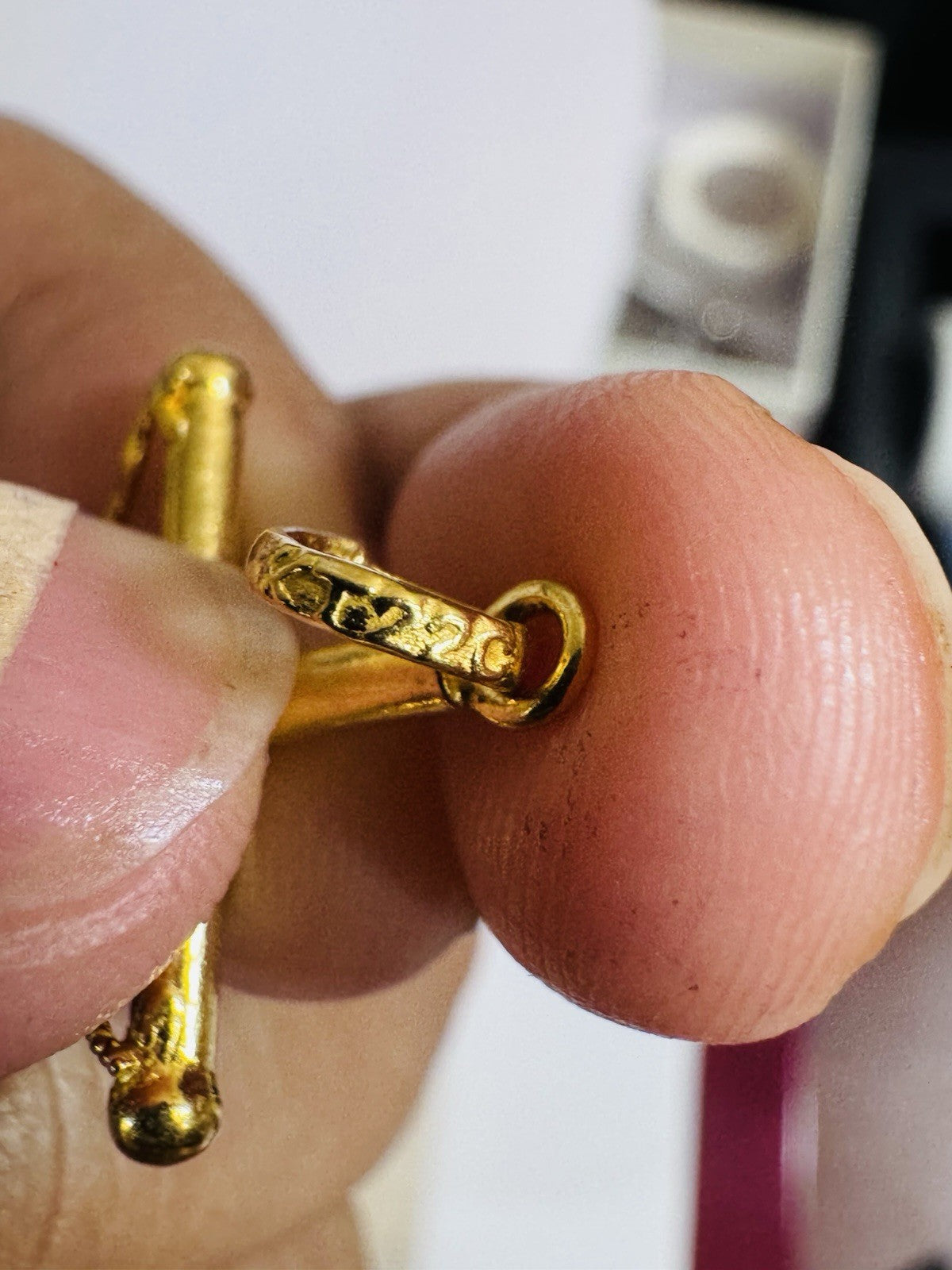 *100% 22C gold "916” equivalent, Mark stamp and tested Saudi gold, Good weight good size and strong enough to hold.