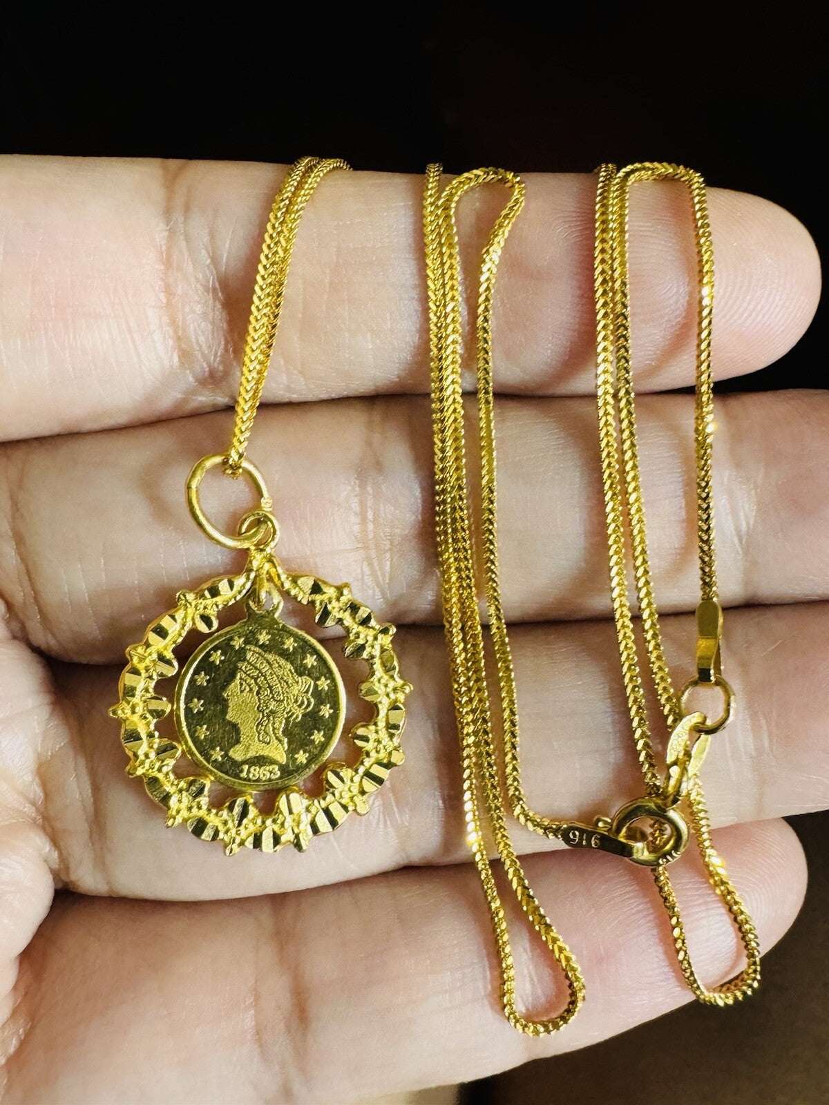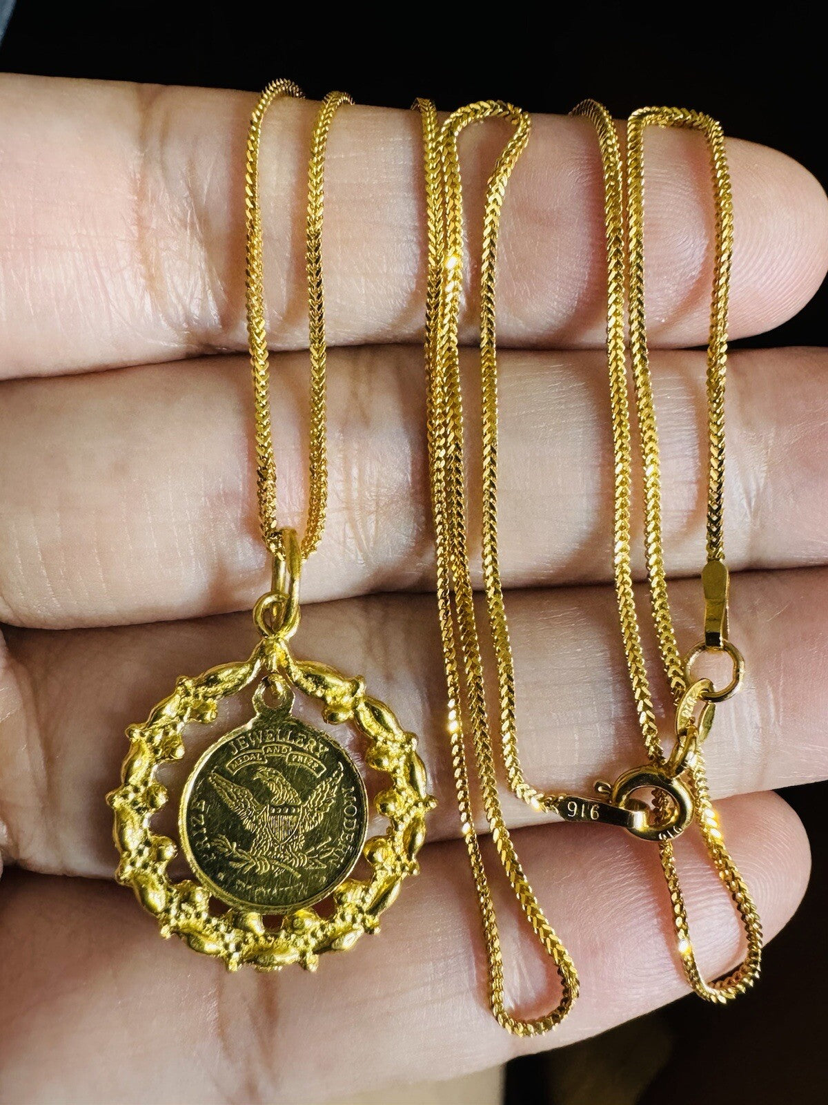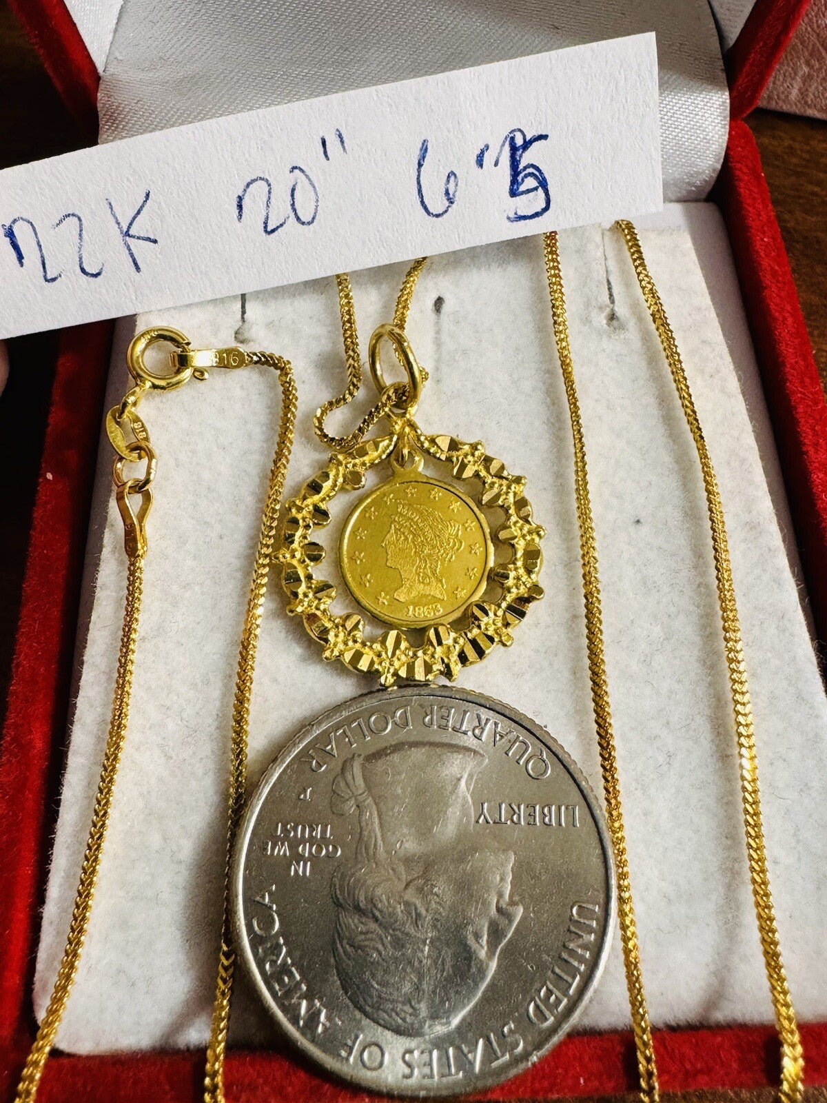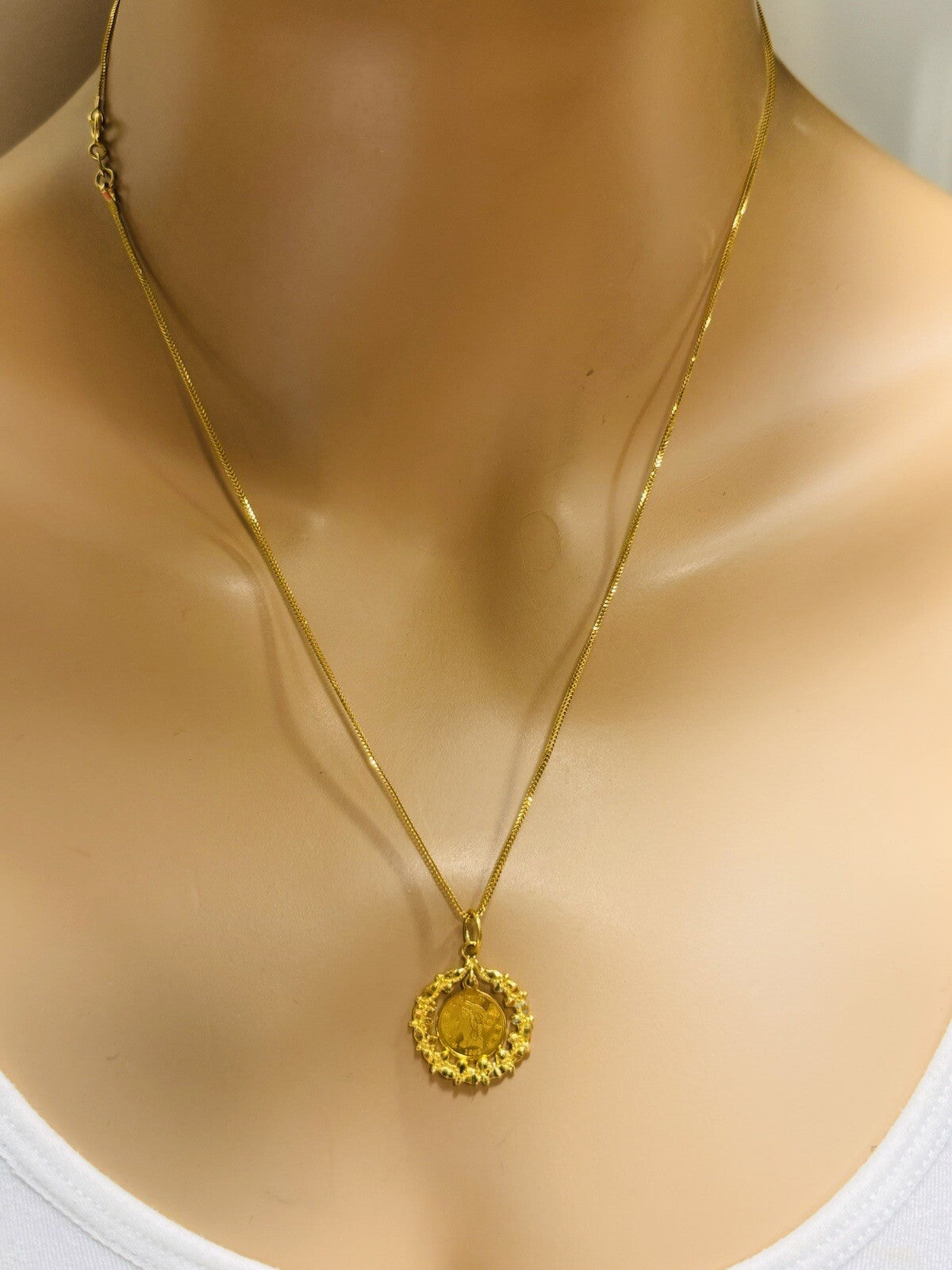 Solid 22K 916 Fine Yellow Real Gold 20” Coin Necklace 6.5g Women’s