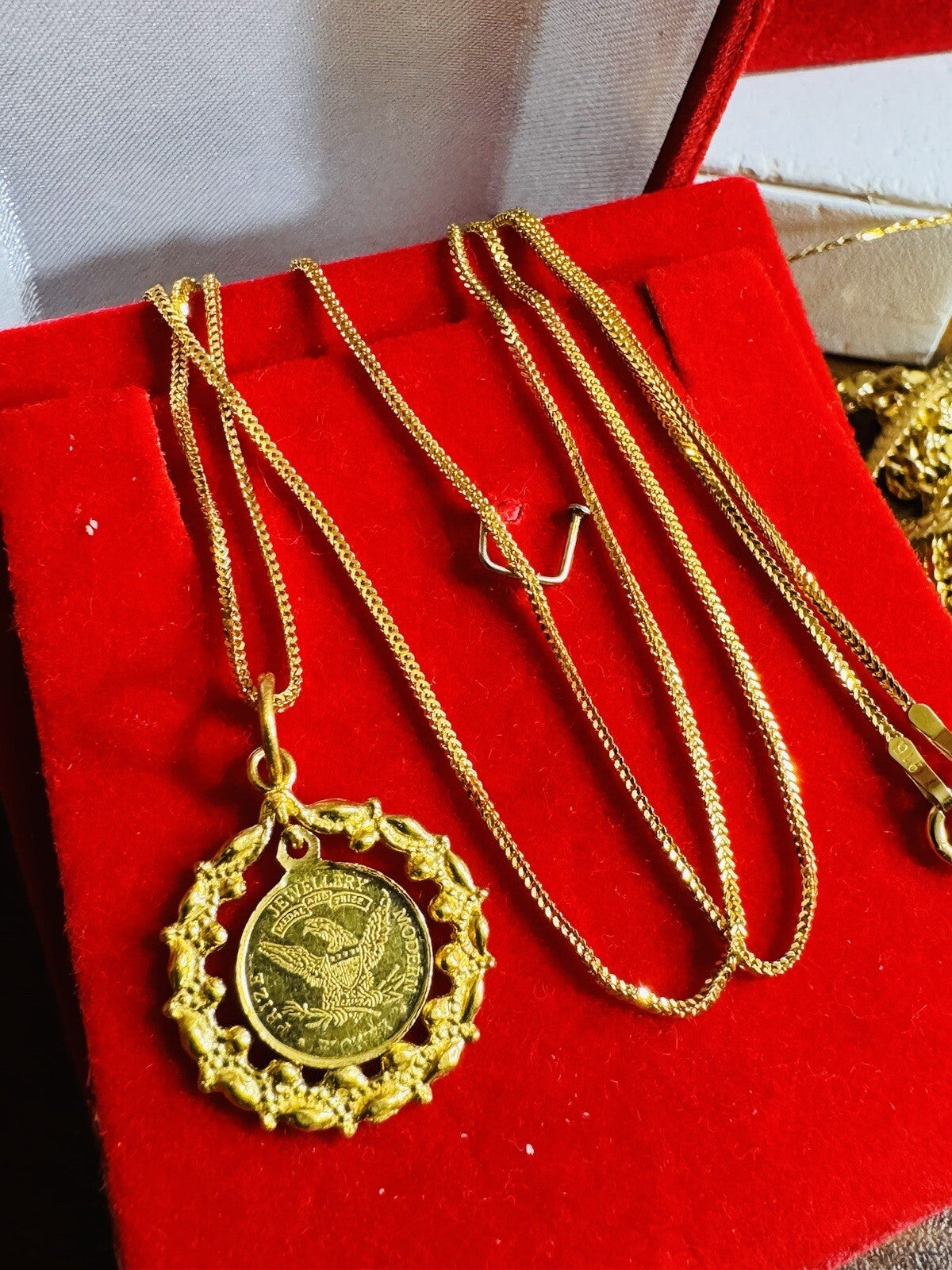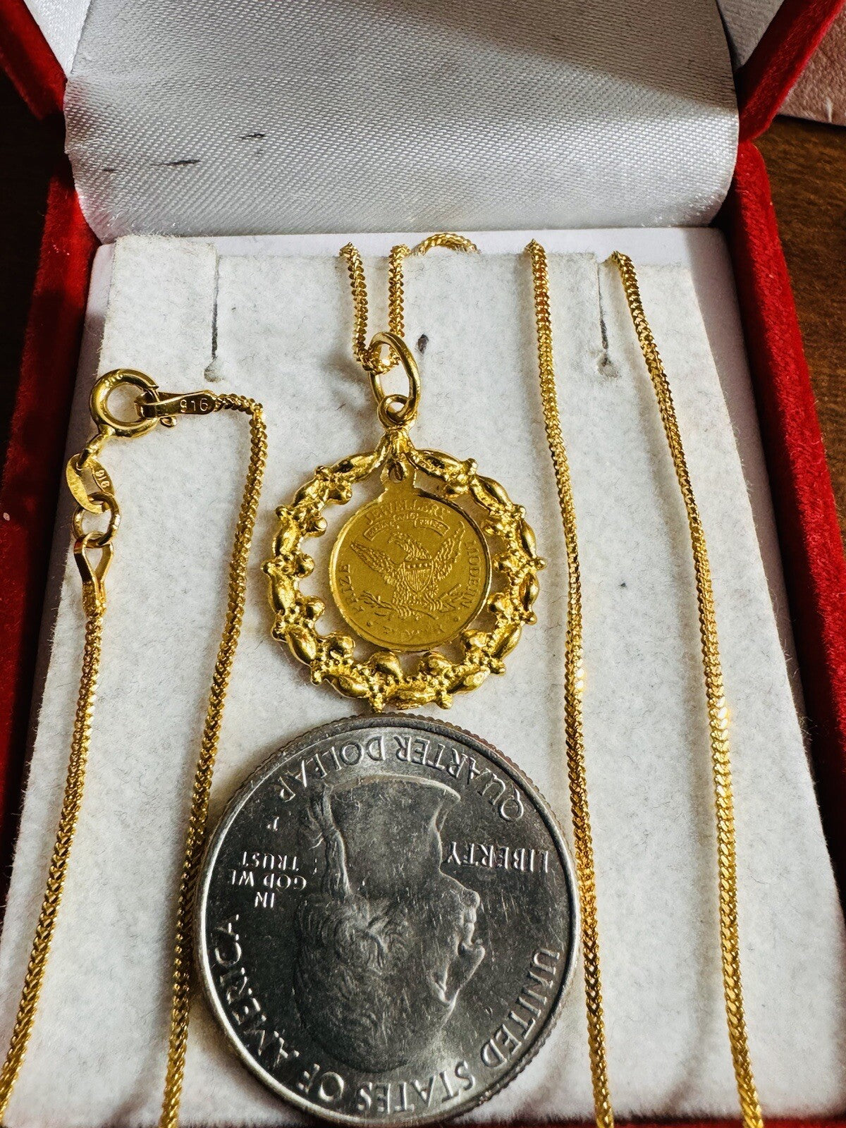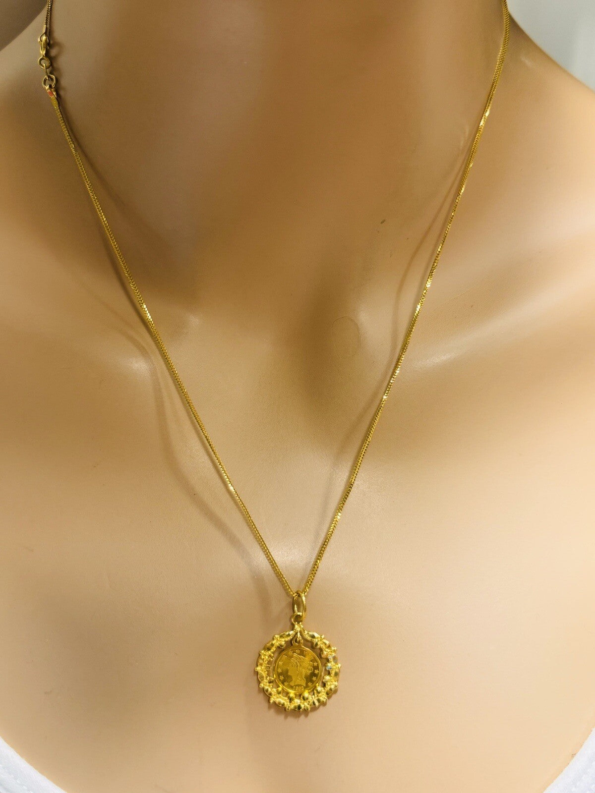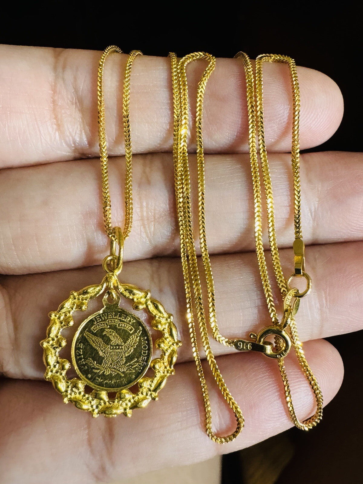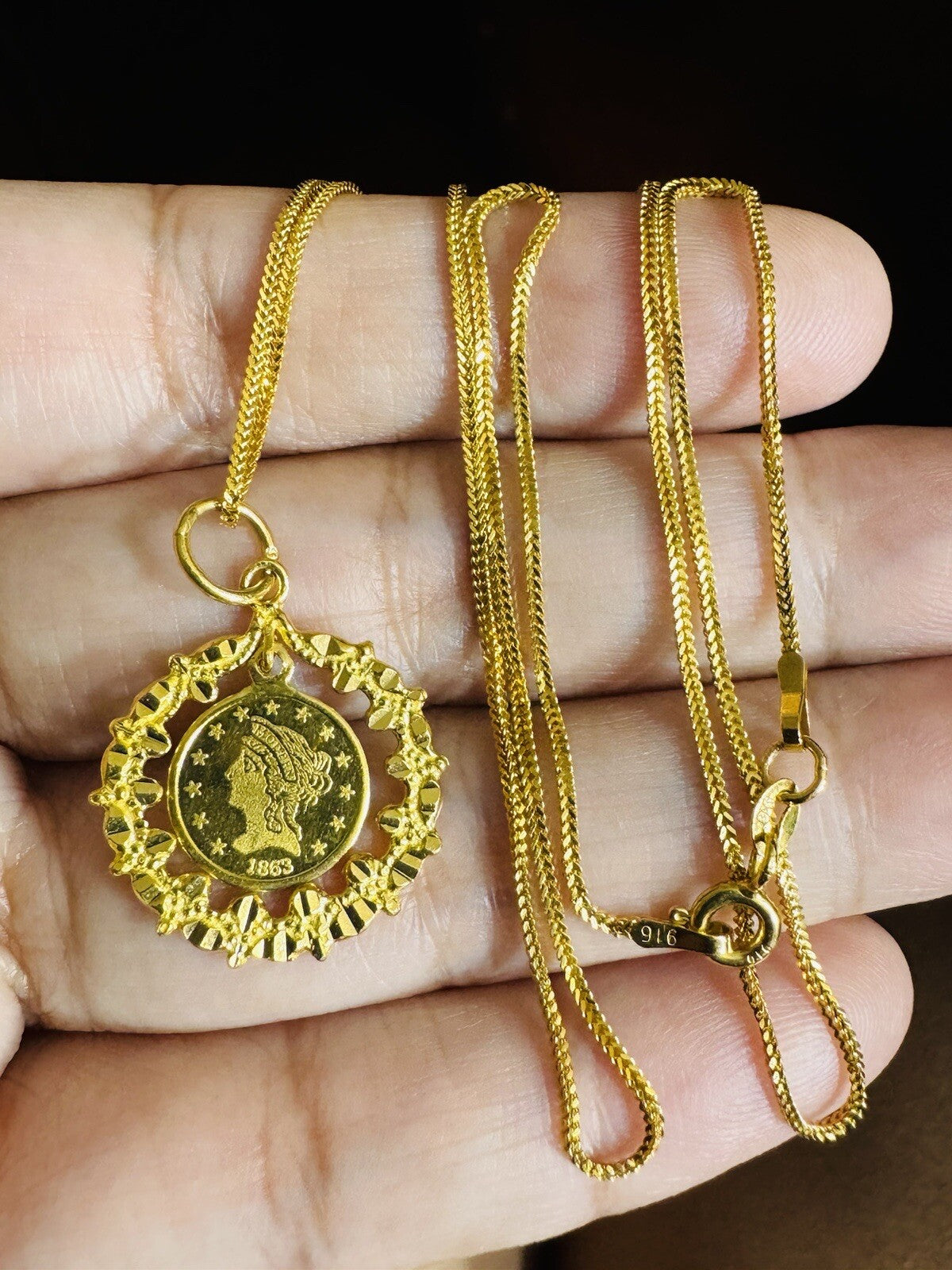 Solid 22K 916 Fine Yellow Real Gold 20” Coin Necklace 6.5g Women’s