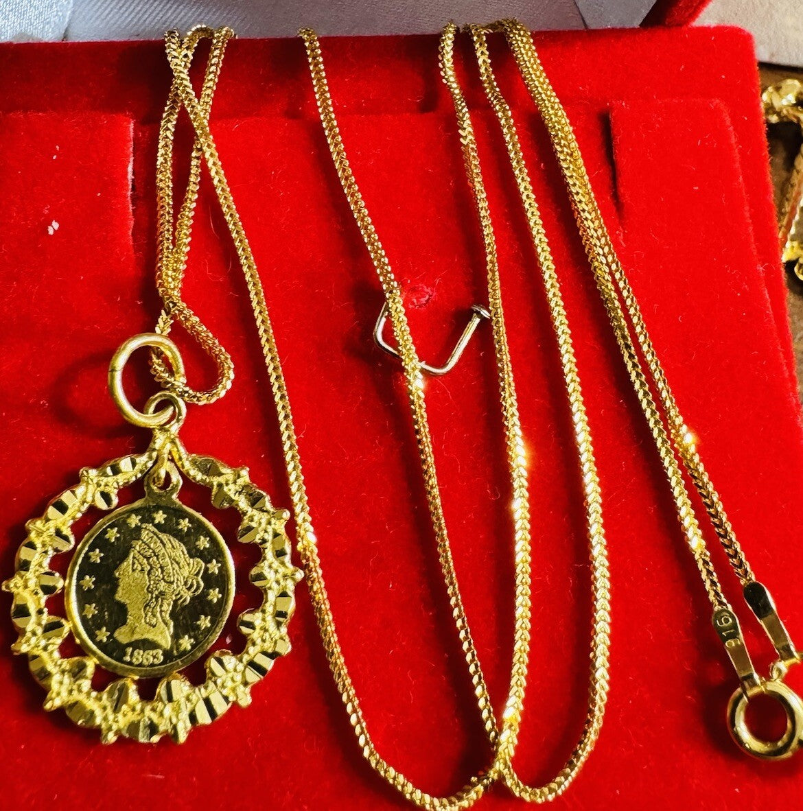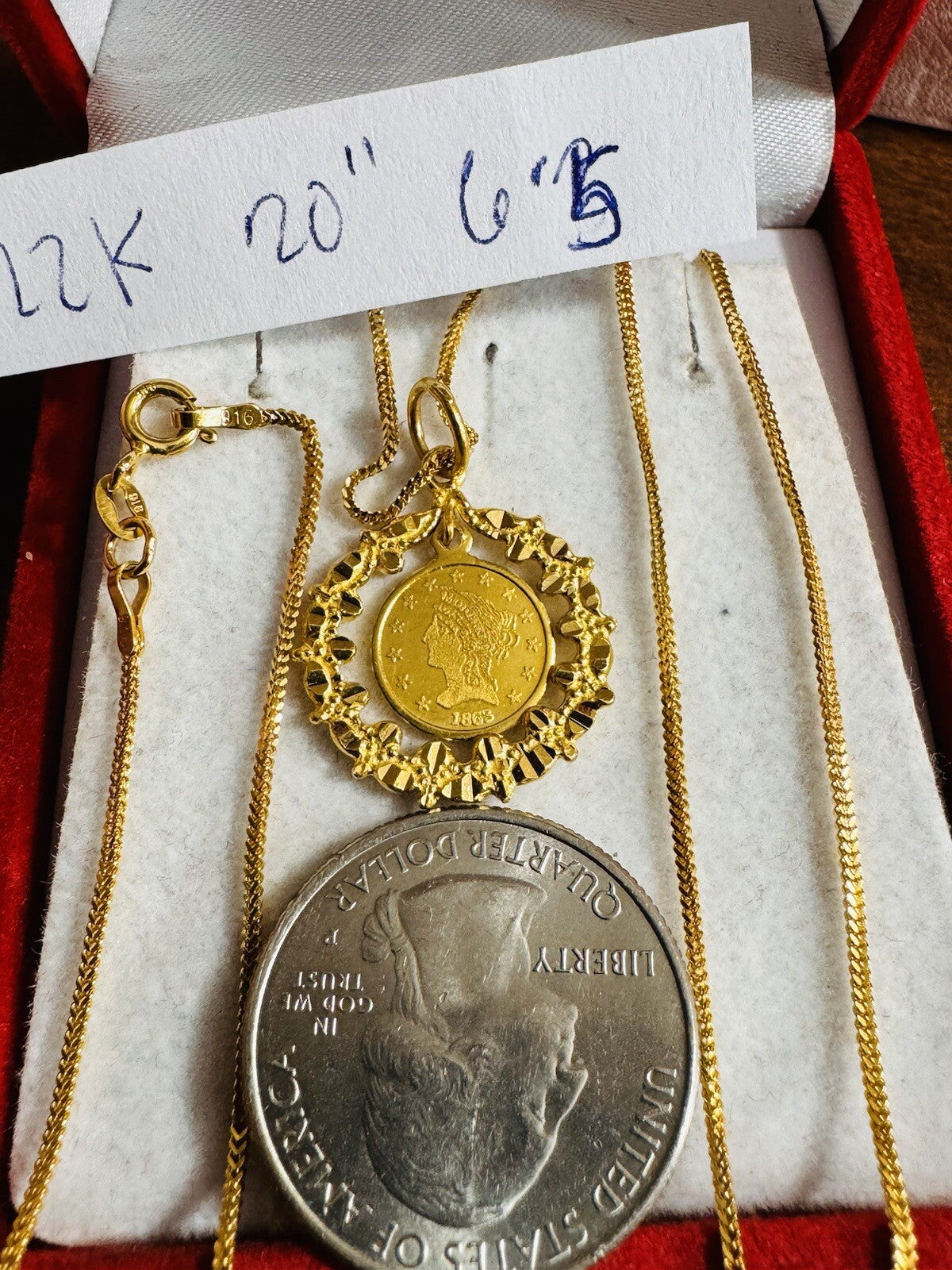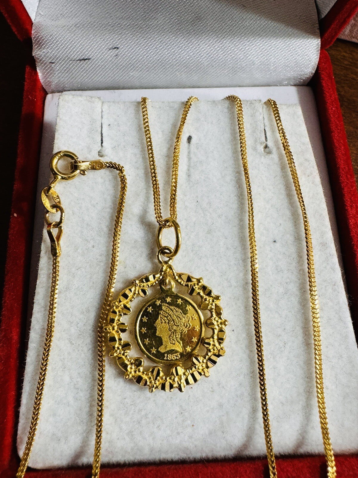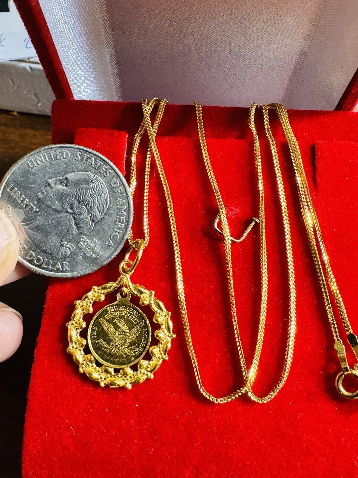 Solid 22K 916 Fine Yellow Real Gold 20” Coin Necklace 6.5g Women’s