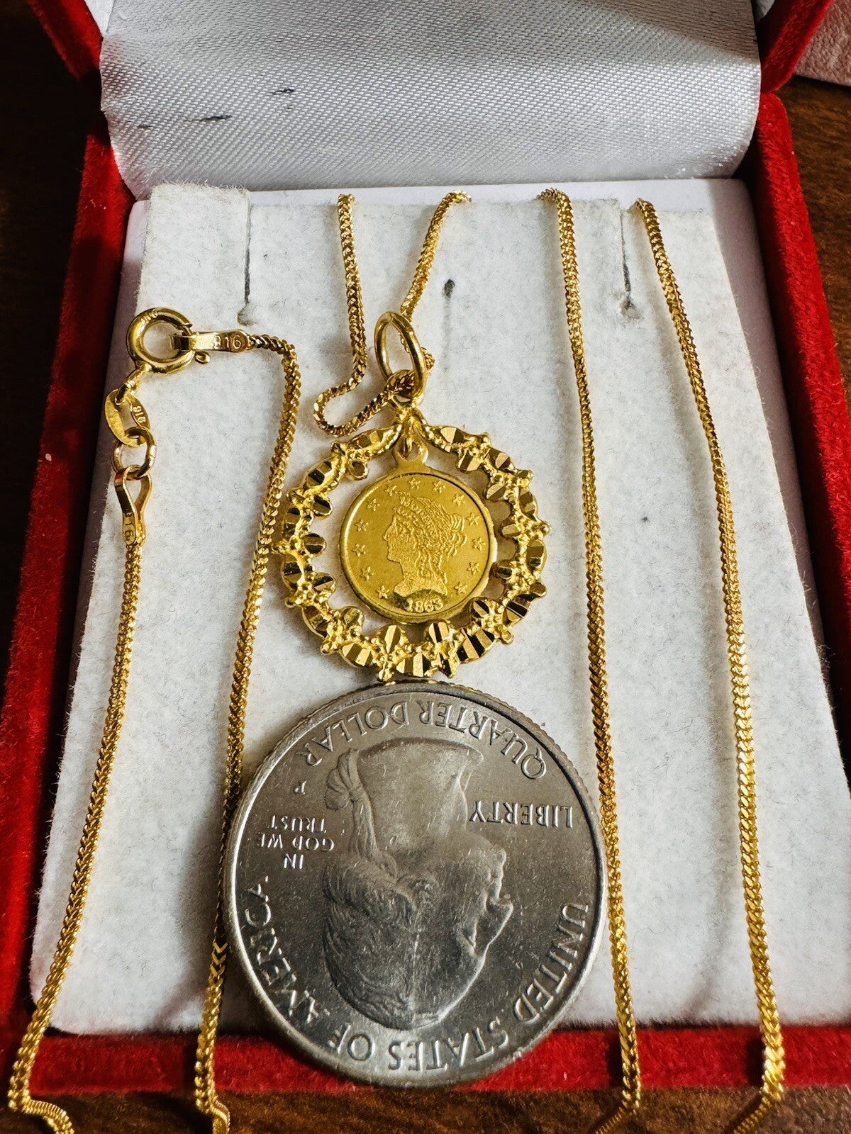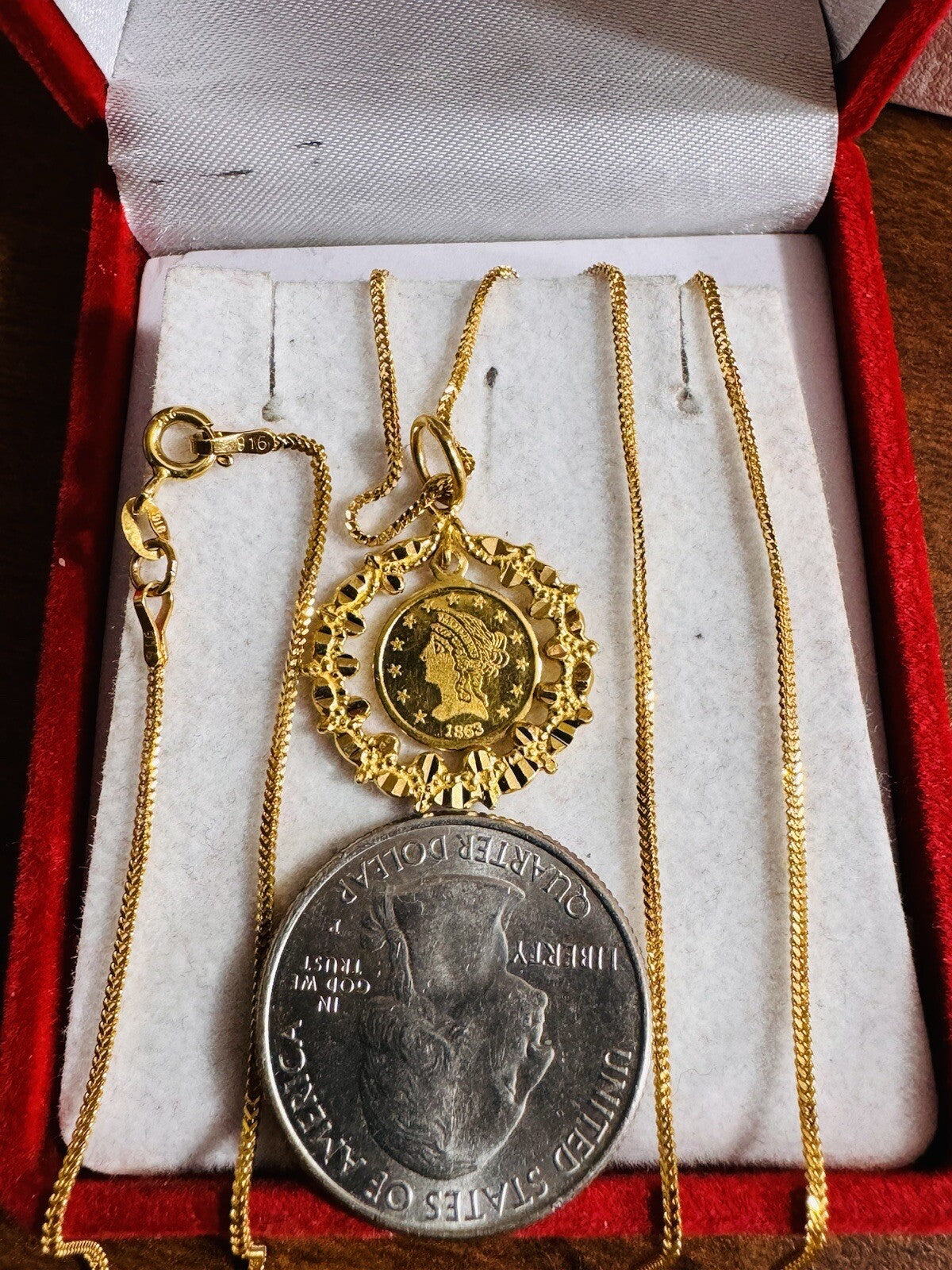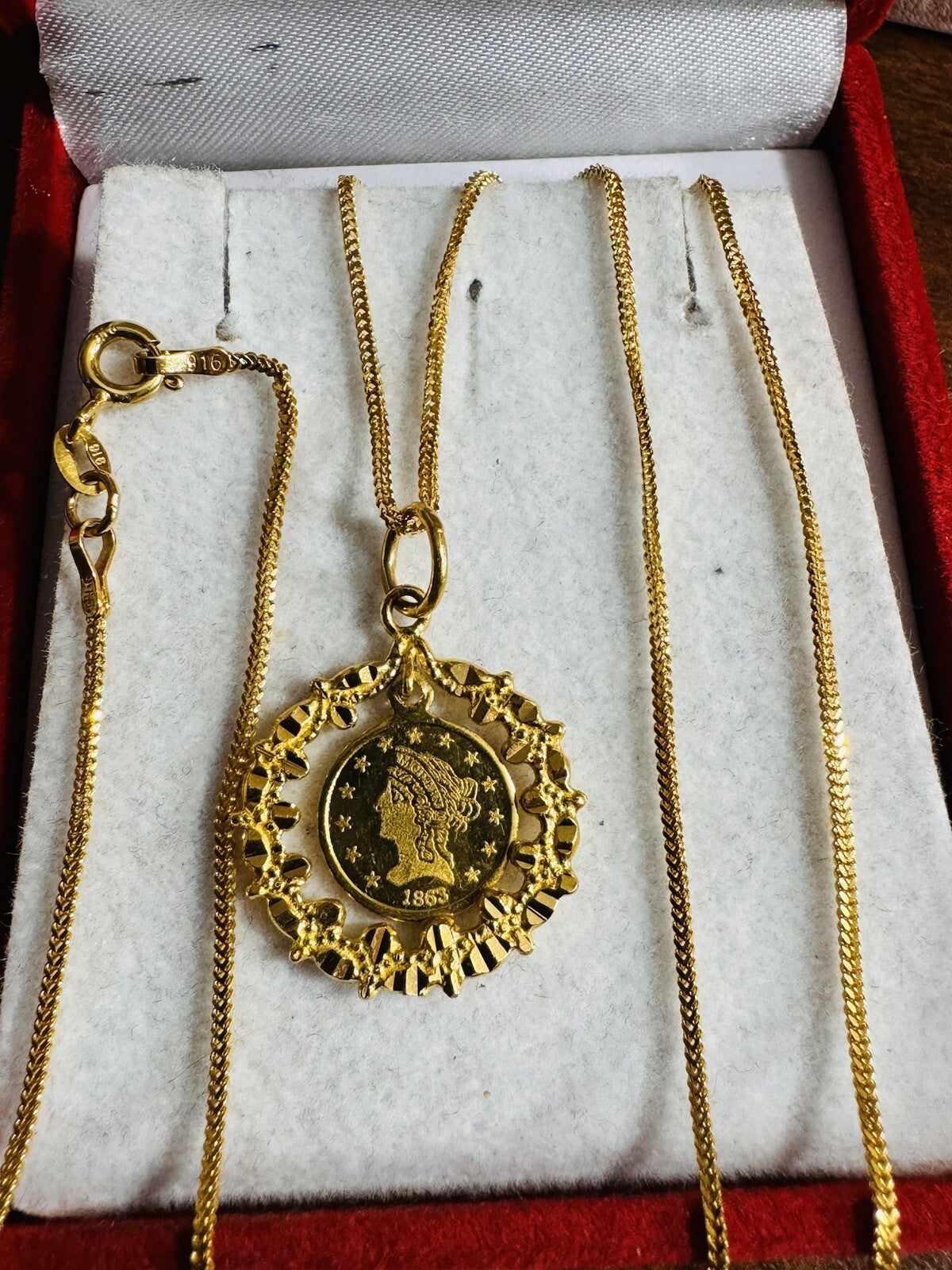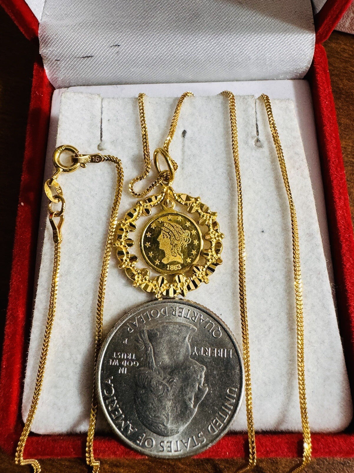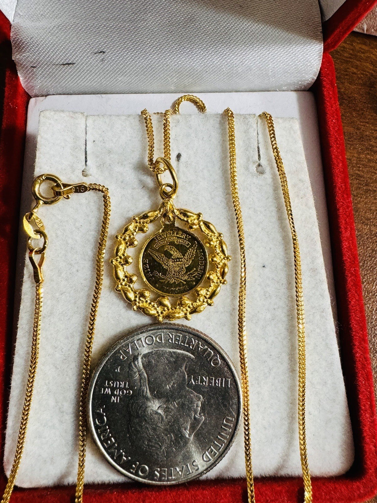 Solid 22K 916 Fine Yellow Real Gold 20” Coin Necklace 6.5g Women’s