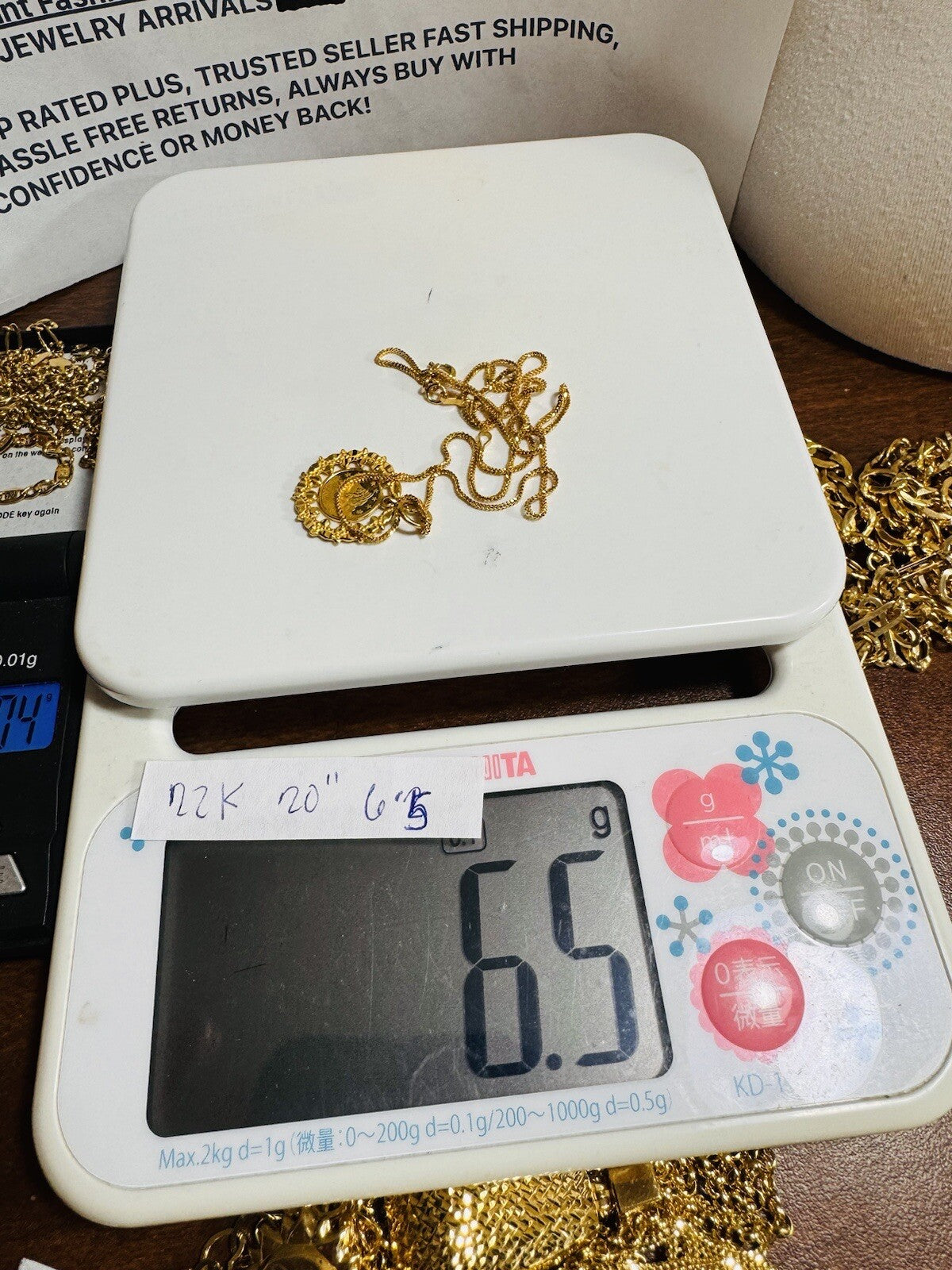 Solid 22K 916 Fine Yellow Real Gold 20” Long Women’s size Set Necklace 6.5g 1.2mm wide chain.