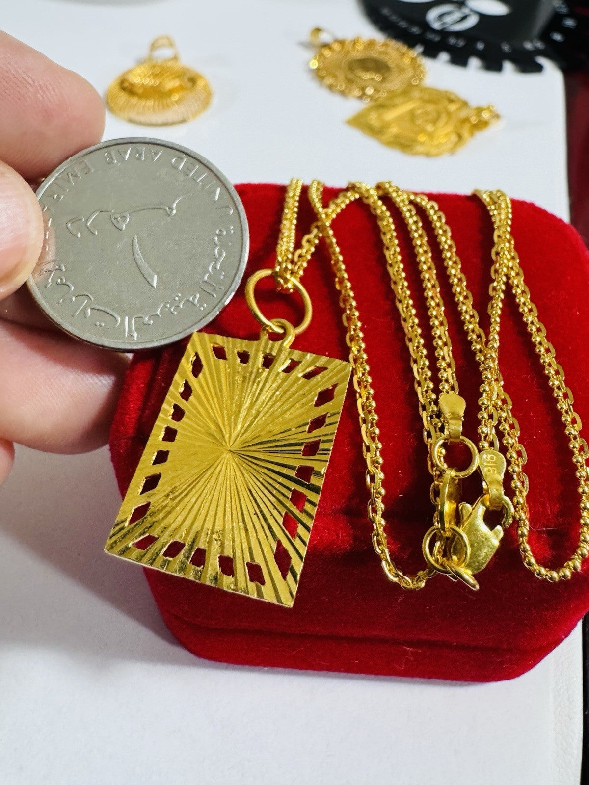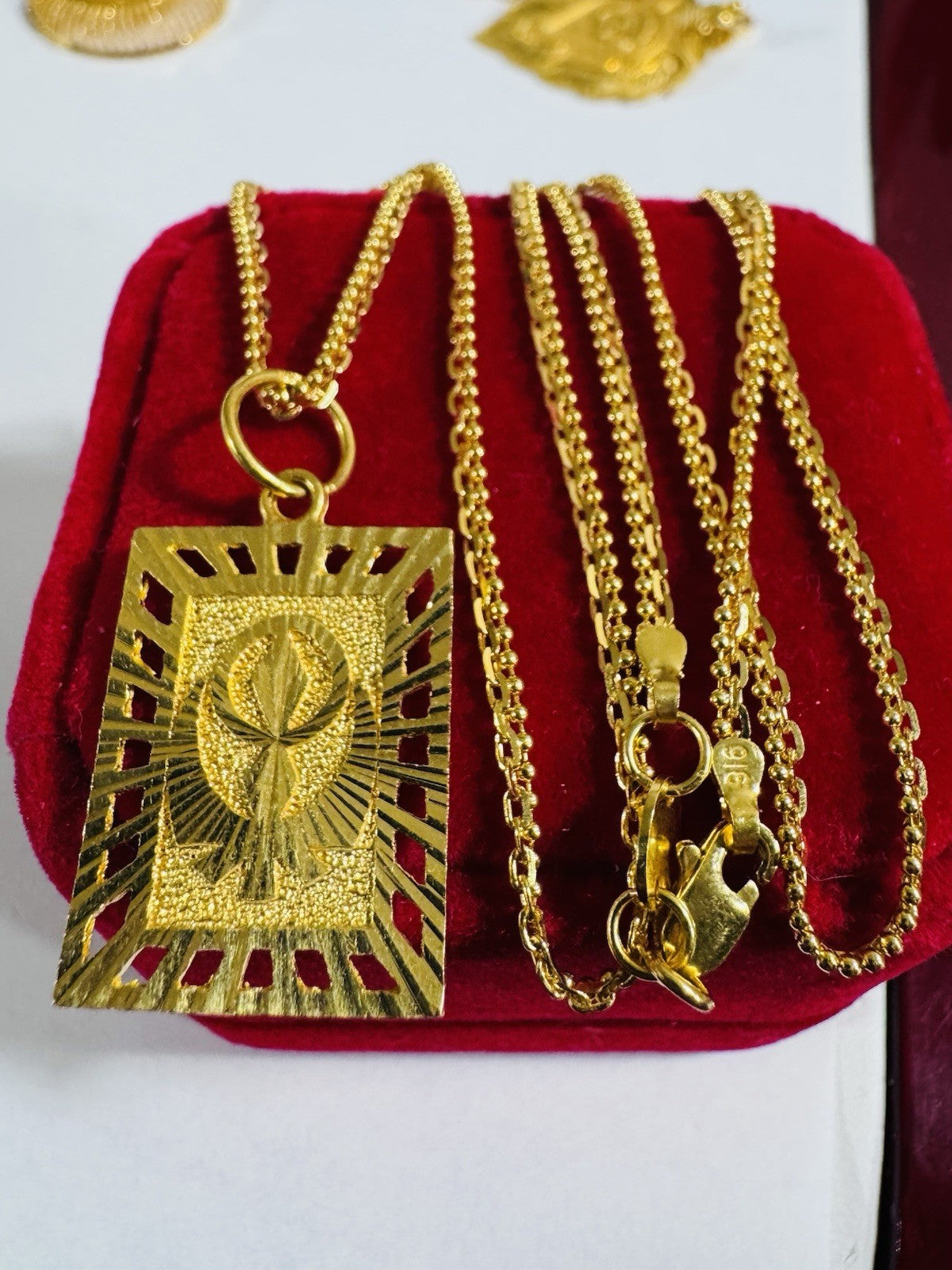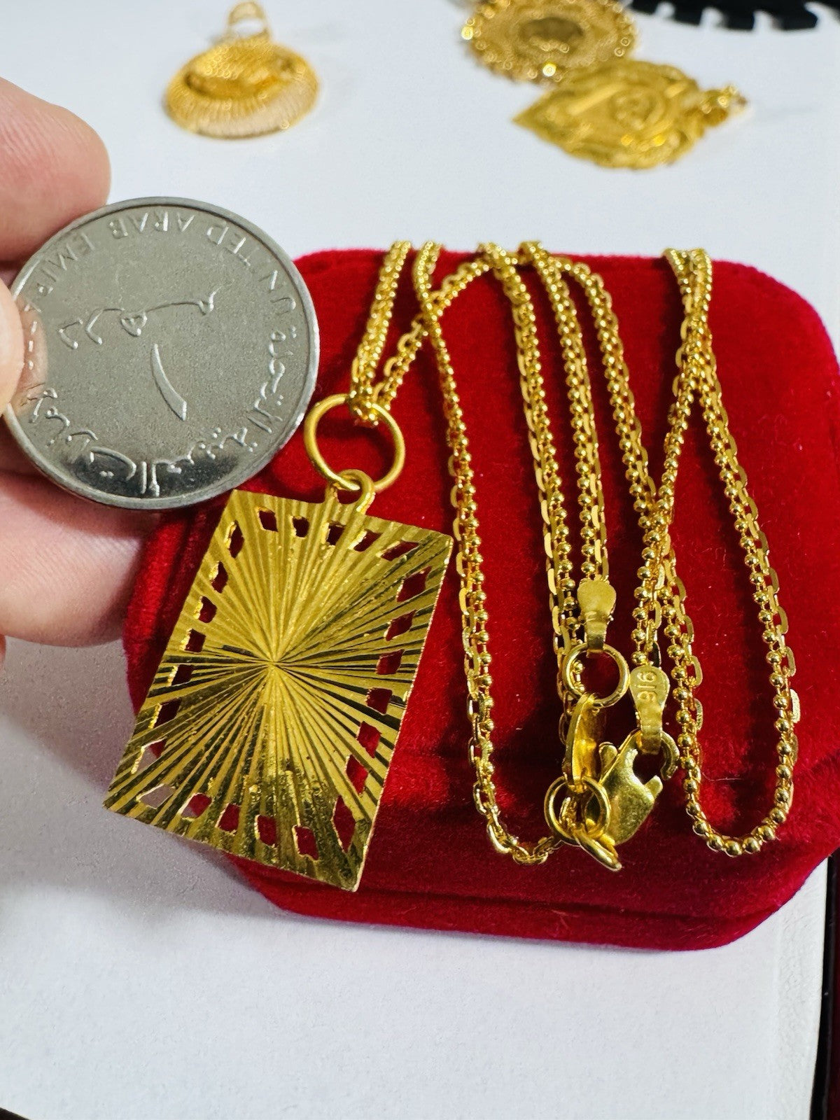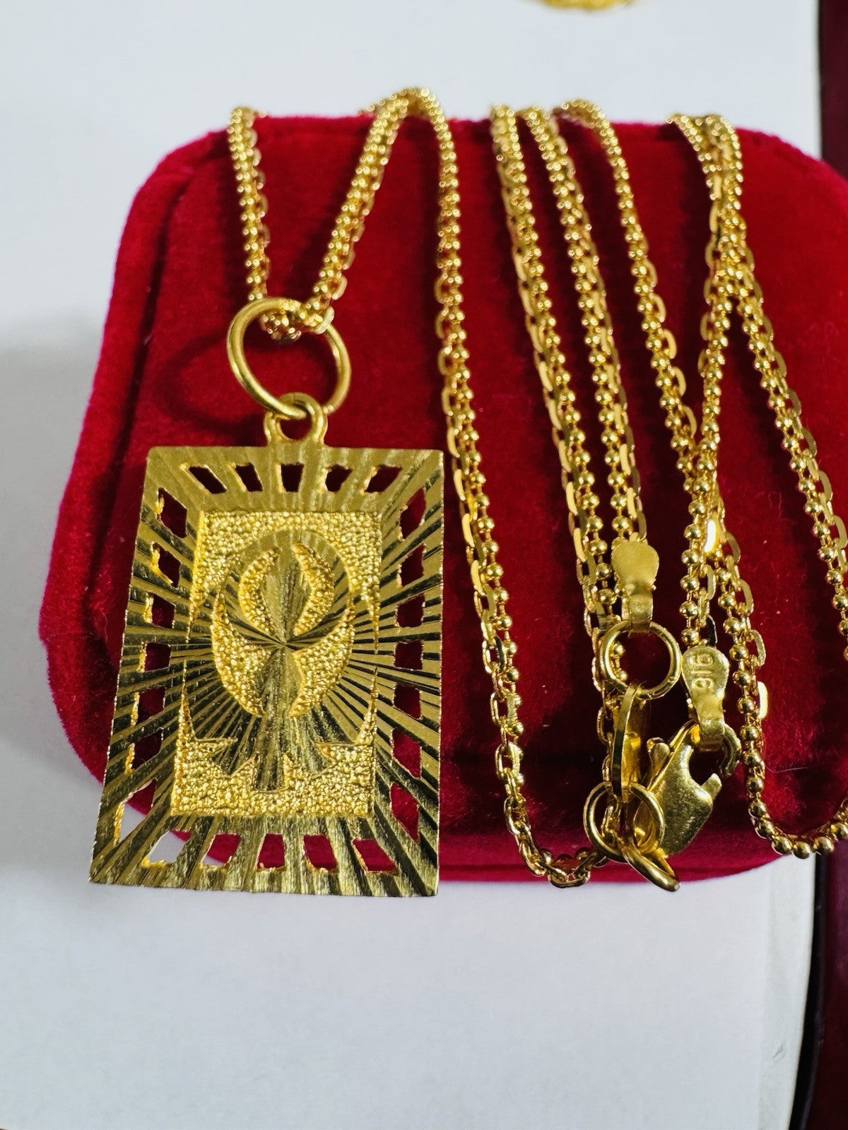 *100% 22C gold "916” equivalent, Mark stamp and tested Saudi gold, Light weight chain yet strong enough to hold.