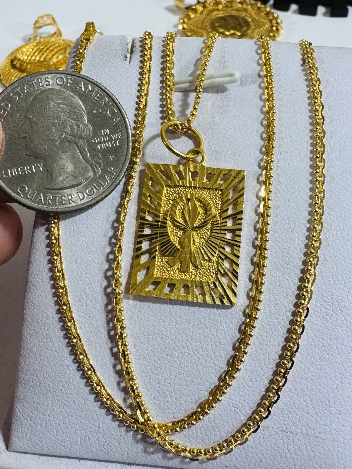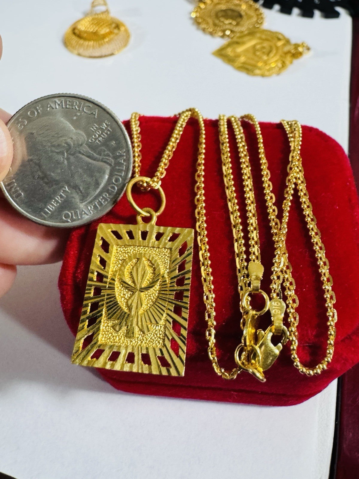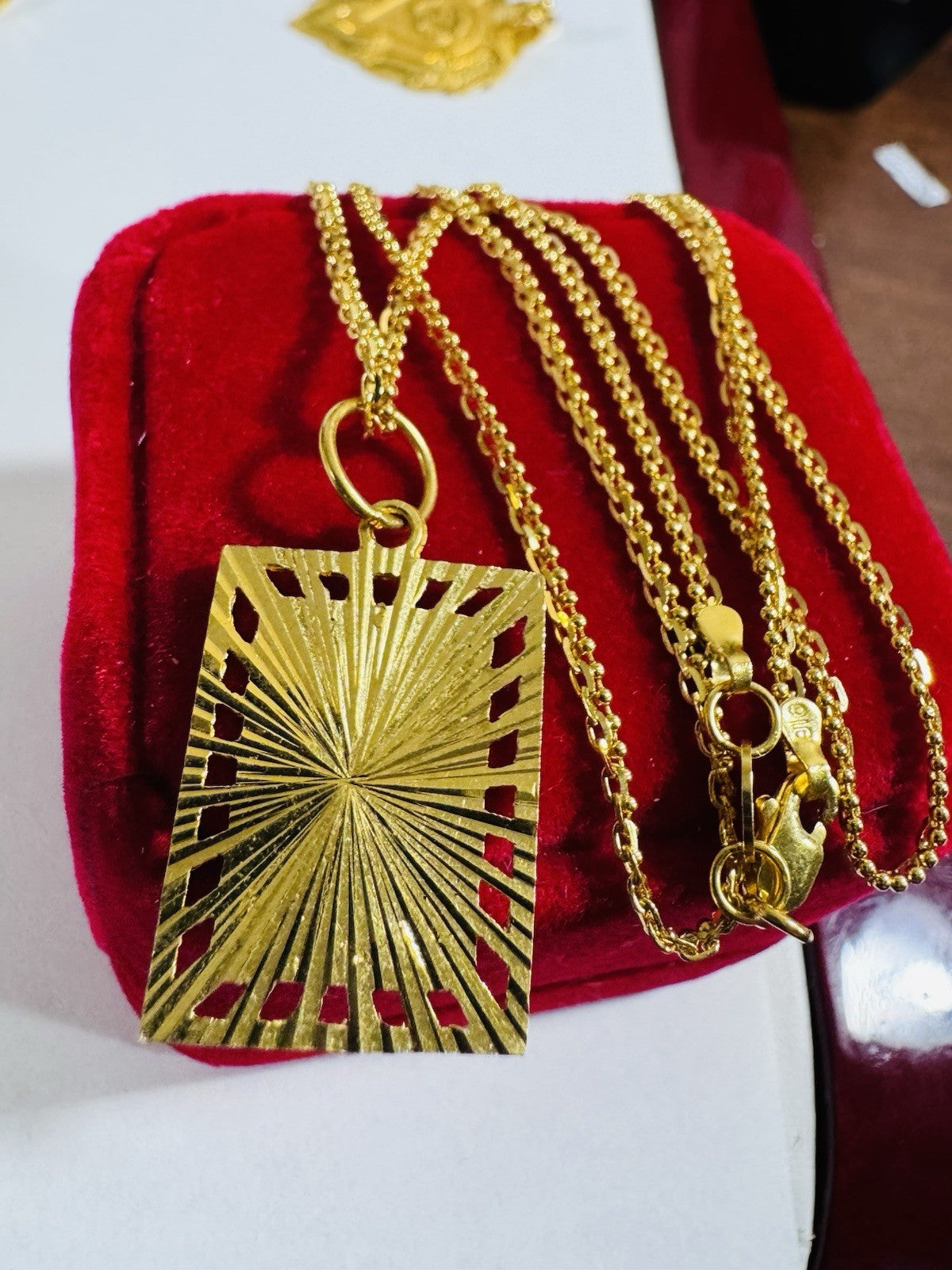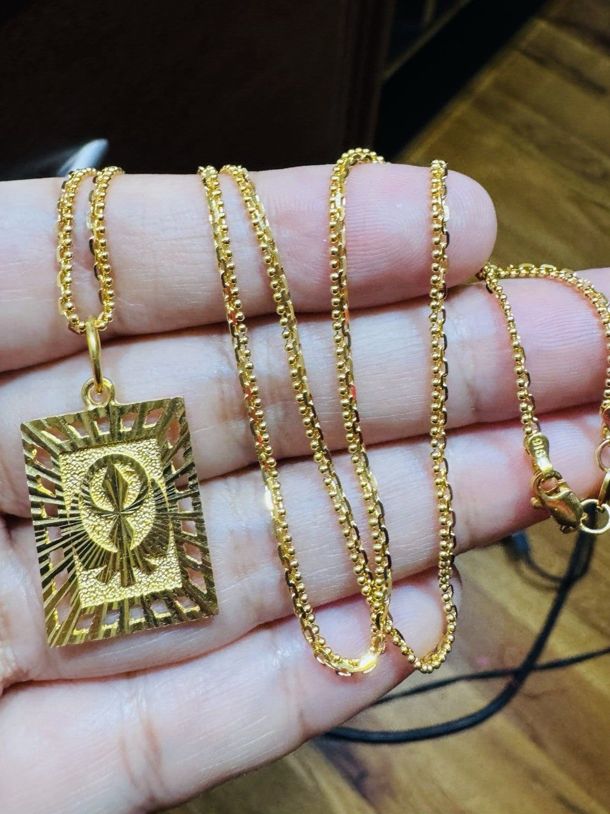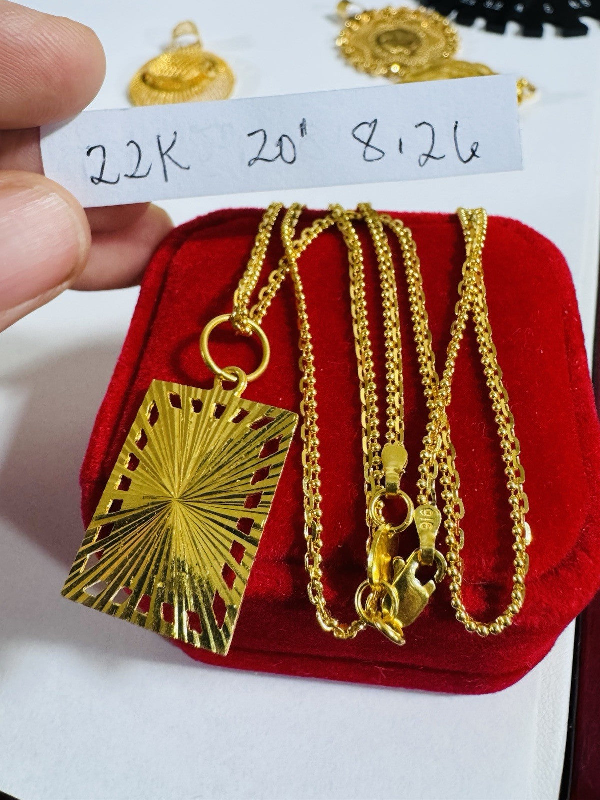 *100% 22C gold "916” equivalent, Mark stamp and tested Saudi gold, Light weight chain yet strong enough to hold.