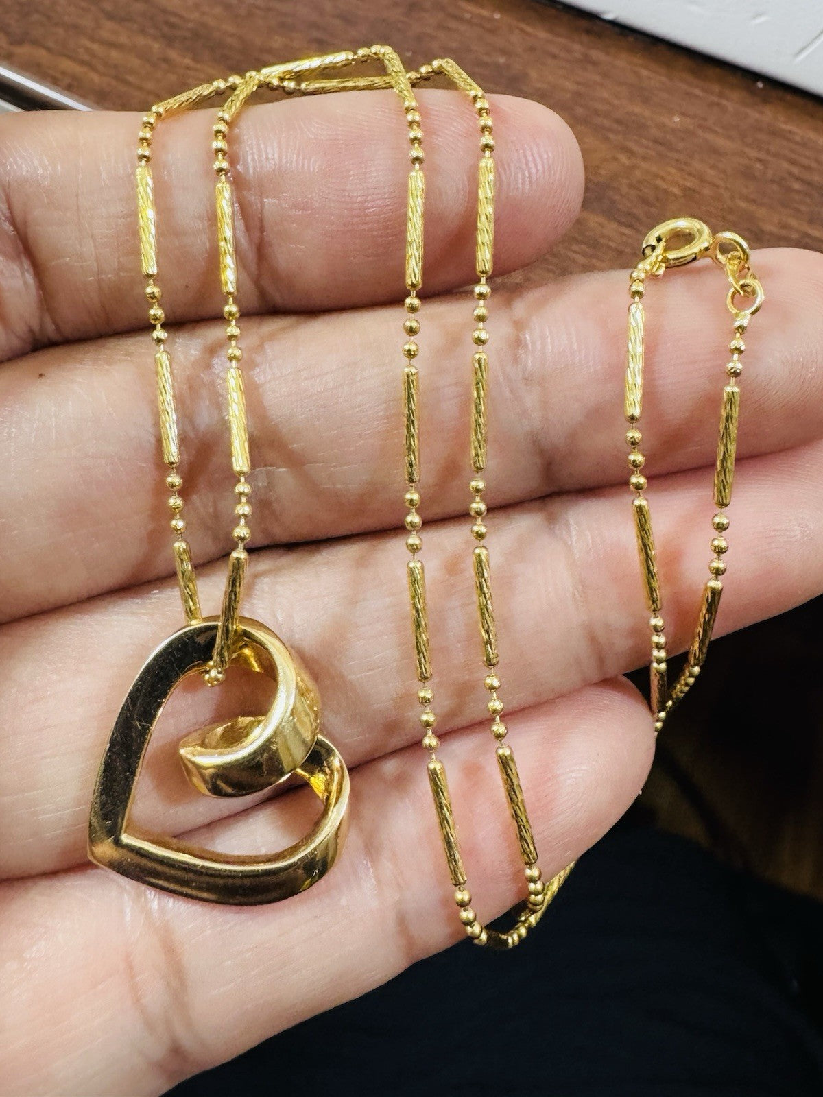This beautiful Light weight Womens Set necklace is expertly crafted in 18K 750 real yellow gold and features a stunning 18 inch chain with Pendant total 6.7 grams