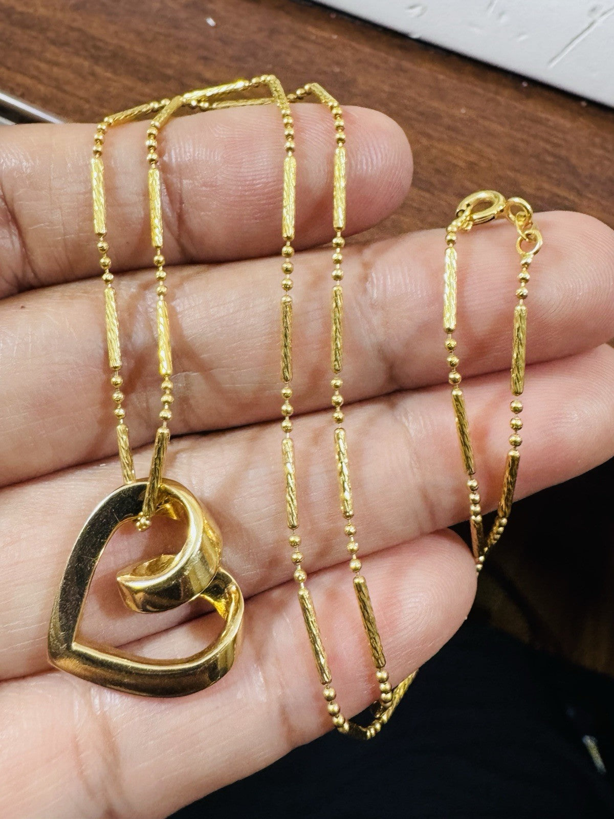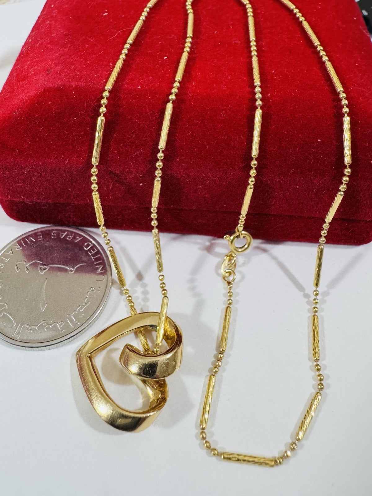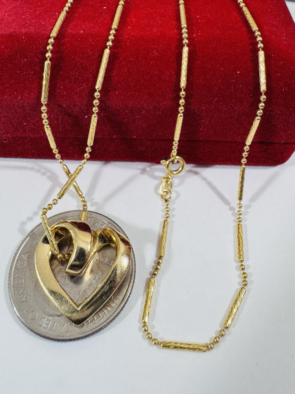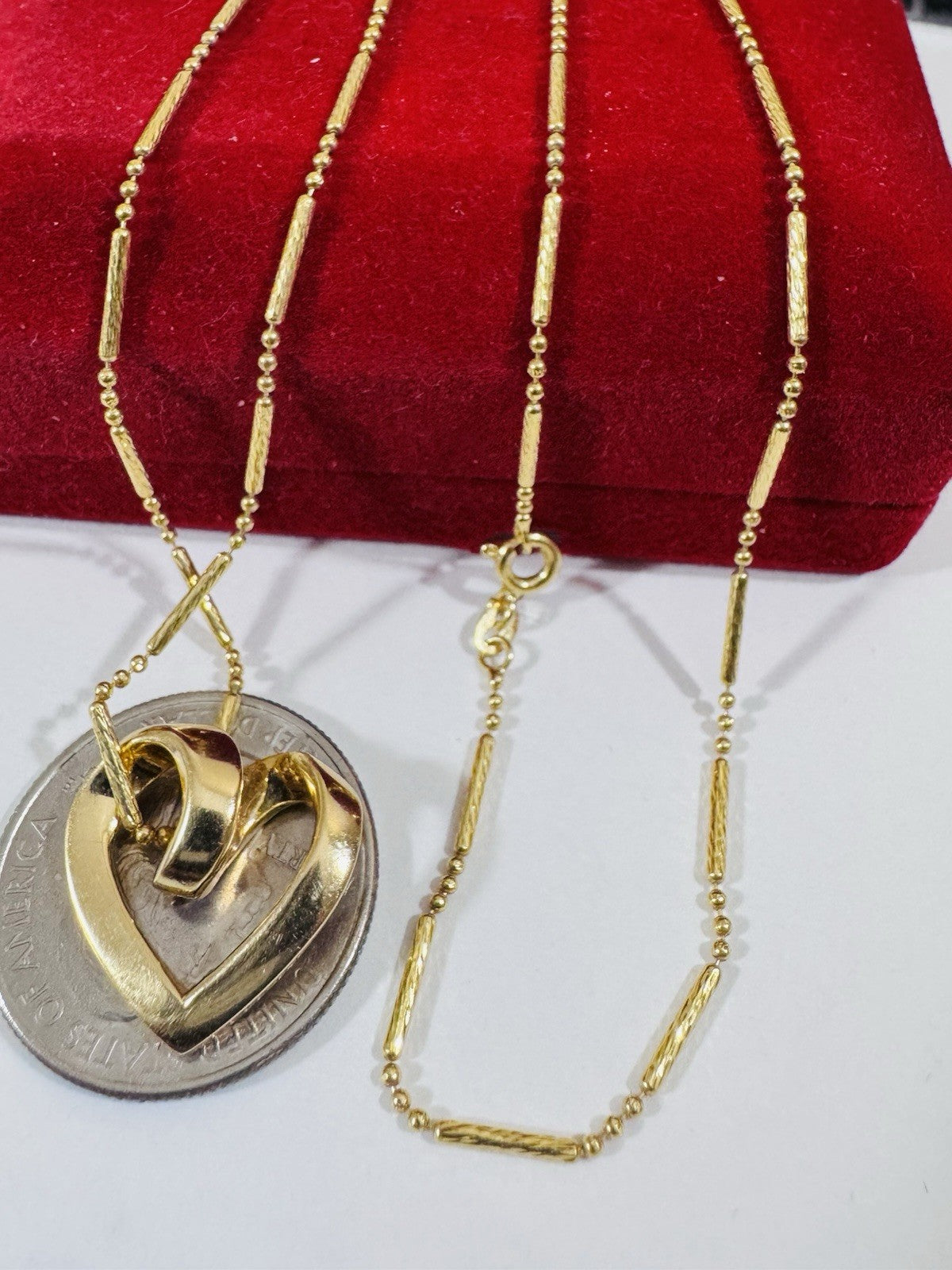 Woman’s 18K 750 Genuine Gold Heart Set Necklace 17.5”/18” Long 6,7g 1.6mm
