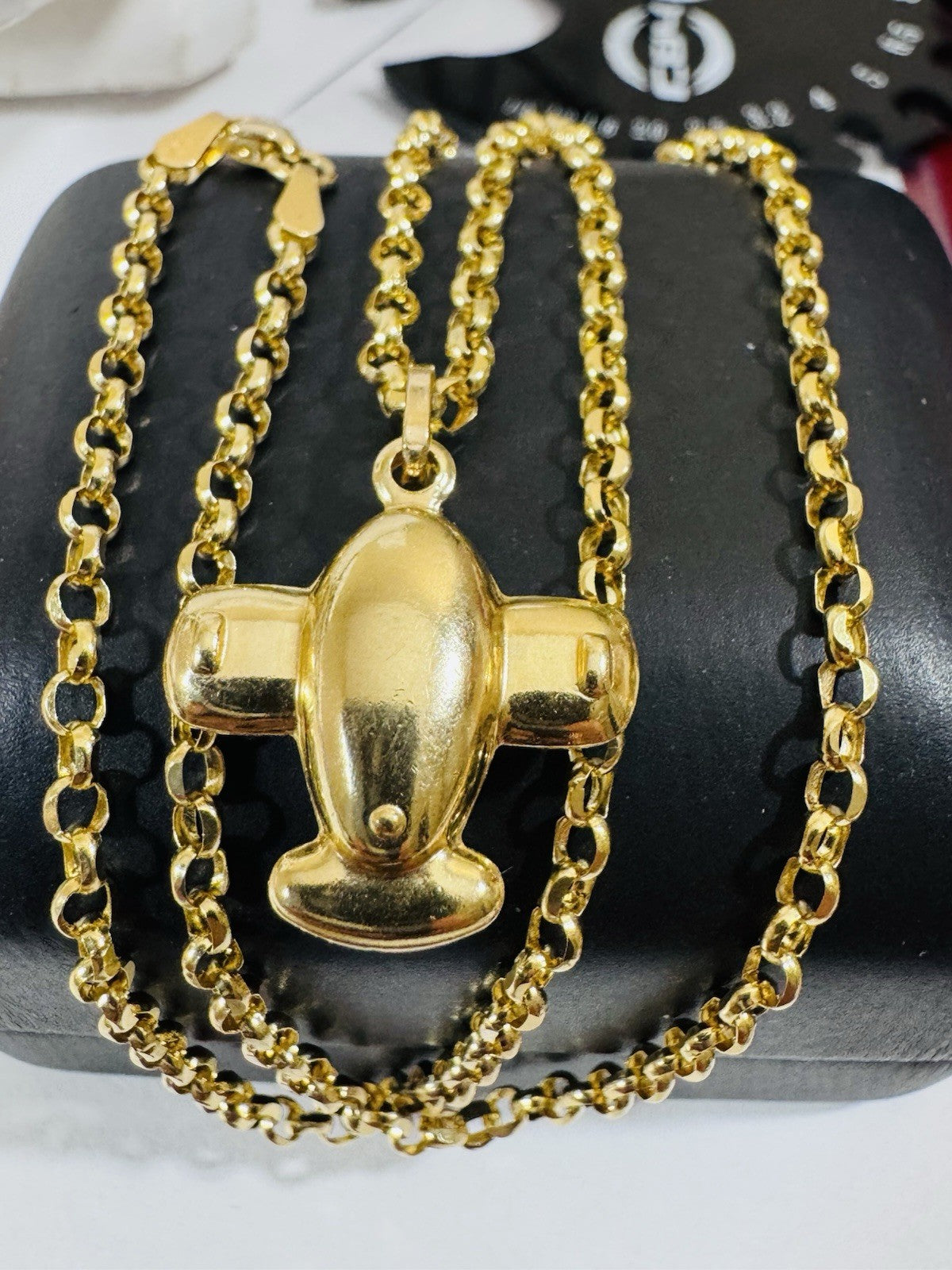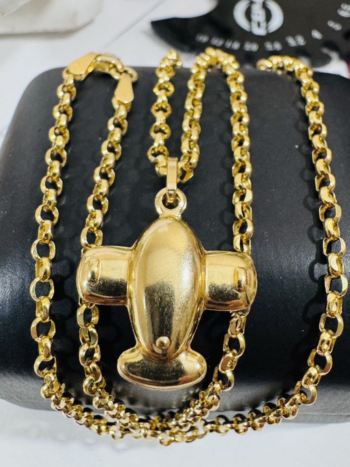 This beautiful Light weight Womens Set necklace is expertly crafted in 18K 750 real yellow gold and features a stunning 18 inch chain with Pendant total 5.63 grams
