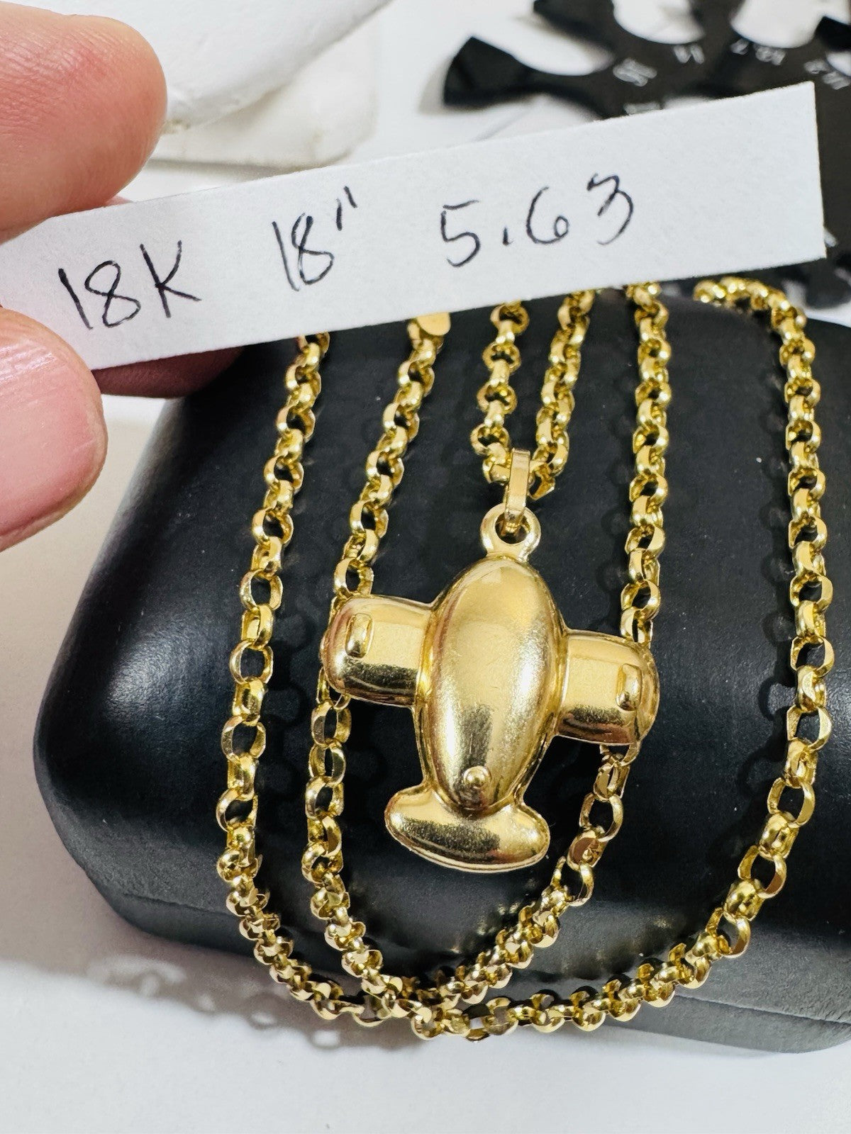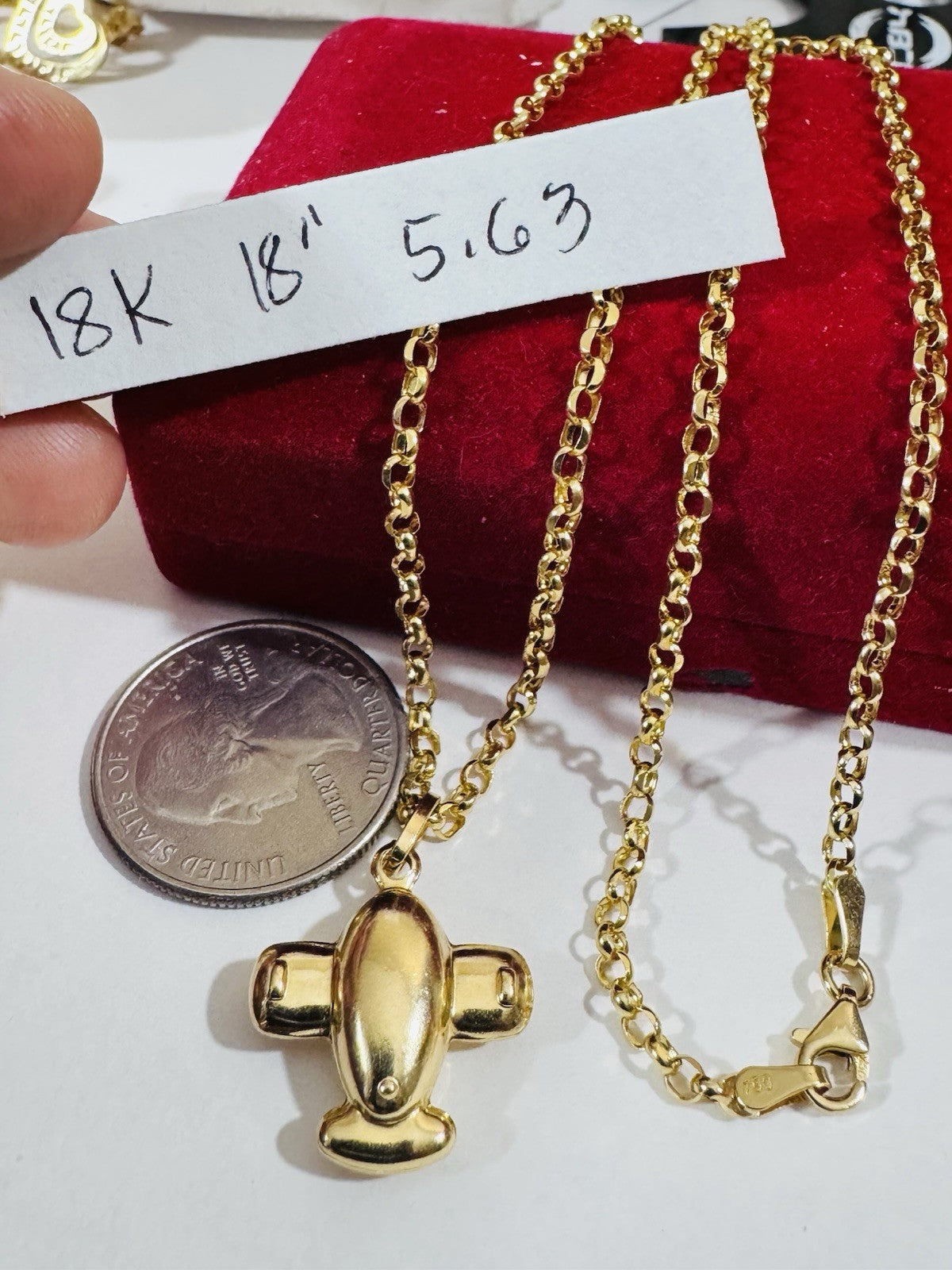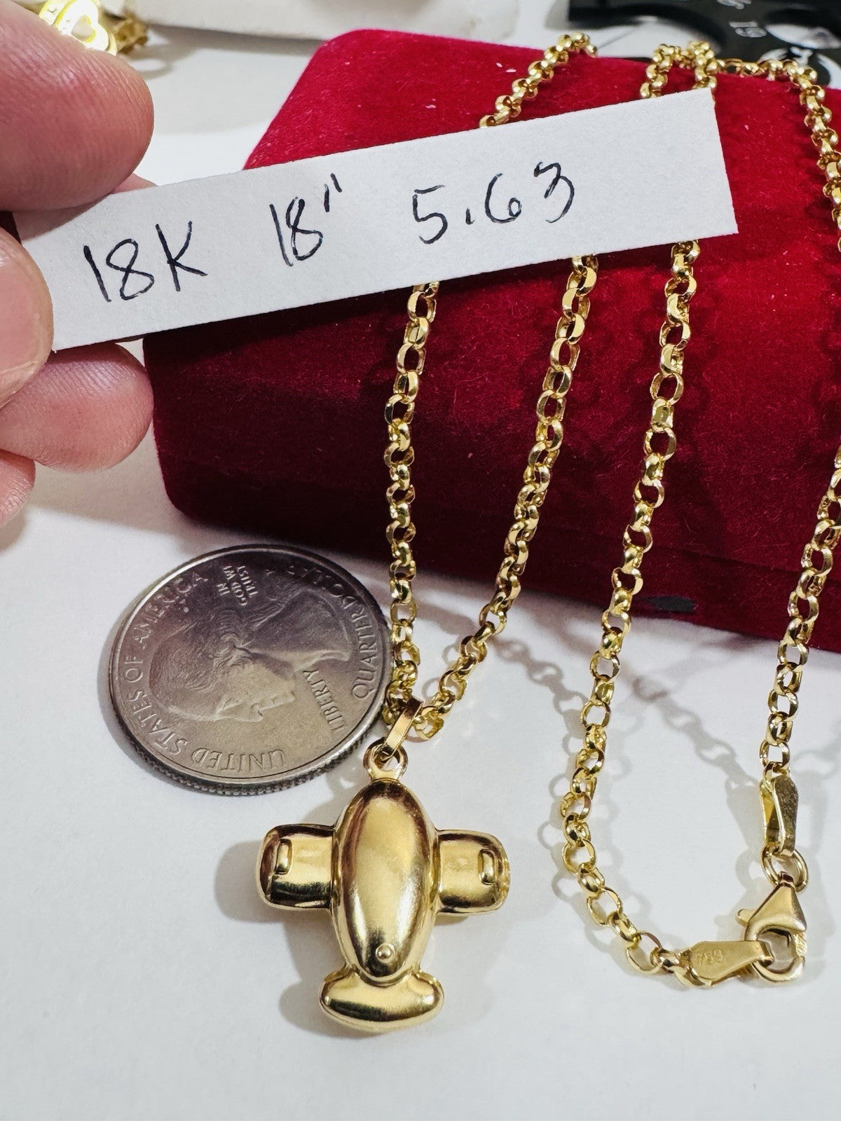 Woman’s 18K 750 Genuine Gold Rolo Chain Airplane Set Necklace 18” Long 5.63g 3mm