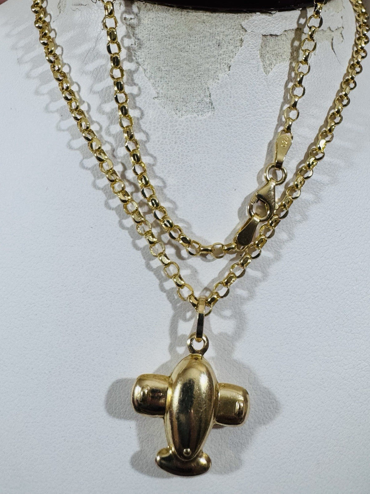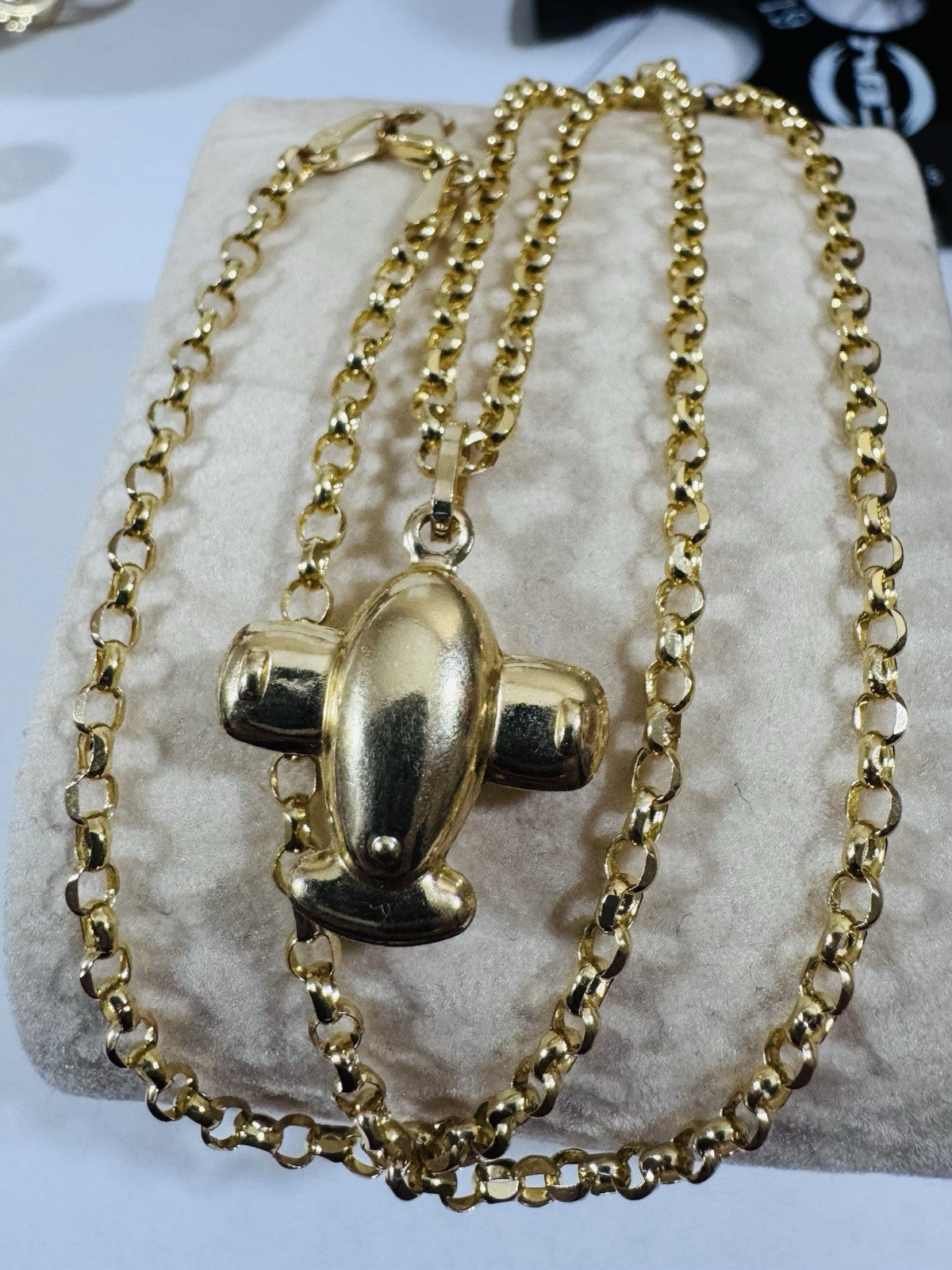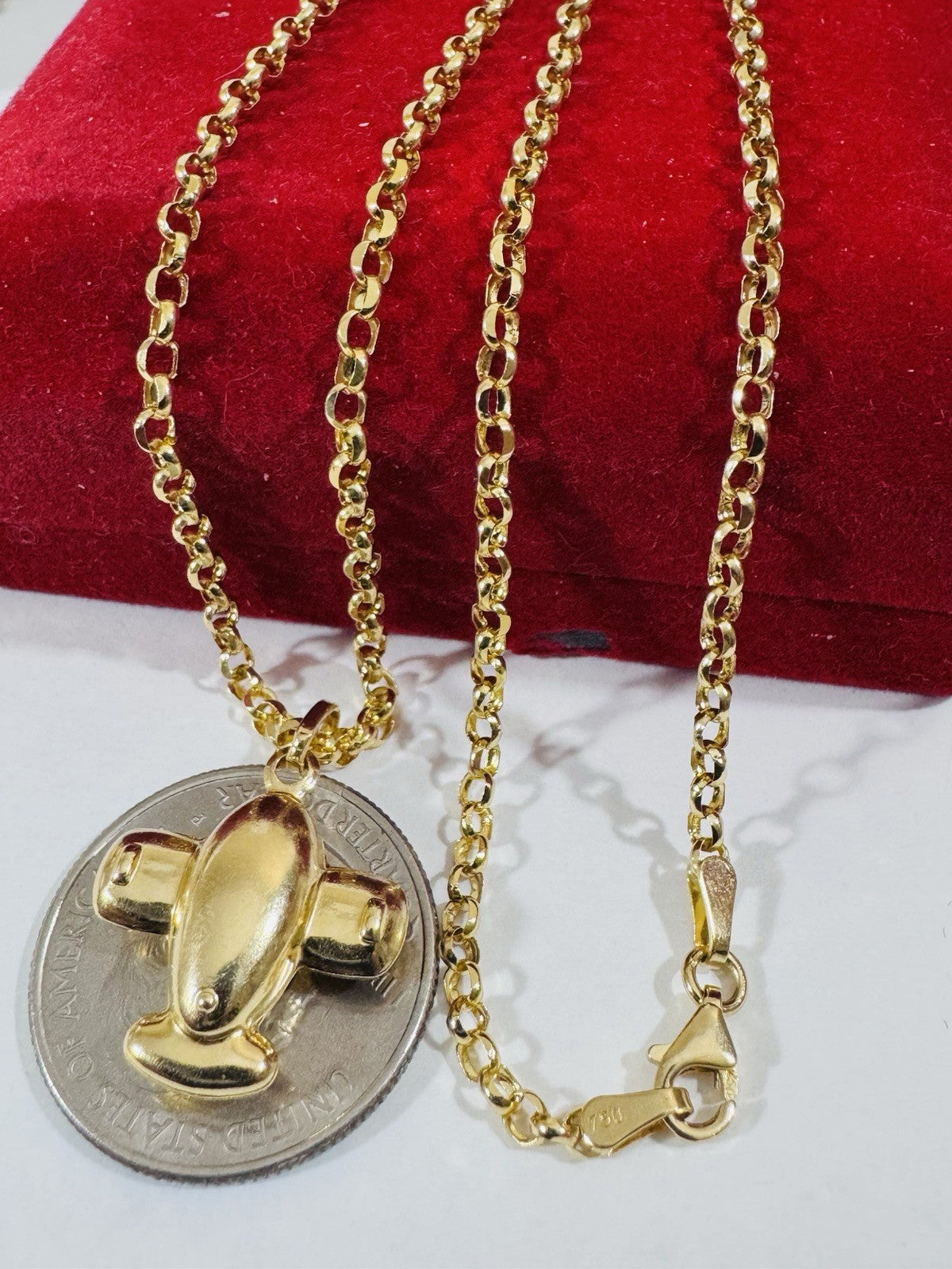 Woman’s 18K 750 Genuine Gold Rolo Chain Airplane Set Necklace 18” Long 5.63g 3mm