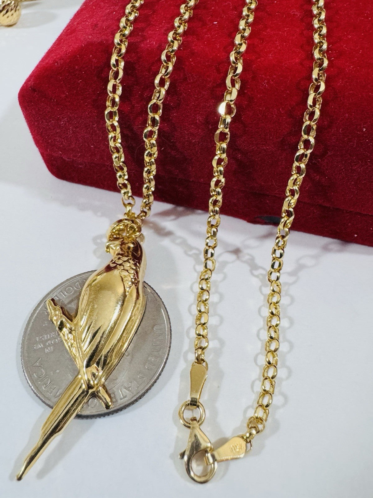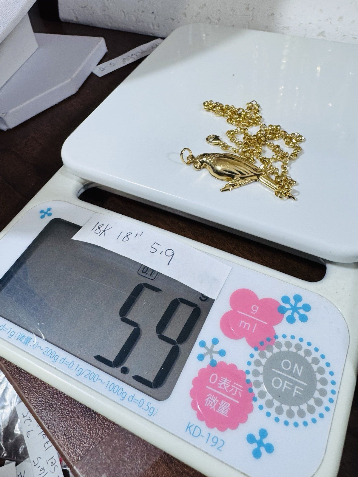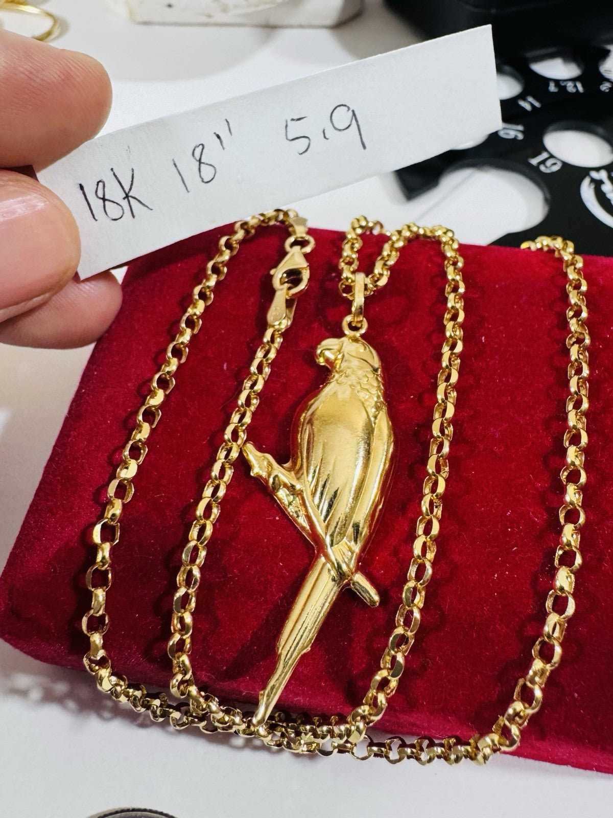 Woman’s 18K 750 Genuine Gold Rolo Chain Eagle Bird Necklace 18” Long 5.9g 3mm