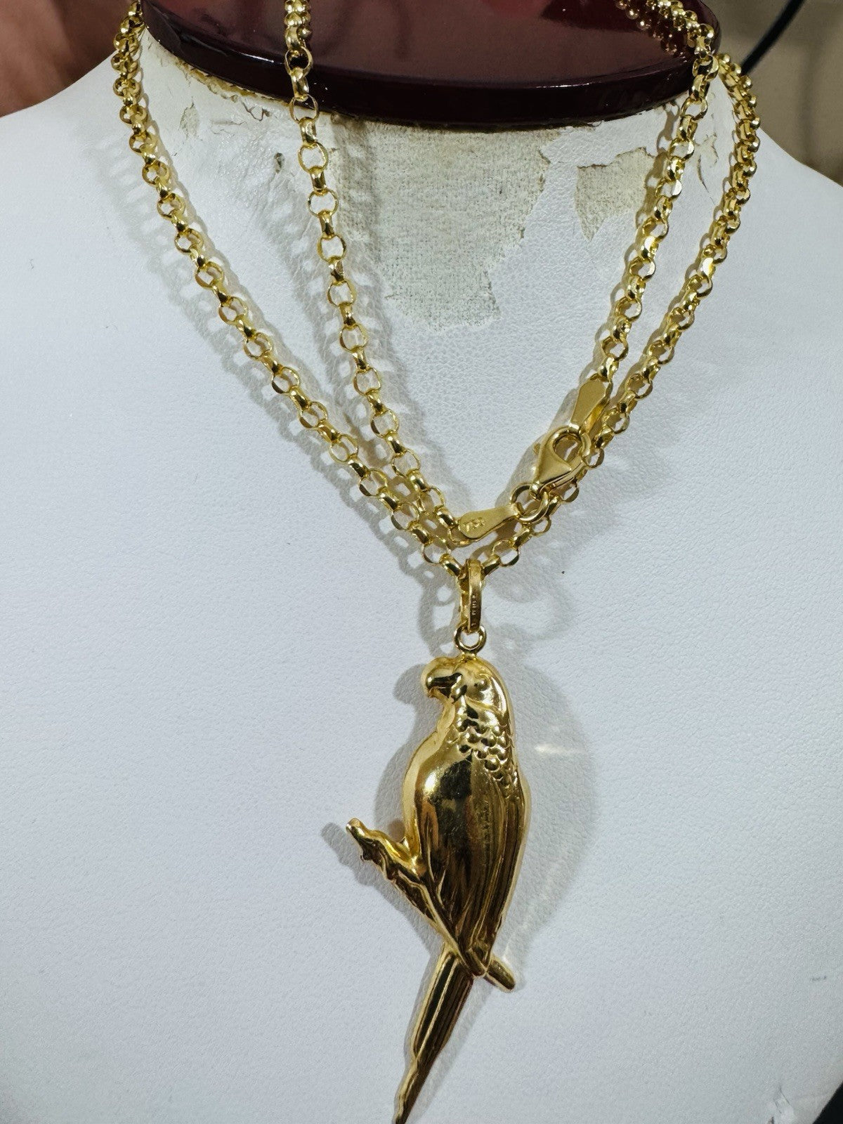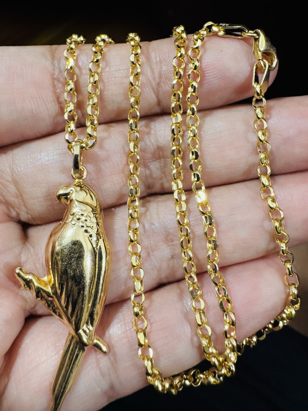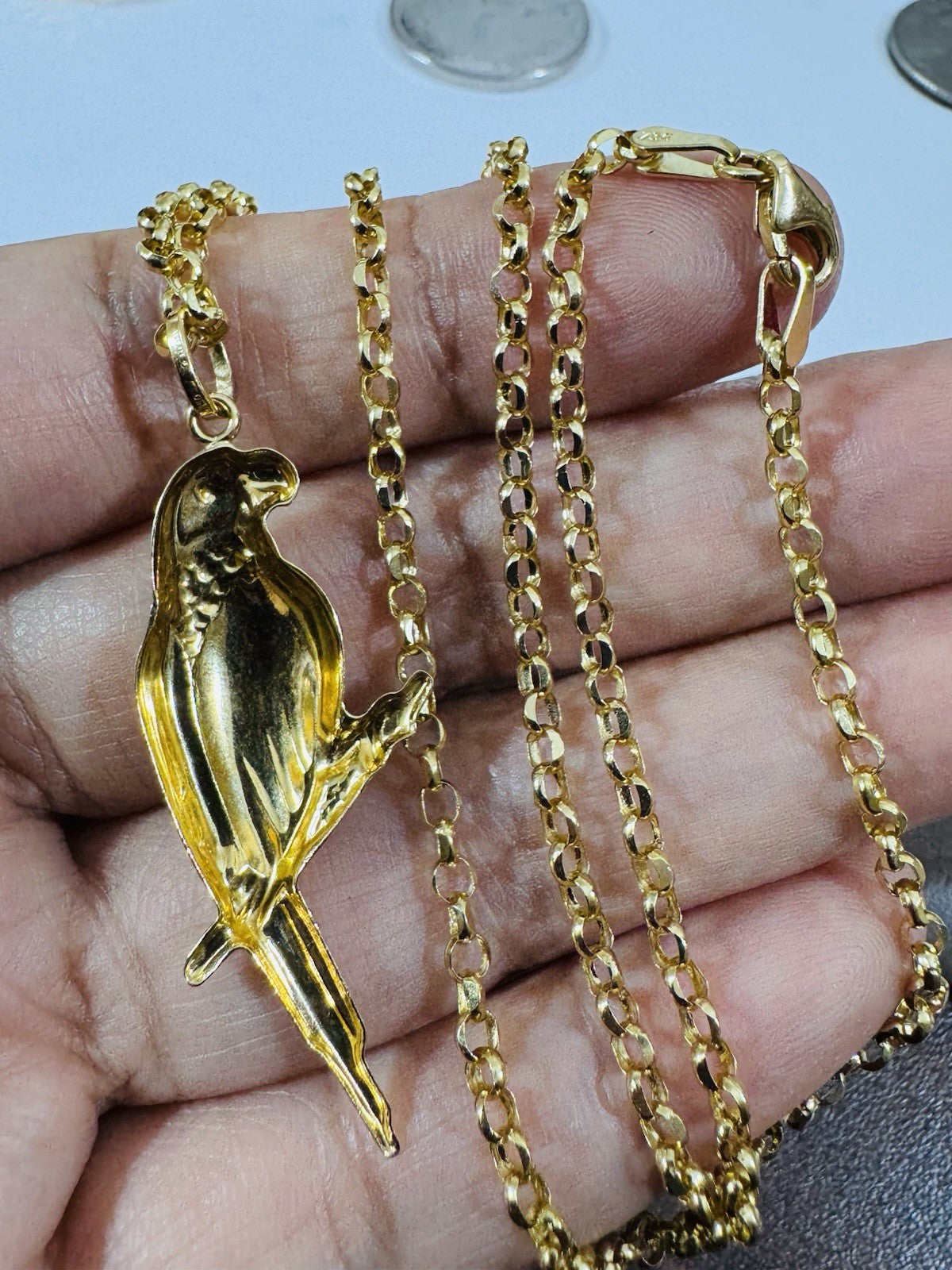 Woman’s 18K 750 Genuine Gold Rolo Chain Eagle Bird Necklace 18” Long 5.9g 3mm