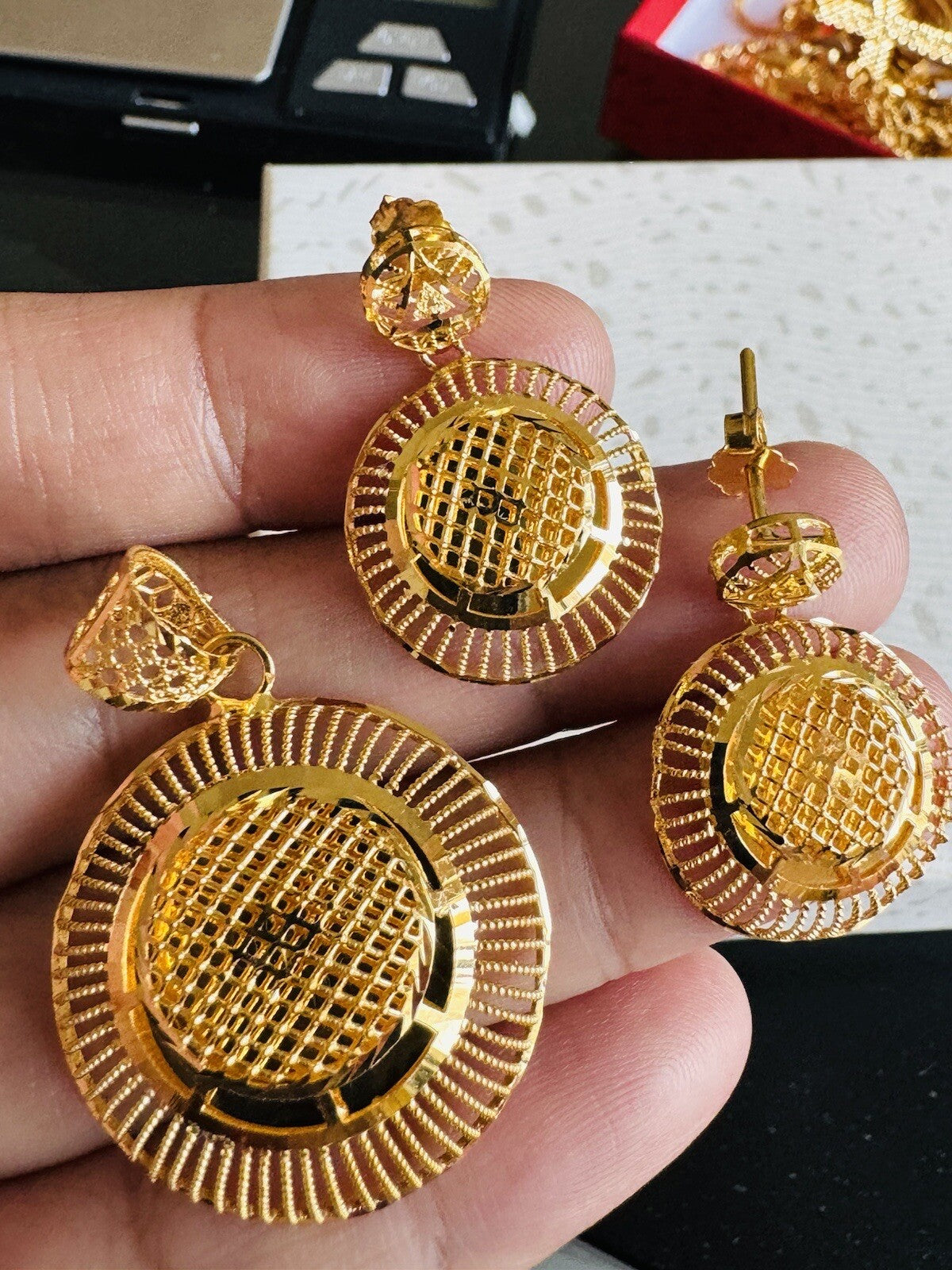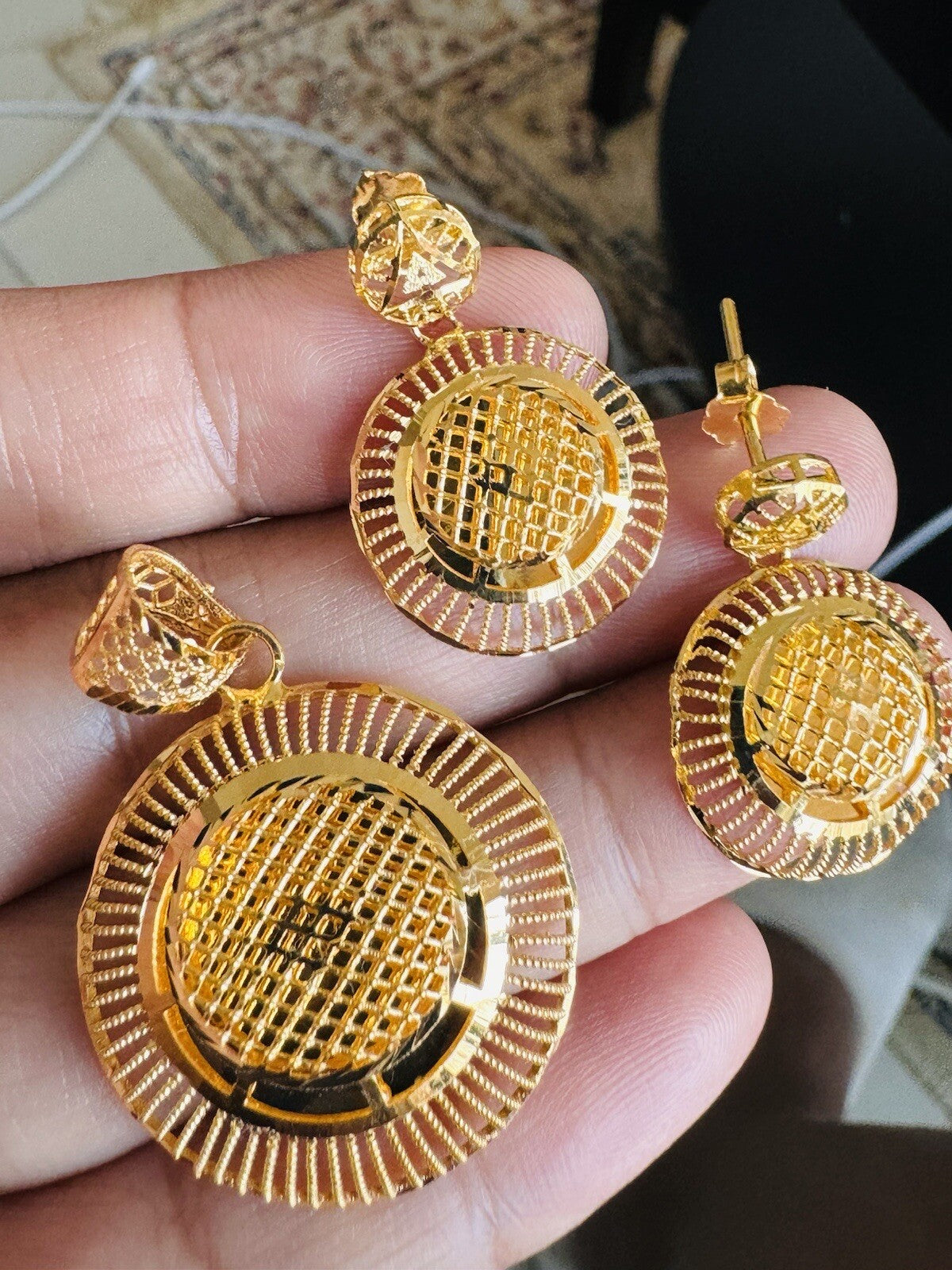 Womens 22K 916 22C Fine Real Gold Unique Round Set Earring & Pendant only 9.3g