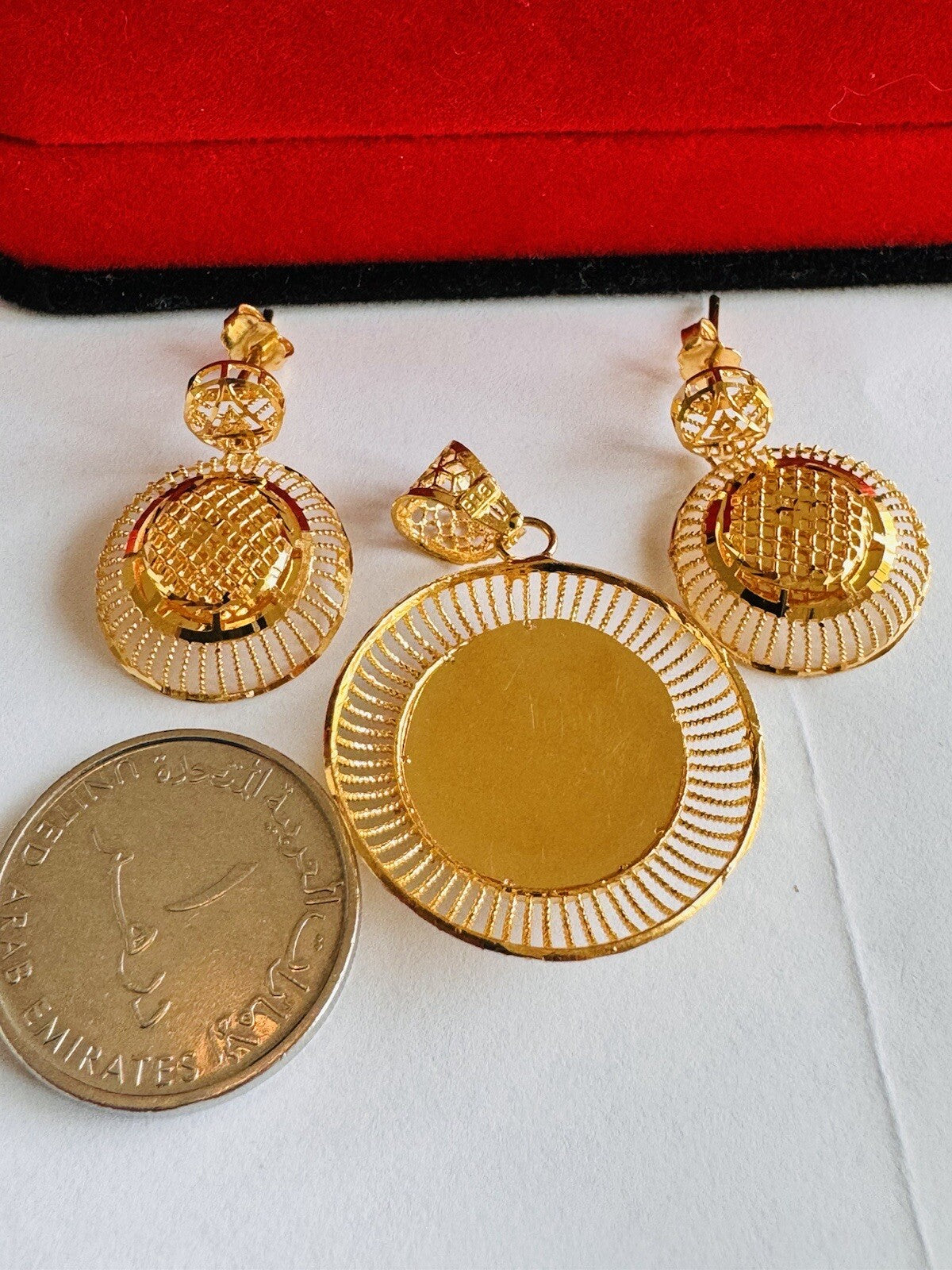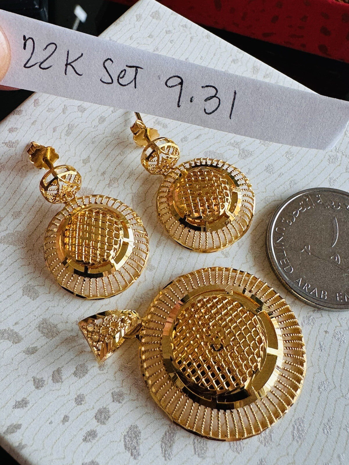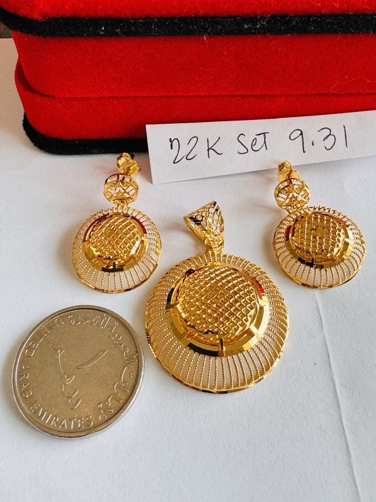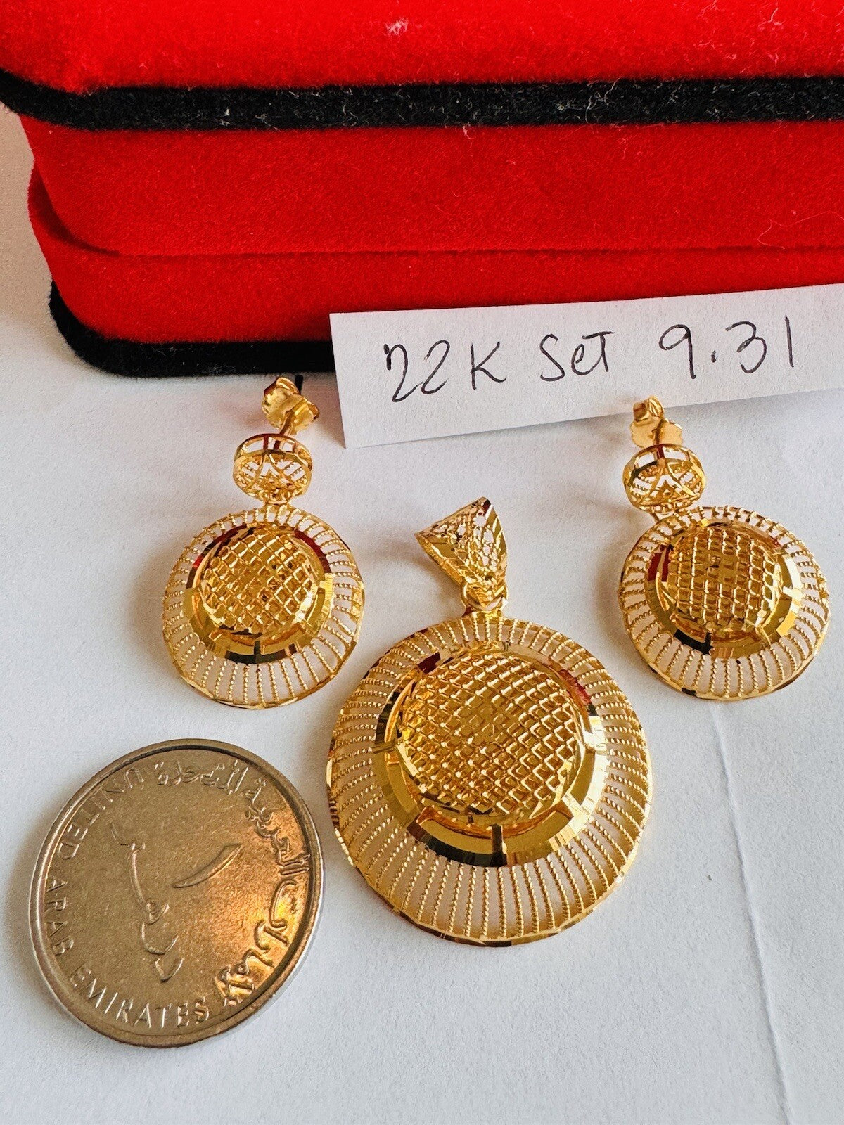 * Hello You are buying Real Brand New Beautiful 22c 916 Fine Yellow Saudi Gold Women’s Earring and Pendant only 9.3 grams USA Seller Fast shipping!