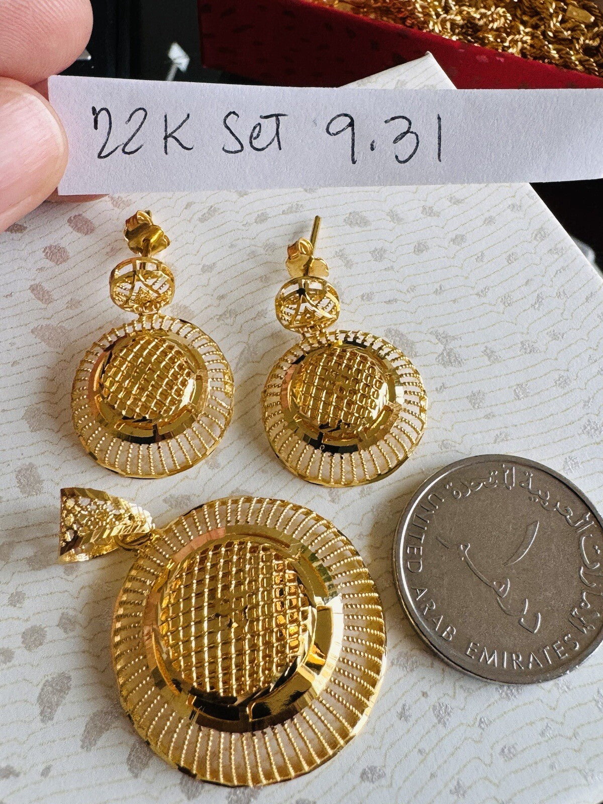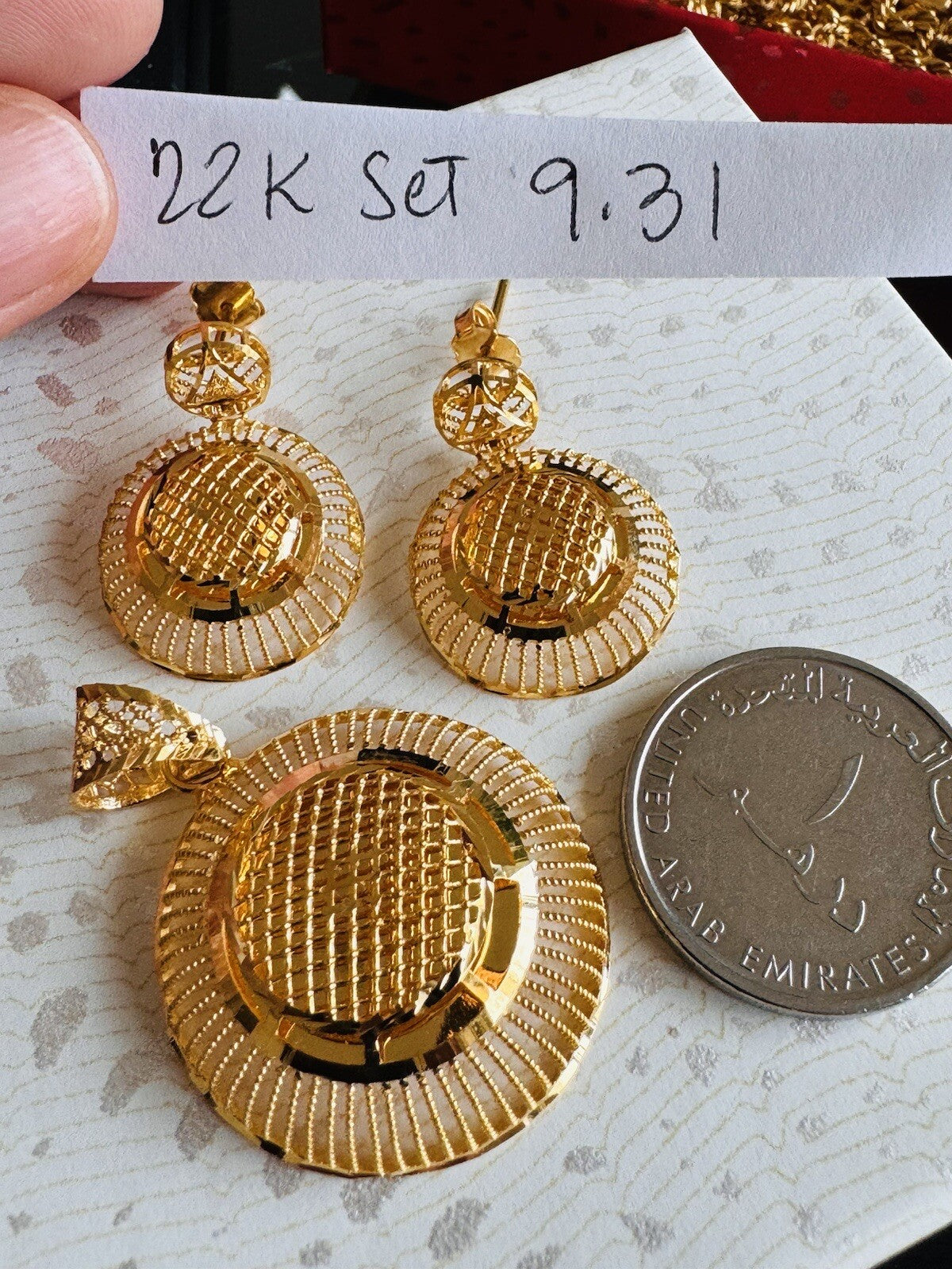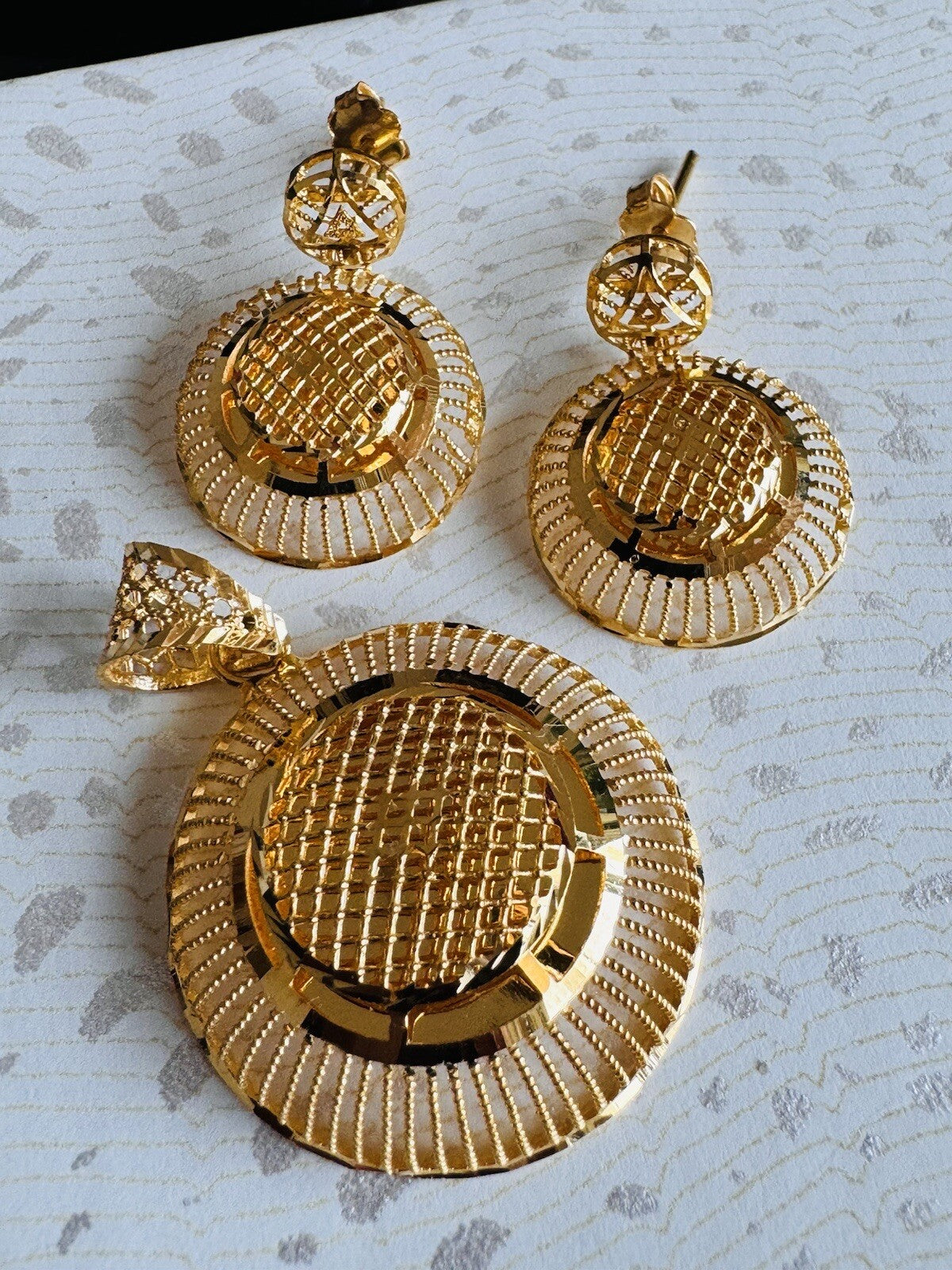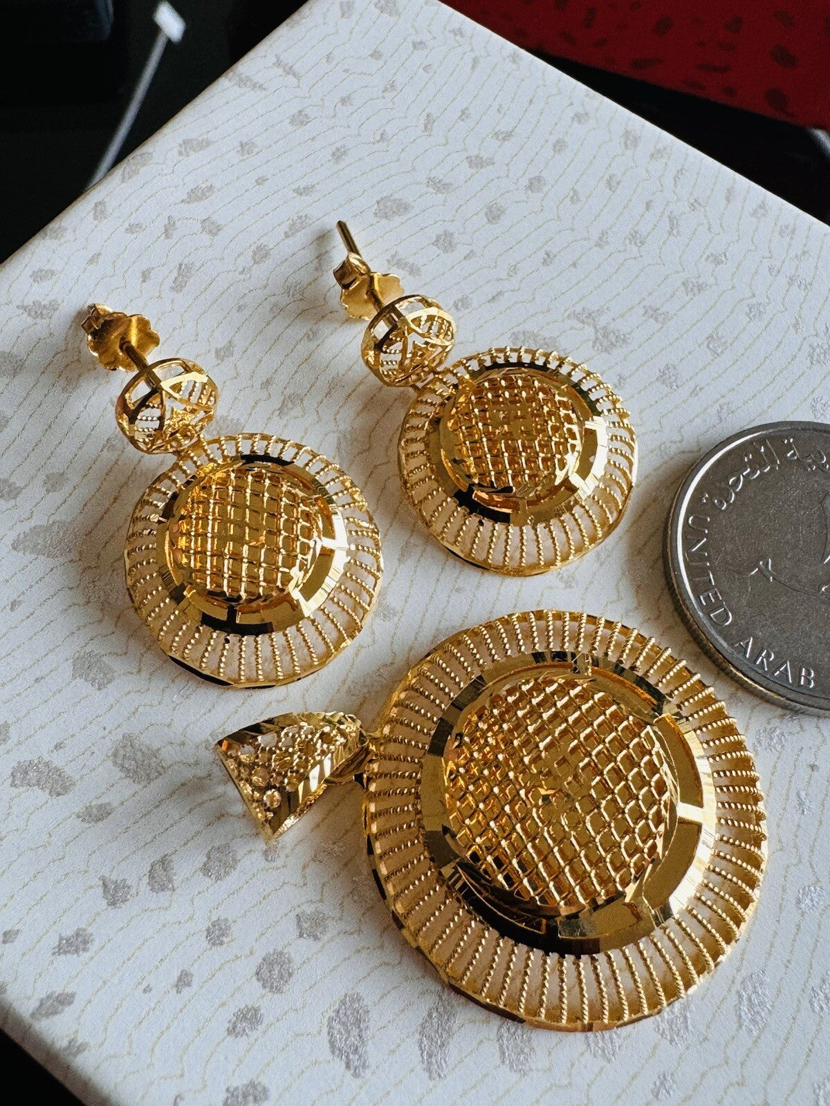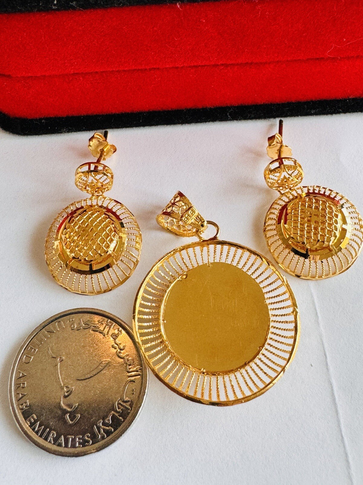 * Hello You are buying Real Brand New Beautiful 22c 916 Fine Yellow Saudi Gold Women’s Earring and Pendant only 9.3 grams USA Seller Fast shipping!