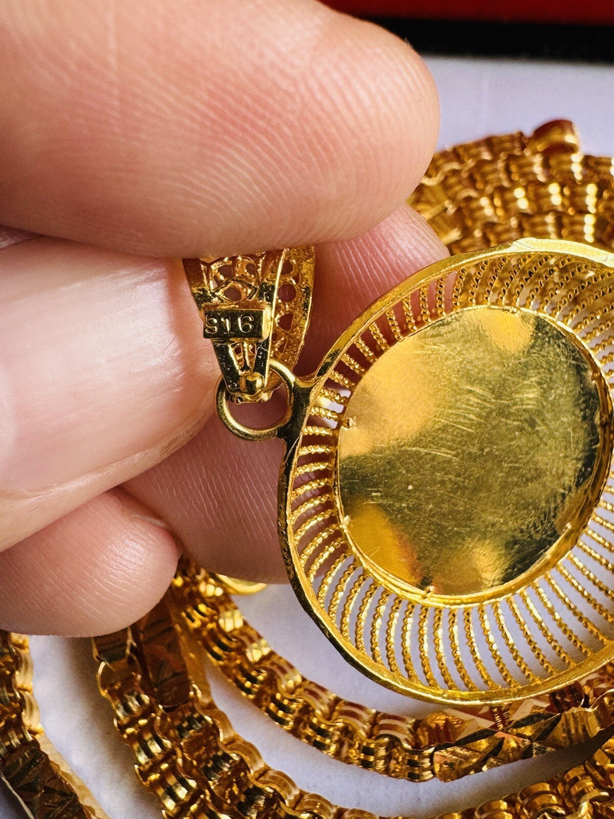 * 100% 22C gold "91.6%”equivalent, Mark stamp & tested Saudi gold,