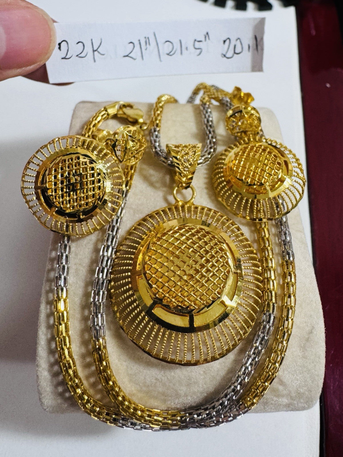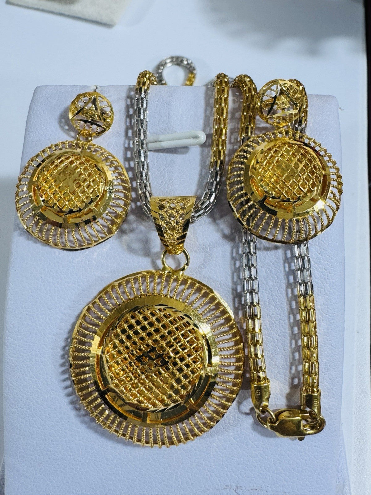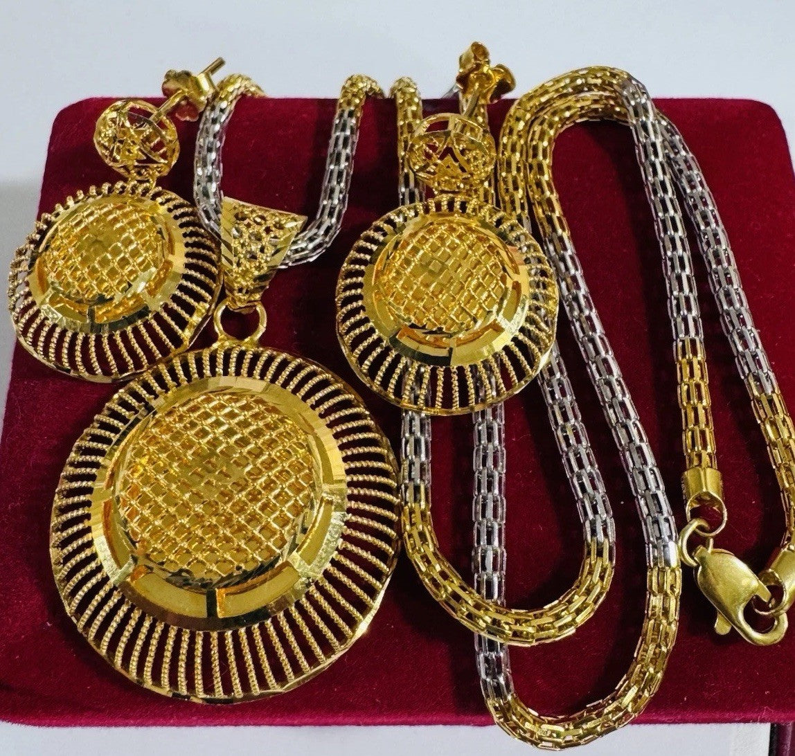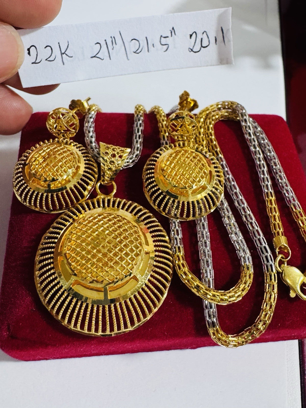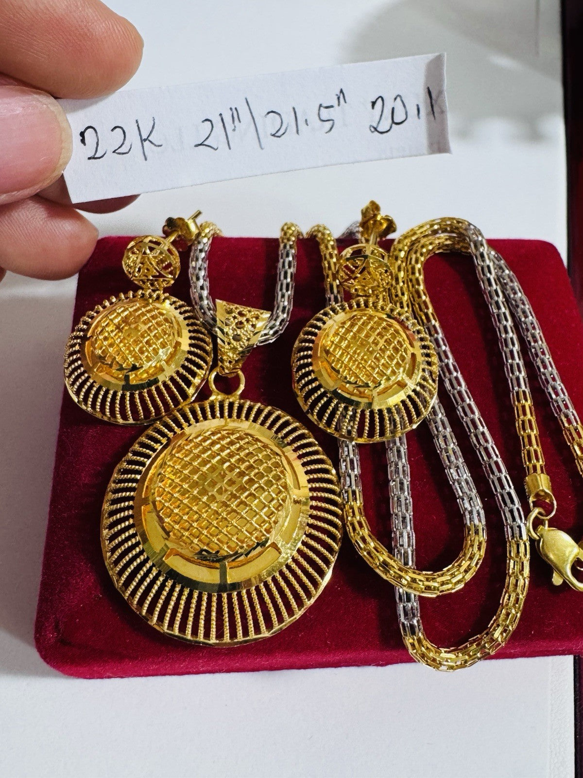 * Hello You are buying Real Brand New 22K 916 Fine Real Twotone Gold Chain Necklace 21/21.5” long w/ Round Earring 3mm 20.1 grams