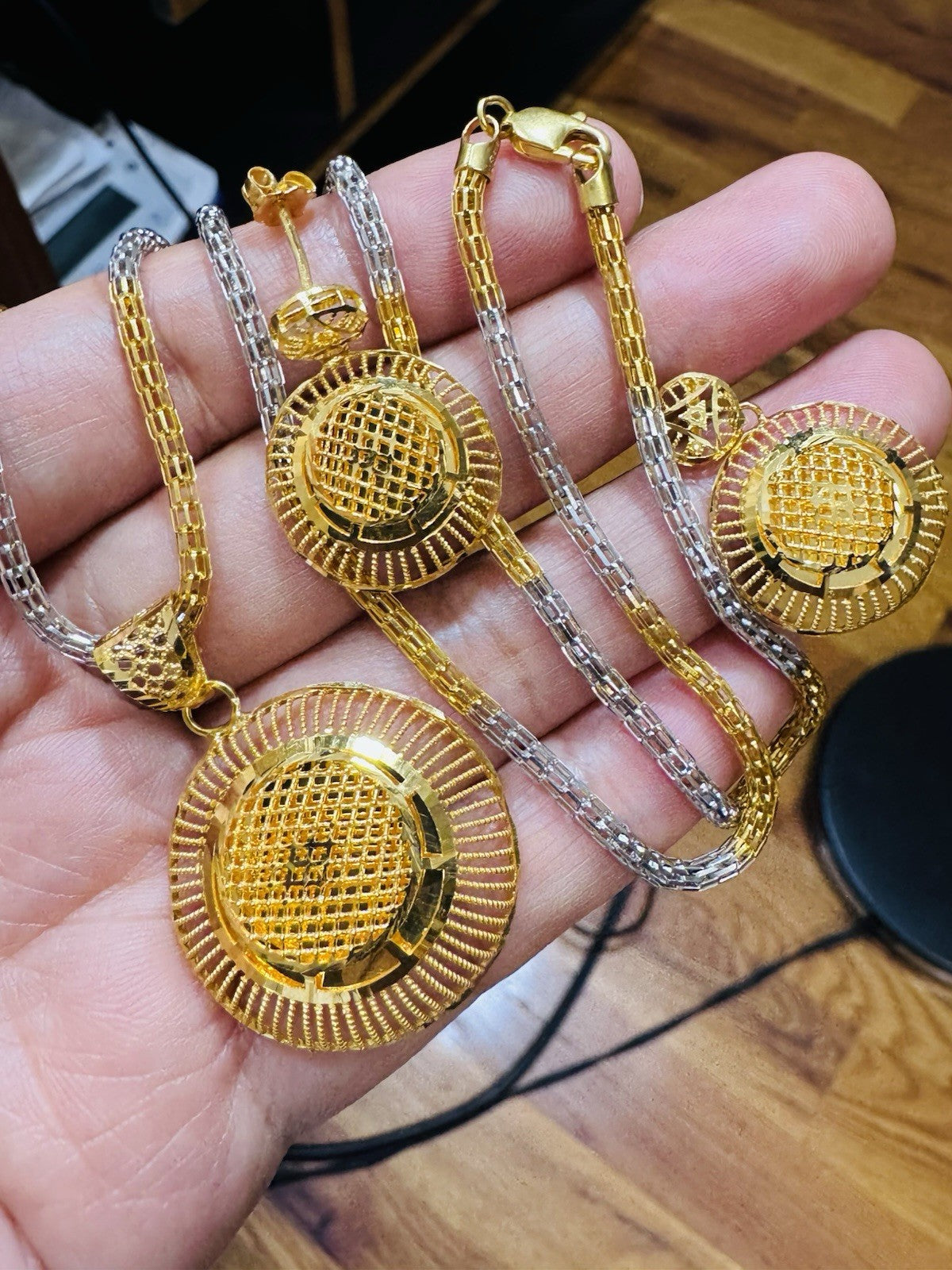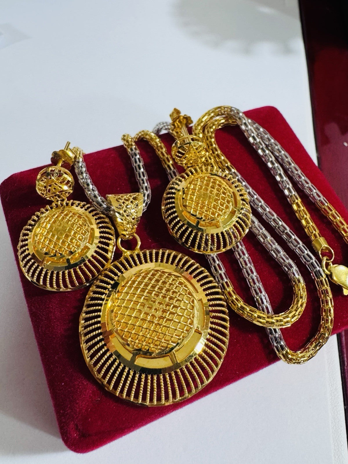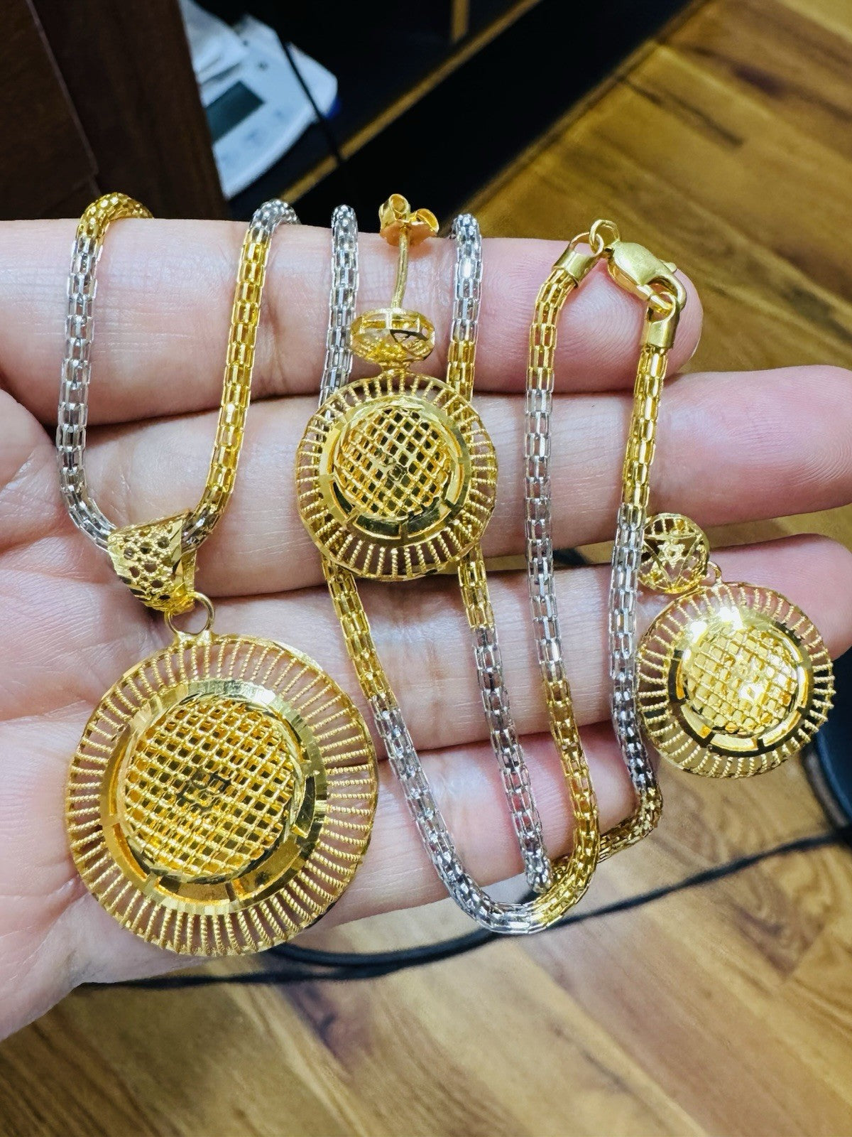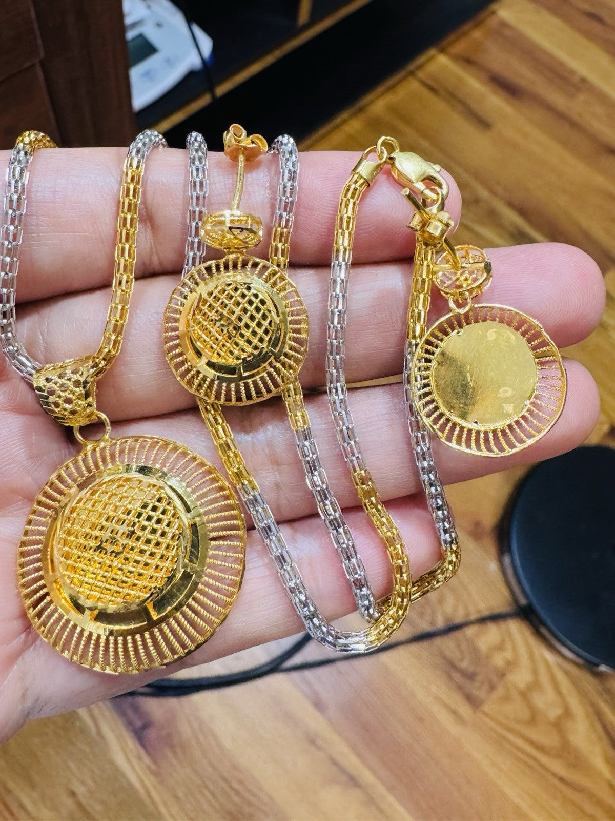 * Hello You are buying Real Brand New 22K 916 Fine Real Twotone Gold Chain Necklace 21/21.5” long w/ Round Earring 3mm 20.1 grams