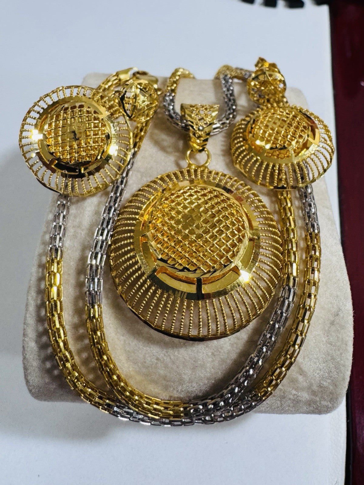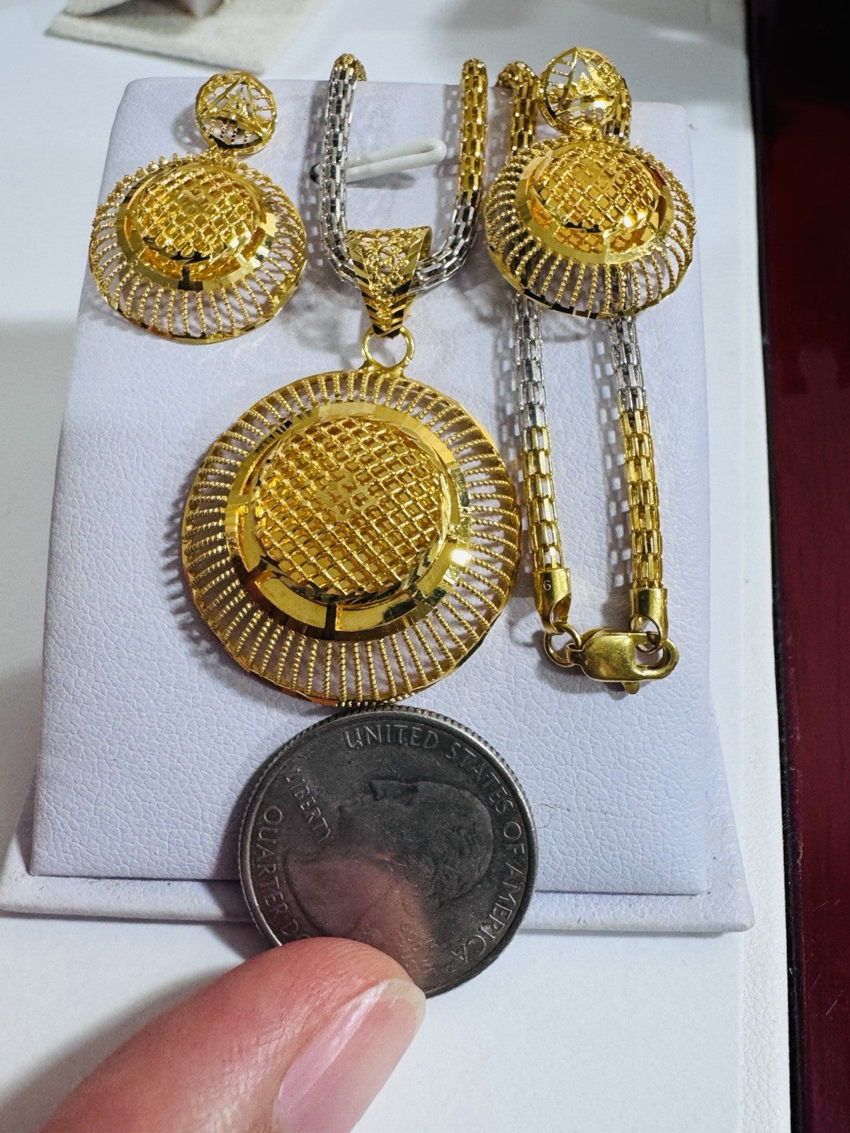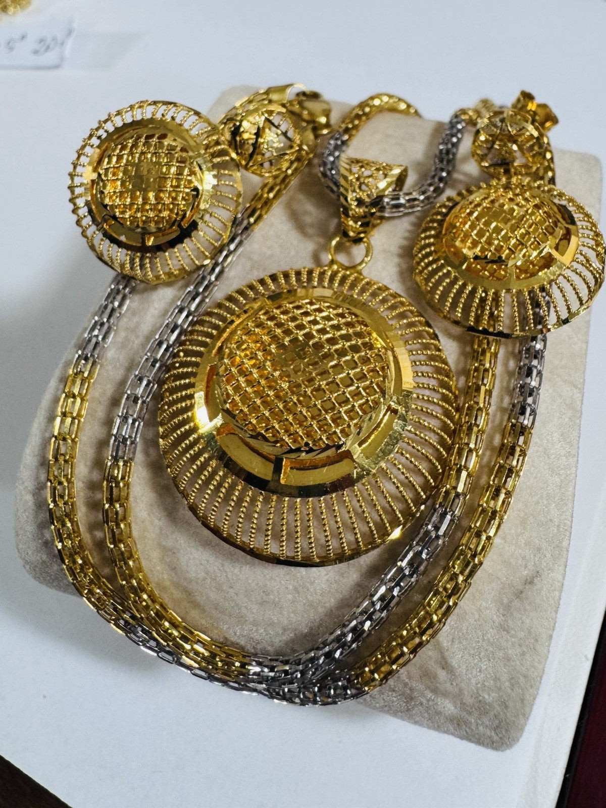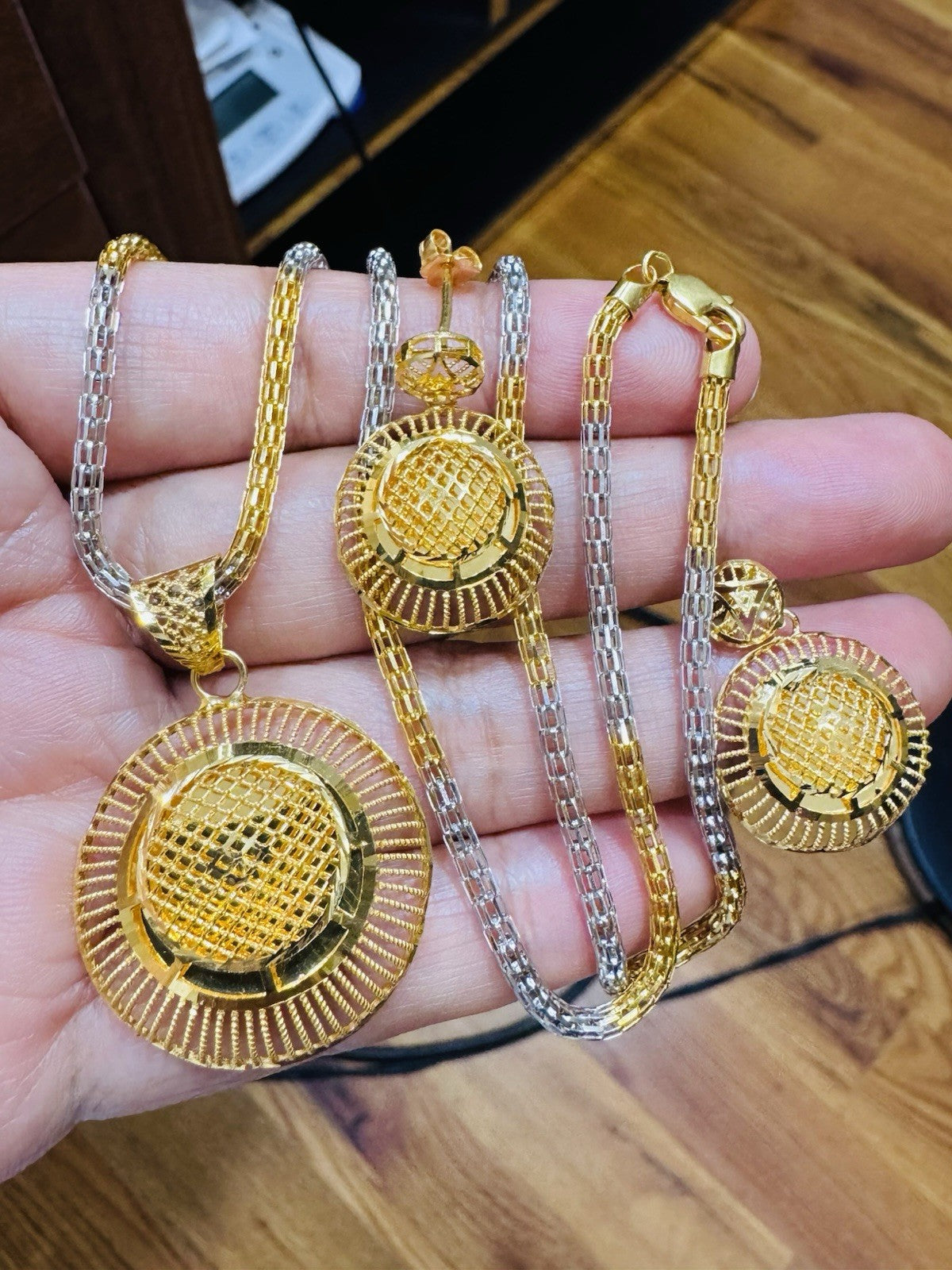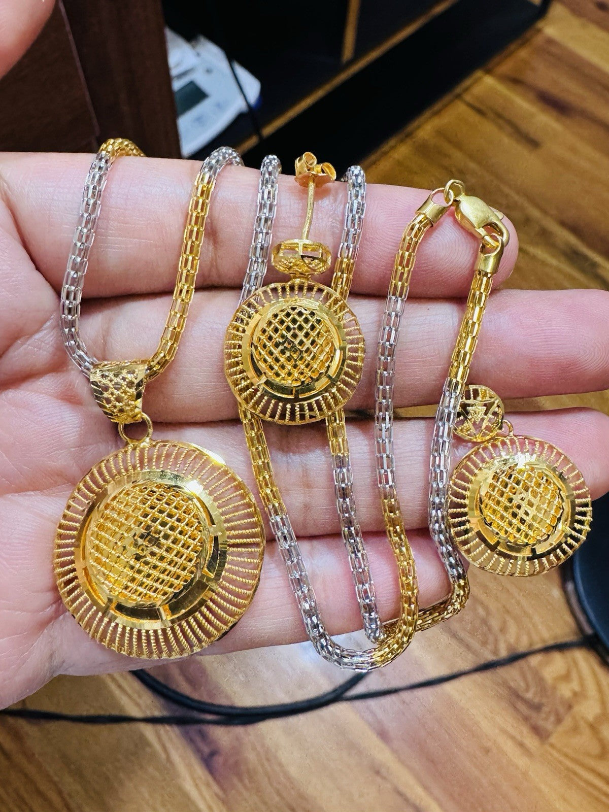 * Hello You are buying Real Brand New 22K 916 Fine Real Twotone Gold Chain Necklace 21/21.5” long w/ Round Earring 3mm 20.1 grams