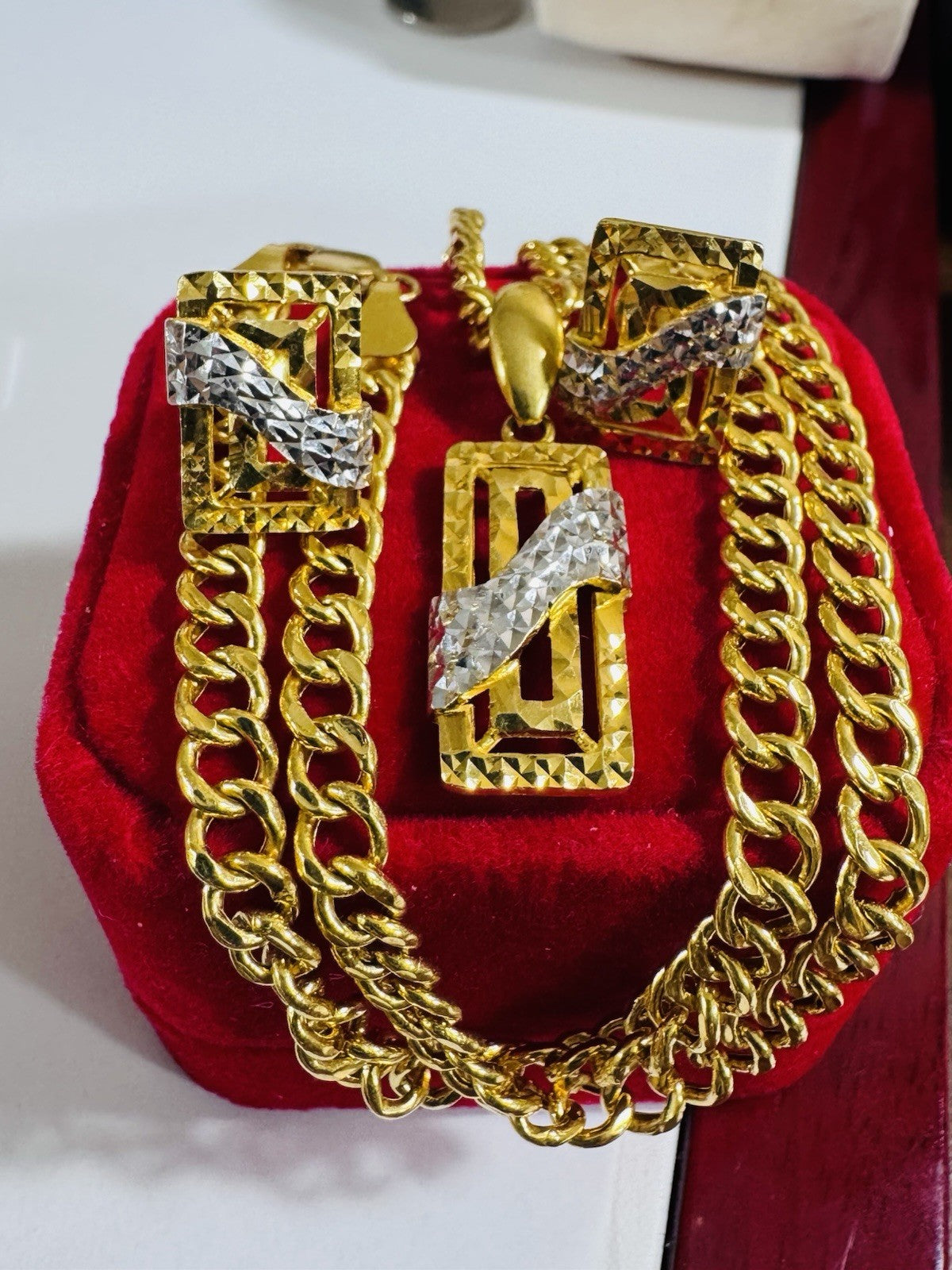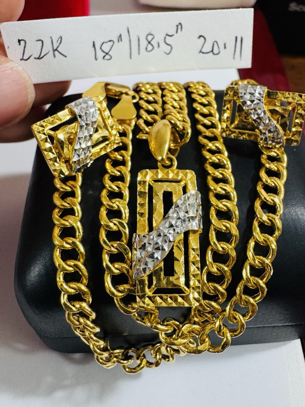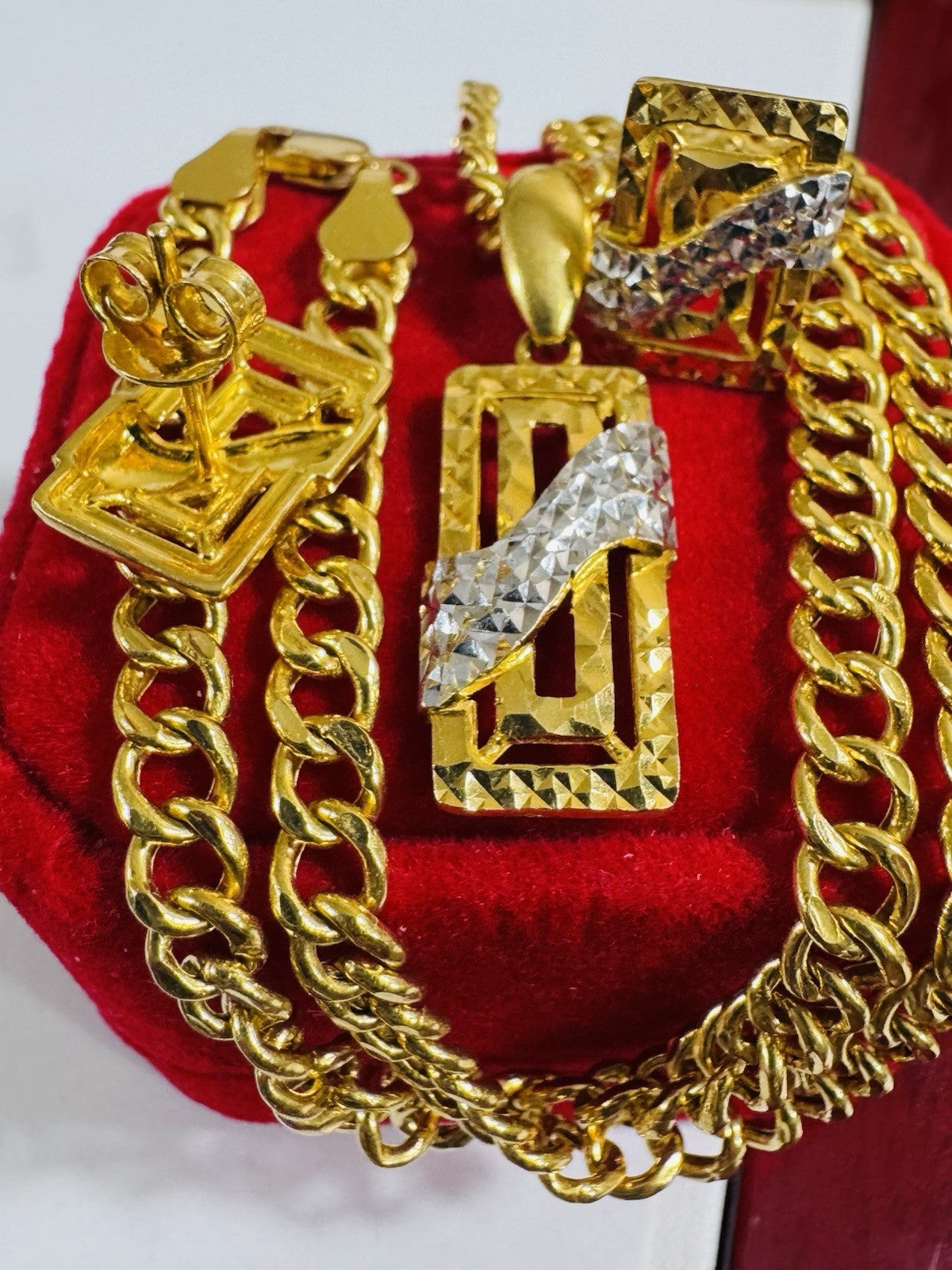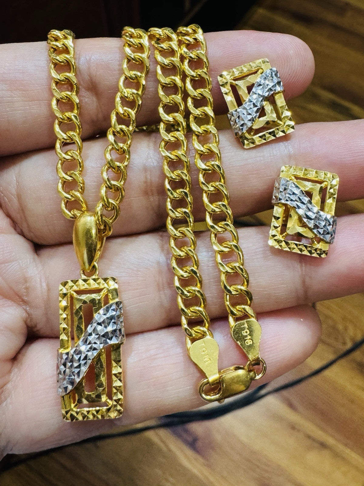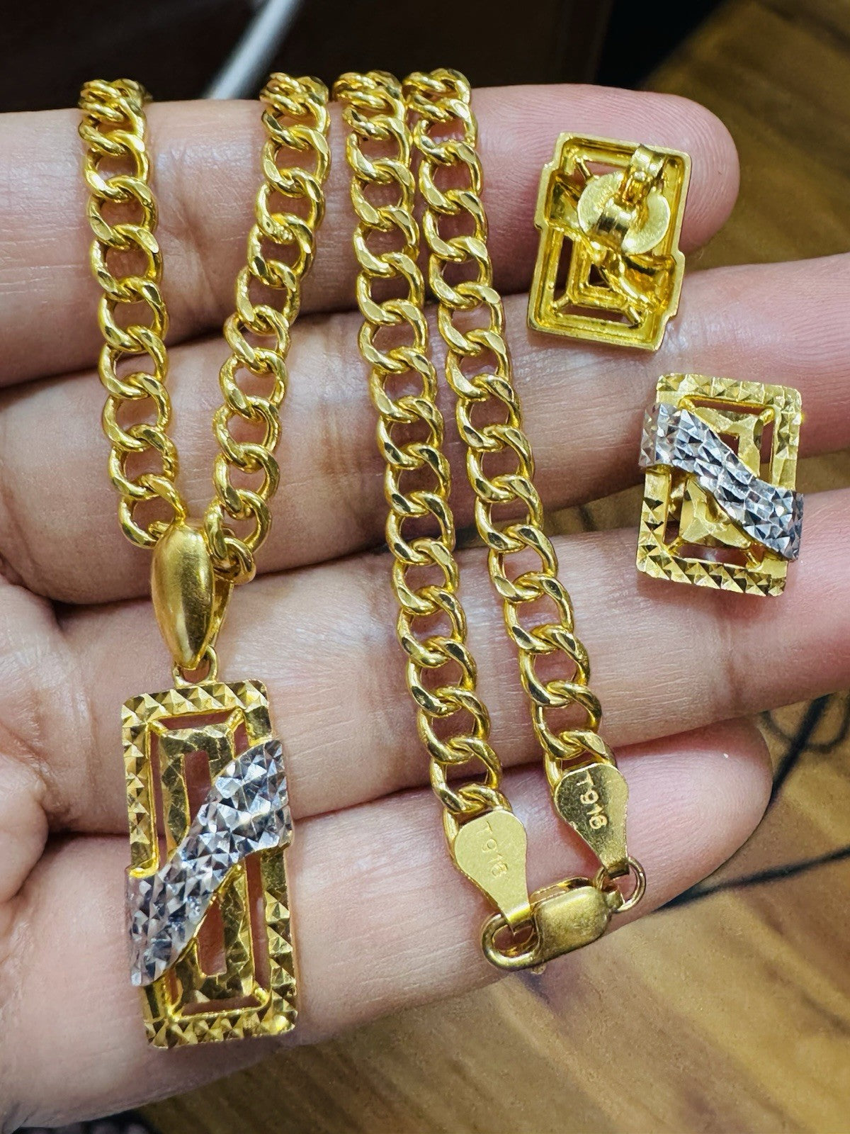 * Hello You are buying Real Brand New 22K 916 Fine Yellow Saudi Gold Set Two-tone earring Pendant with Necklace With 18.5” long 5.5mm 20.1 grams