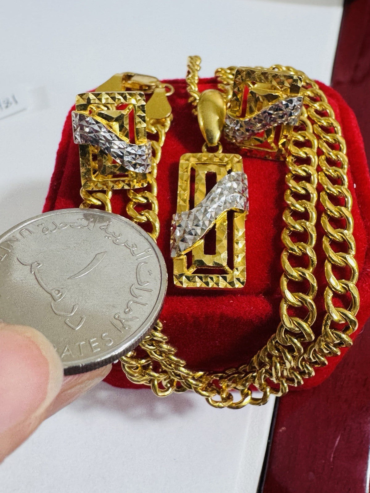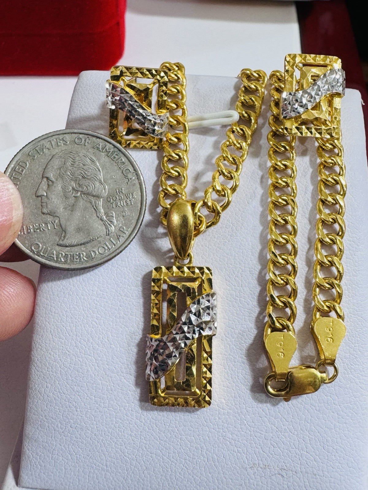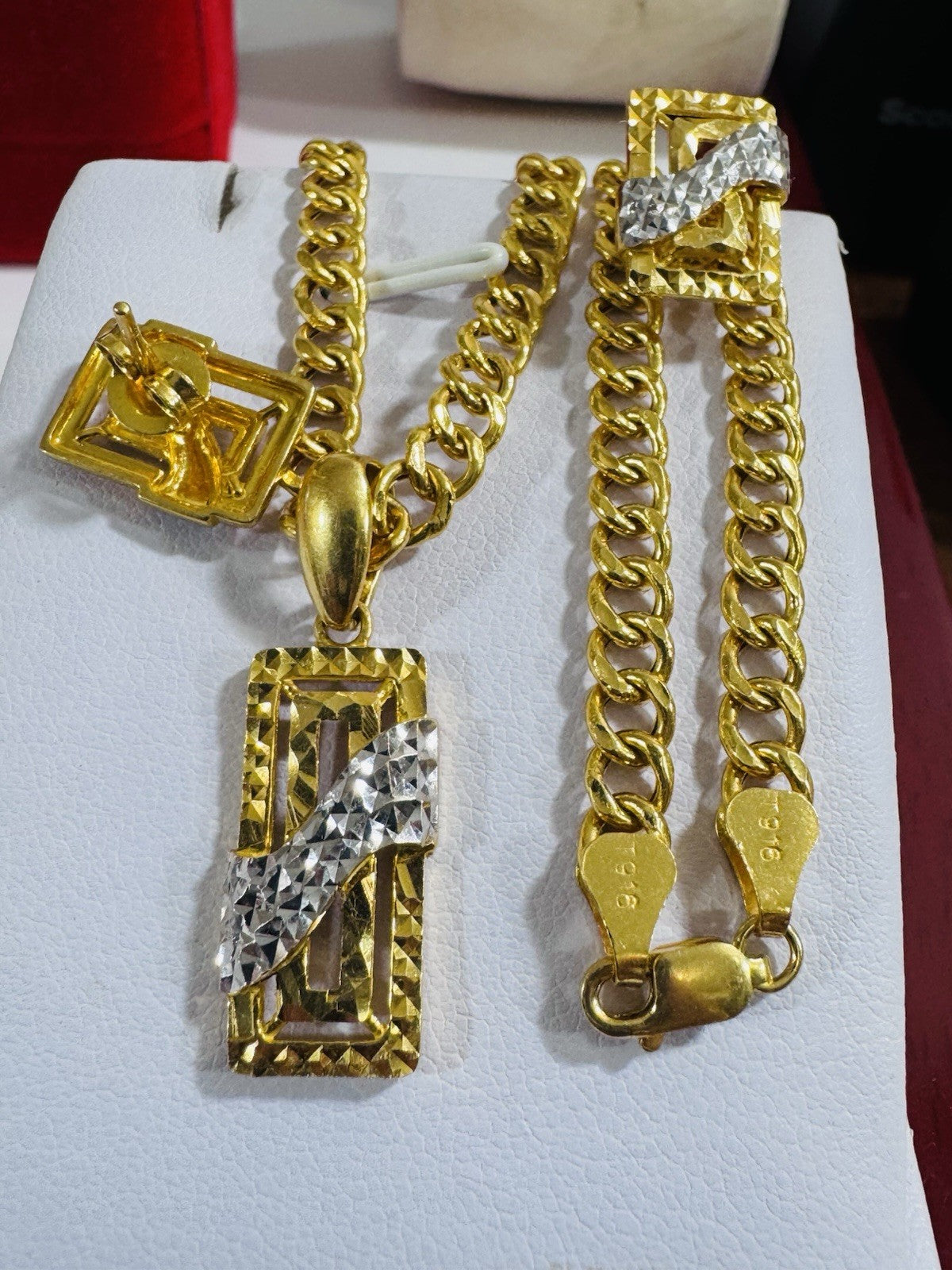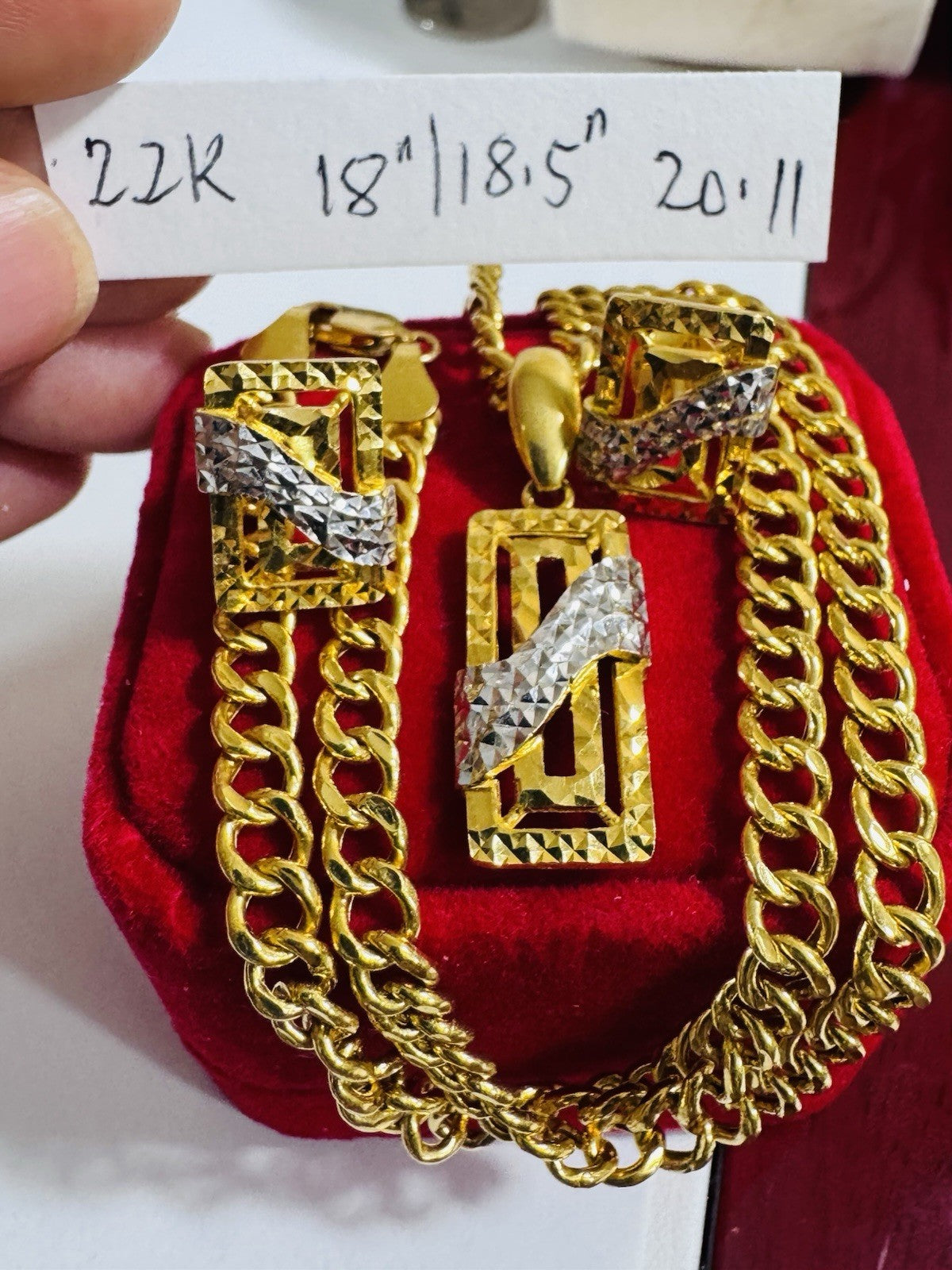 * Hello You are buying Real Brand New 22K 916 Fine Yellow Saudi Gold Set Two-tone earring Pendant with Necklace With 18.5” long 5.5mm 20.1 grams