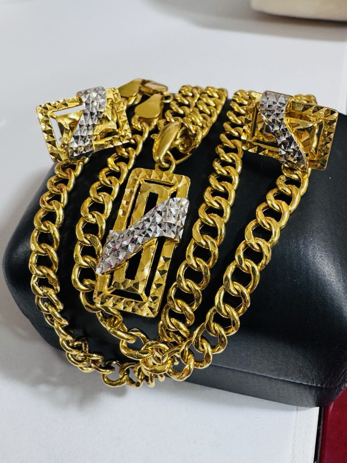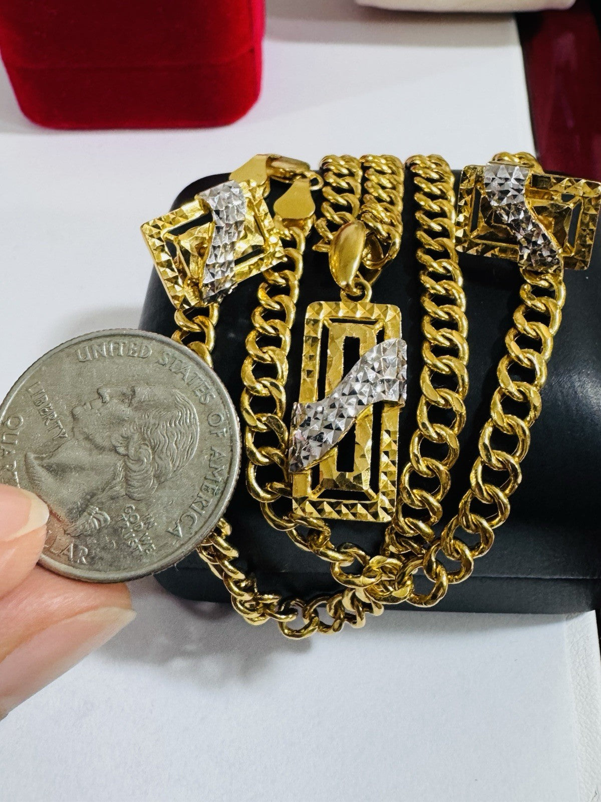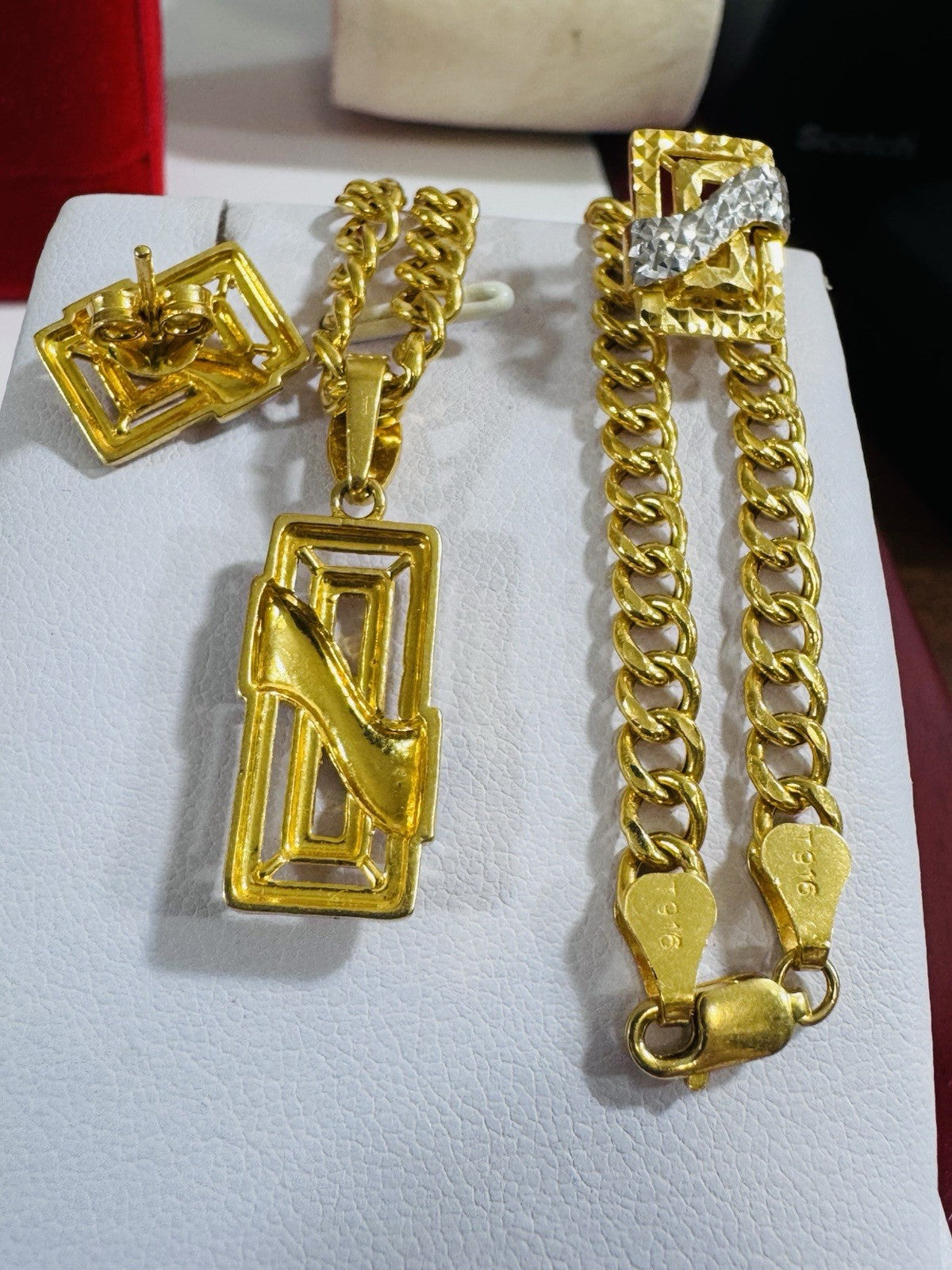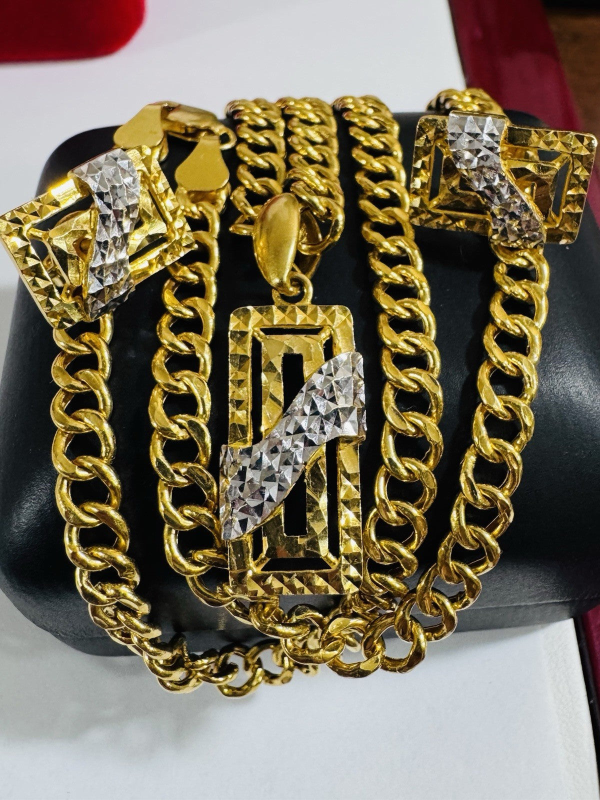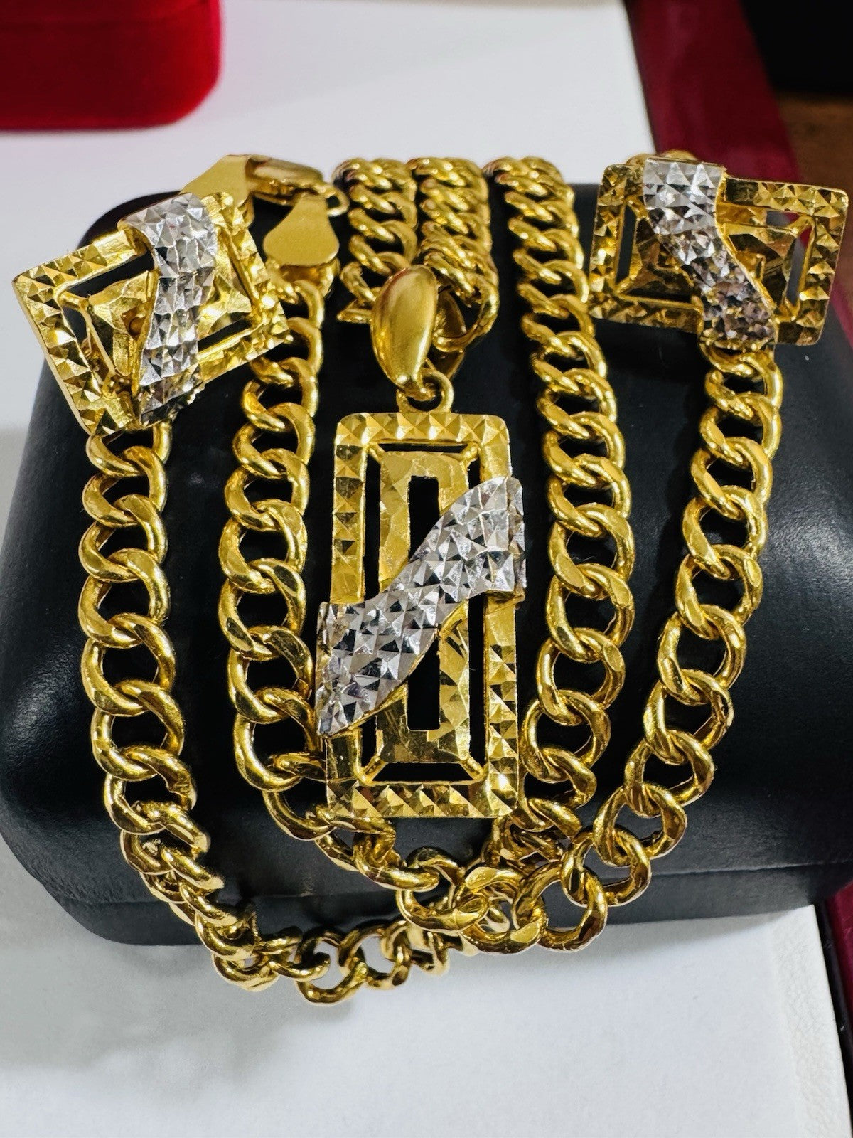 * Hello You are buying Real Brand New 22K 916 Fine Yellow Saudi Gold Set Two-tone earring Pendant with Necklace With 18.5” long 5.5mm 20.1 grams