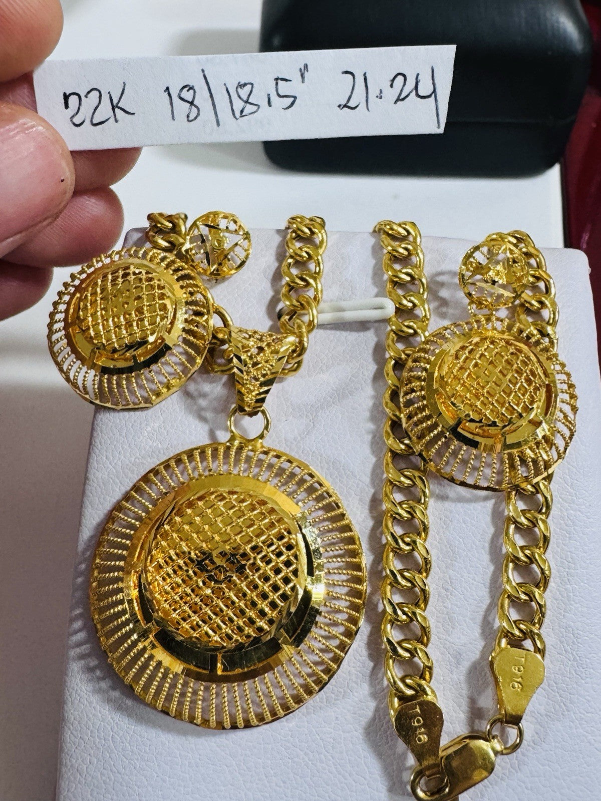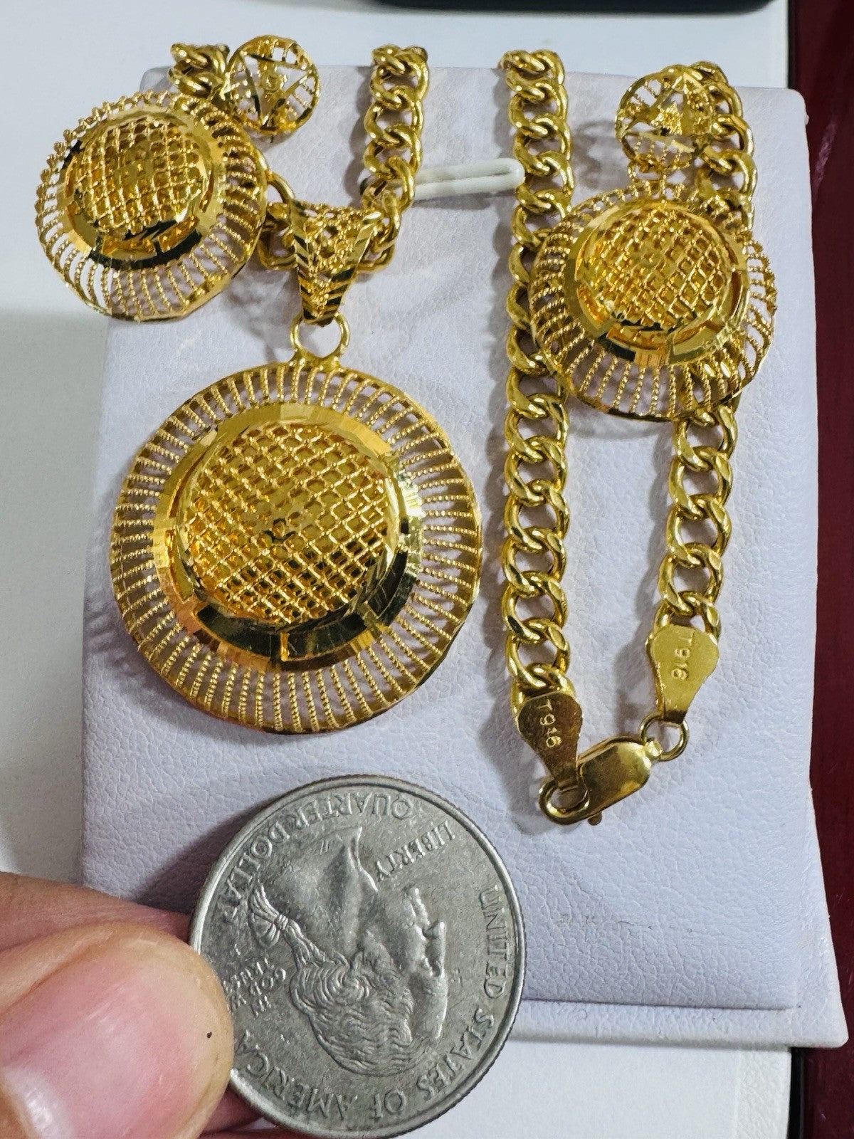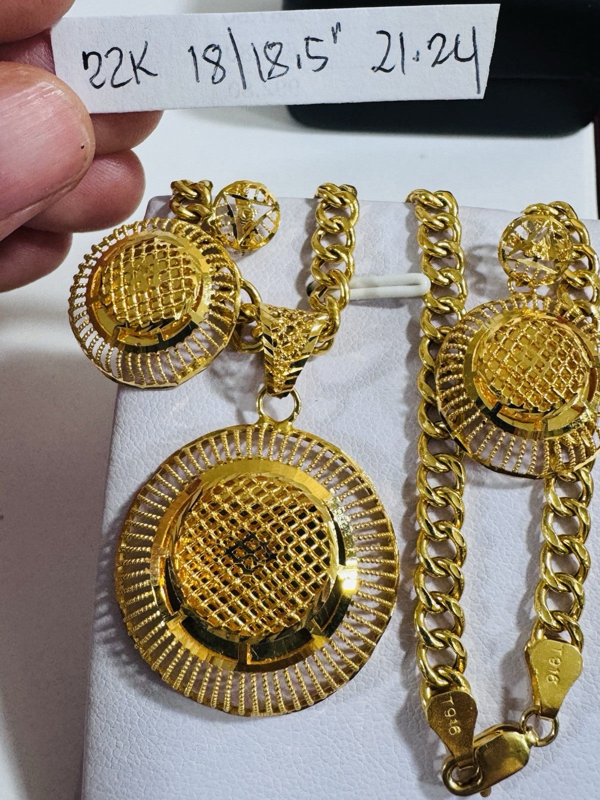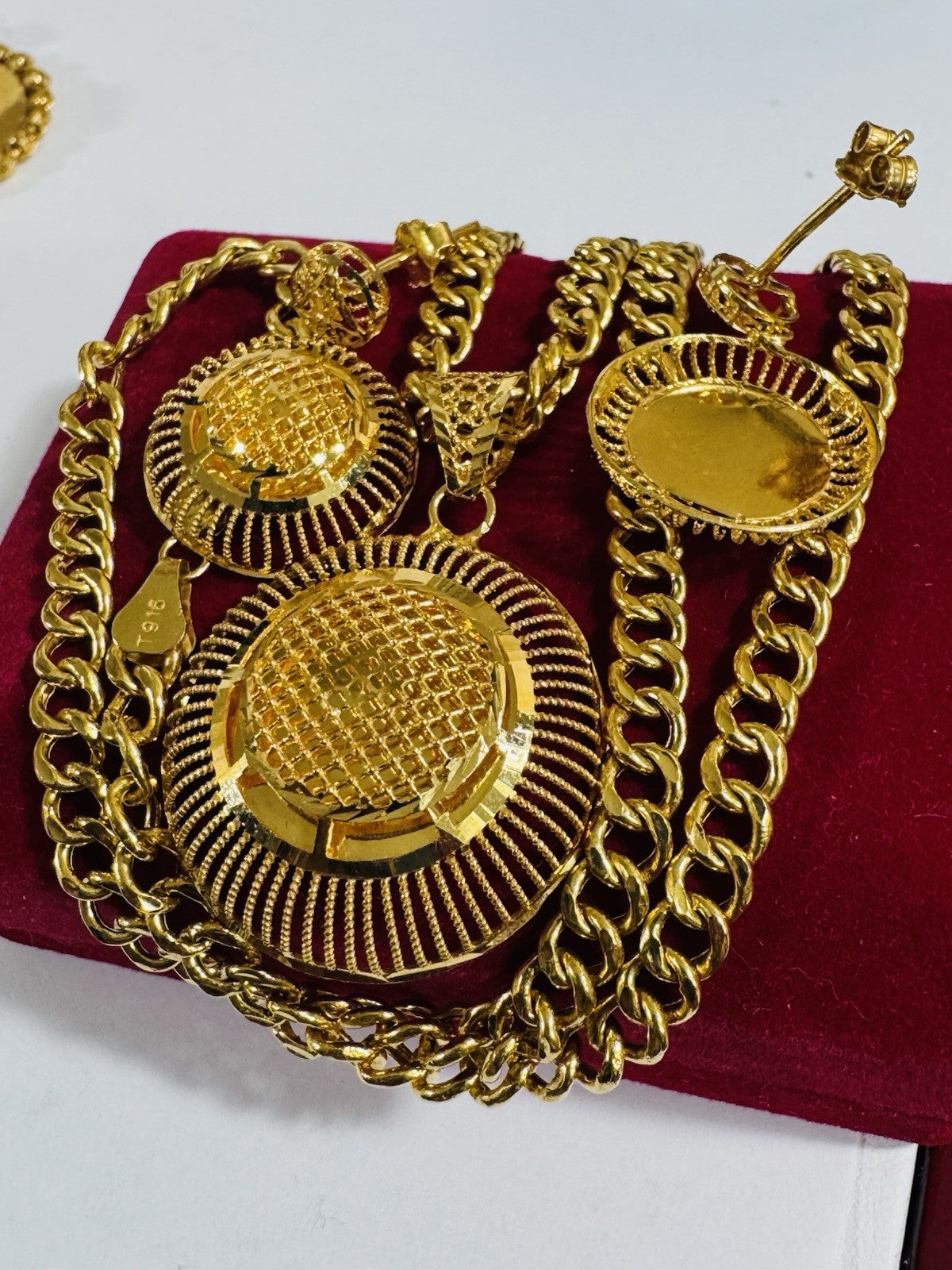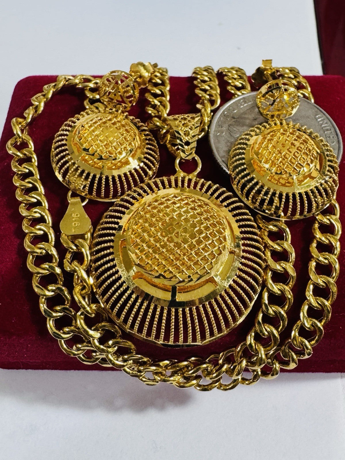 *Hello You are buying Real Beautiful Solid 22K 916 Fine Real Gold 18.5” Long Women’s size Set Earring & Necklace 21.24g 5.5mm wide chain