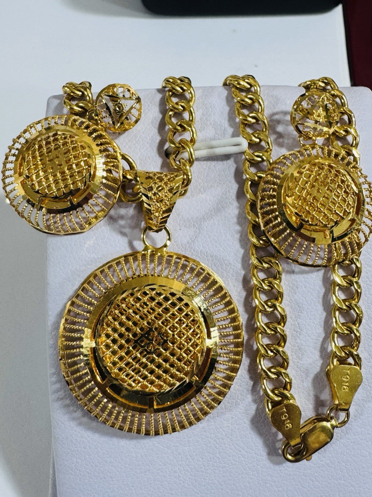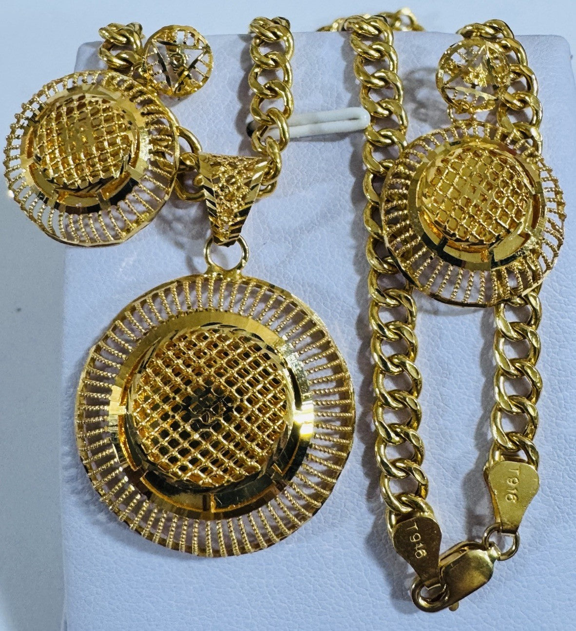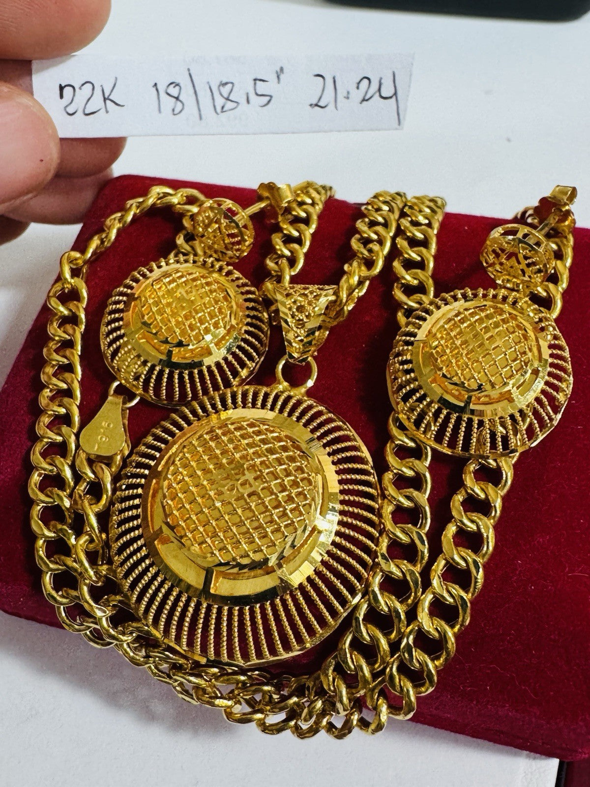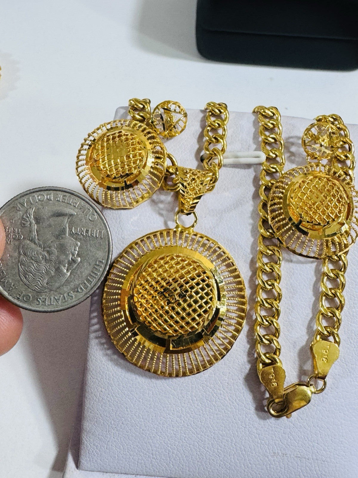 *Hello You are buying Real Beautiful Solid 22K 916 Fine Real Gold 18.5” Long Women’s size Set Earring & Necklace 21.24g 5.5mm wide chain
